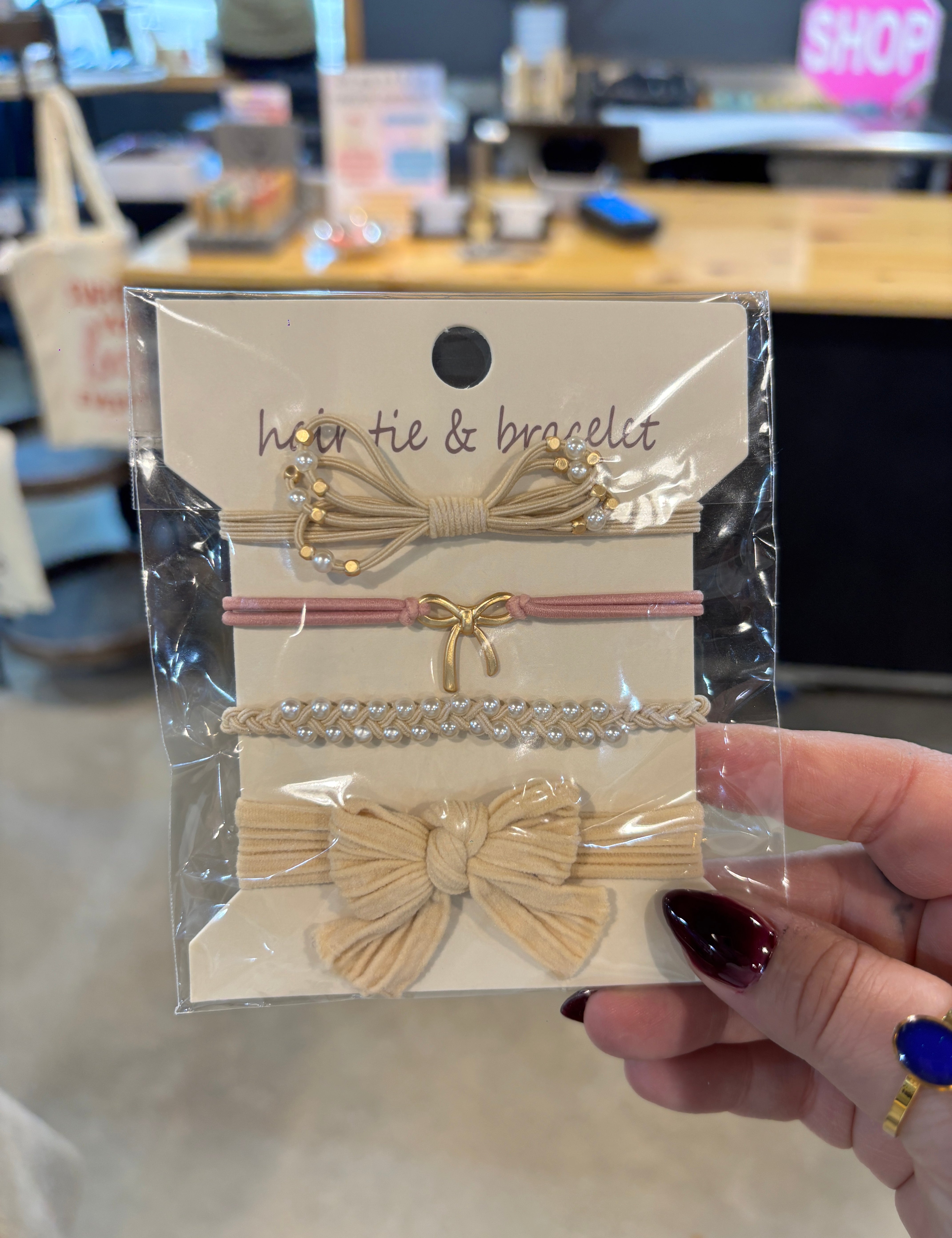 Dual Function Knot Bracelet Hair Ties in Ivory Bows