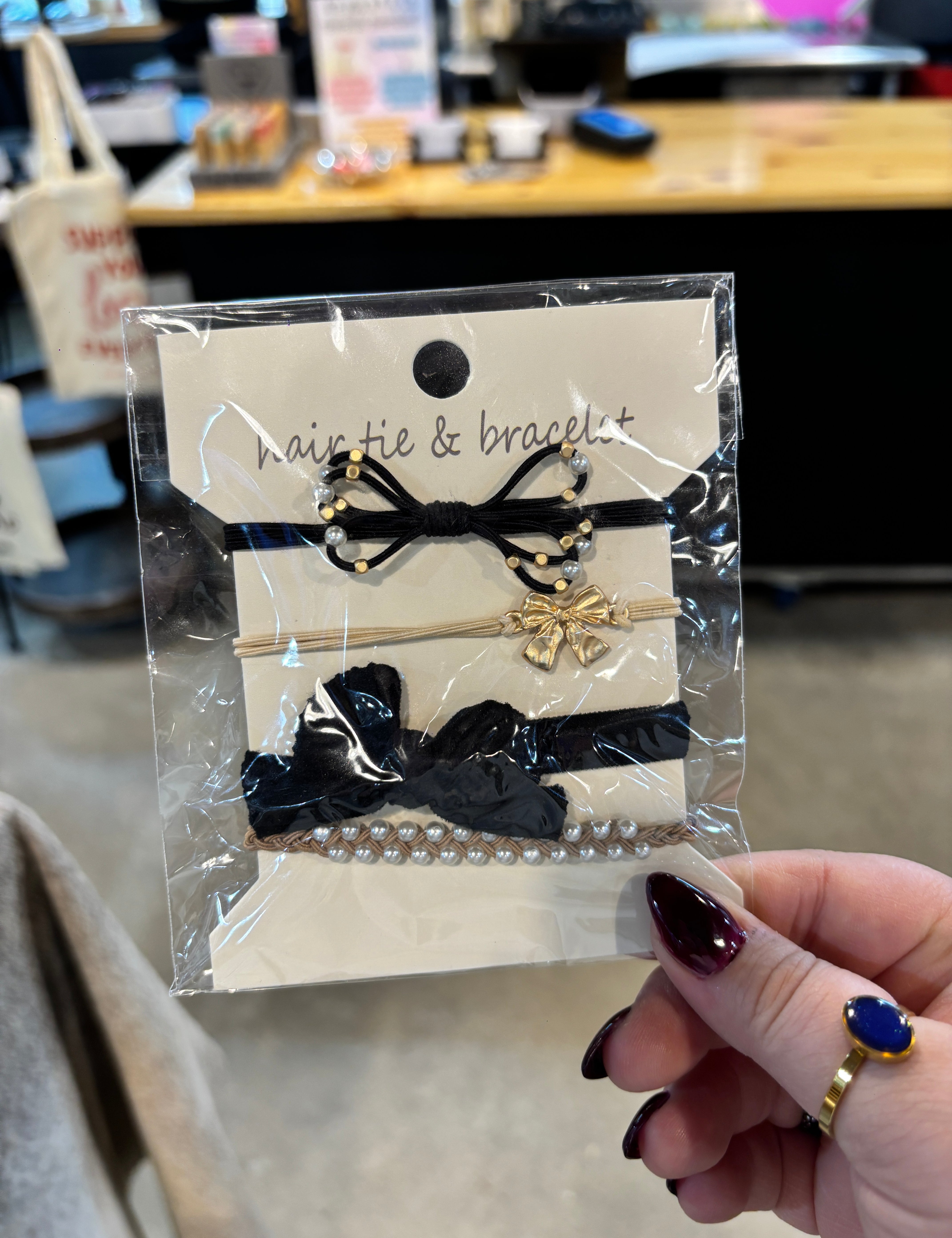 Dual Function Knot Bracelet Hair Ties in Black Bows