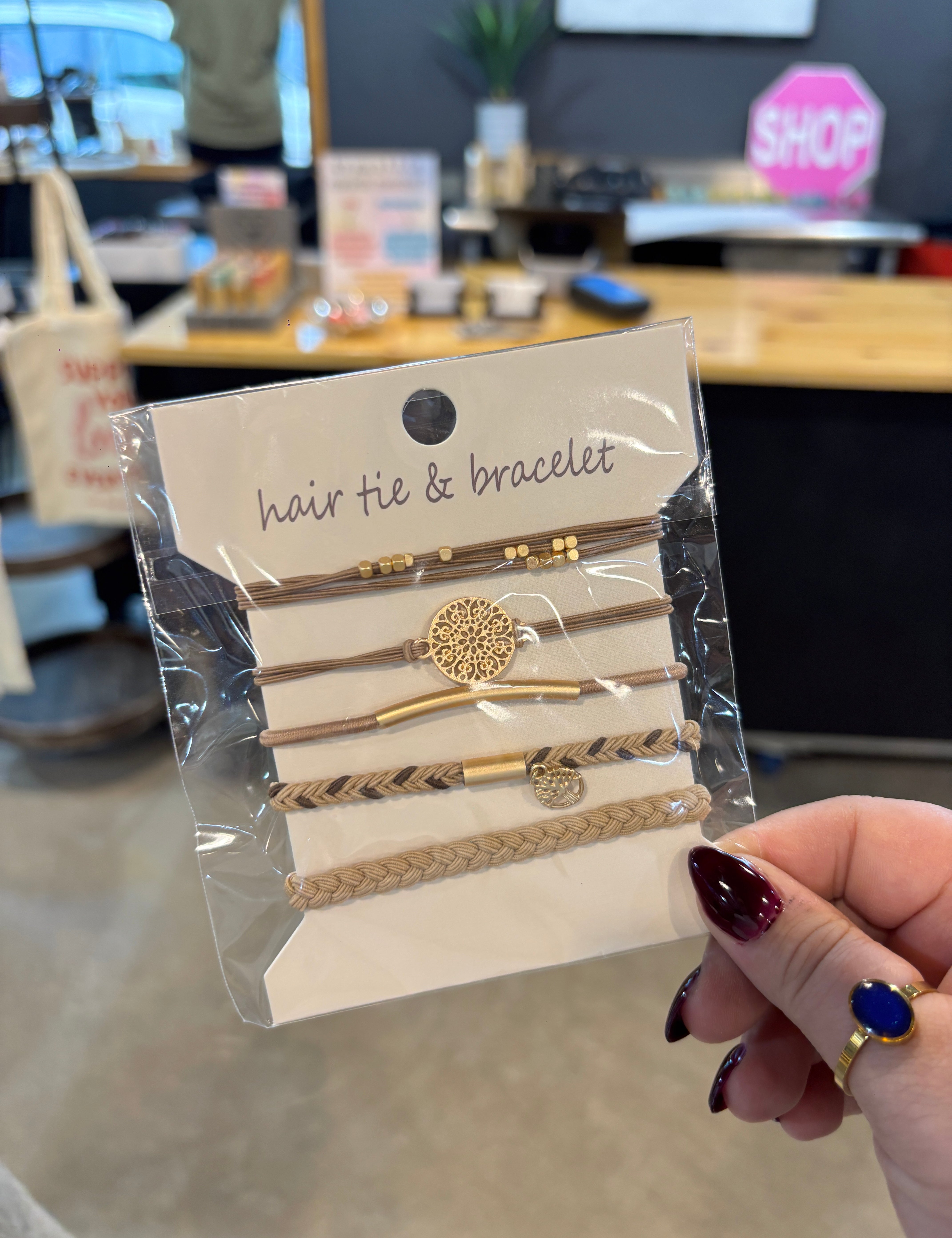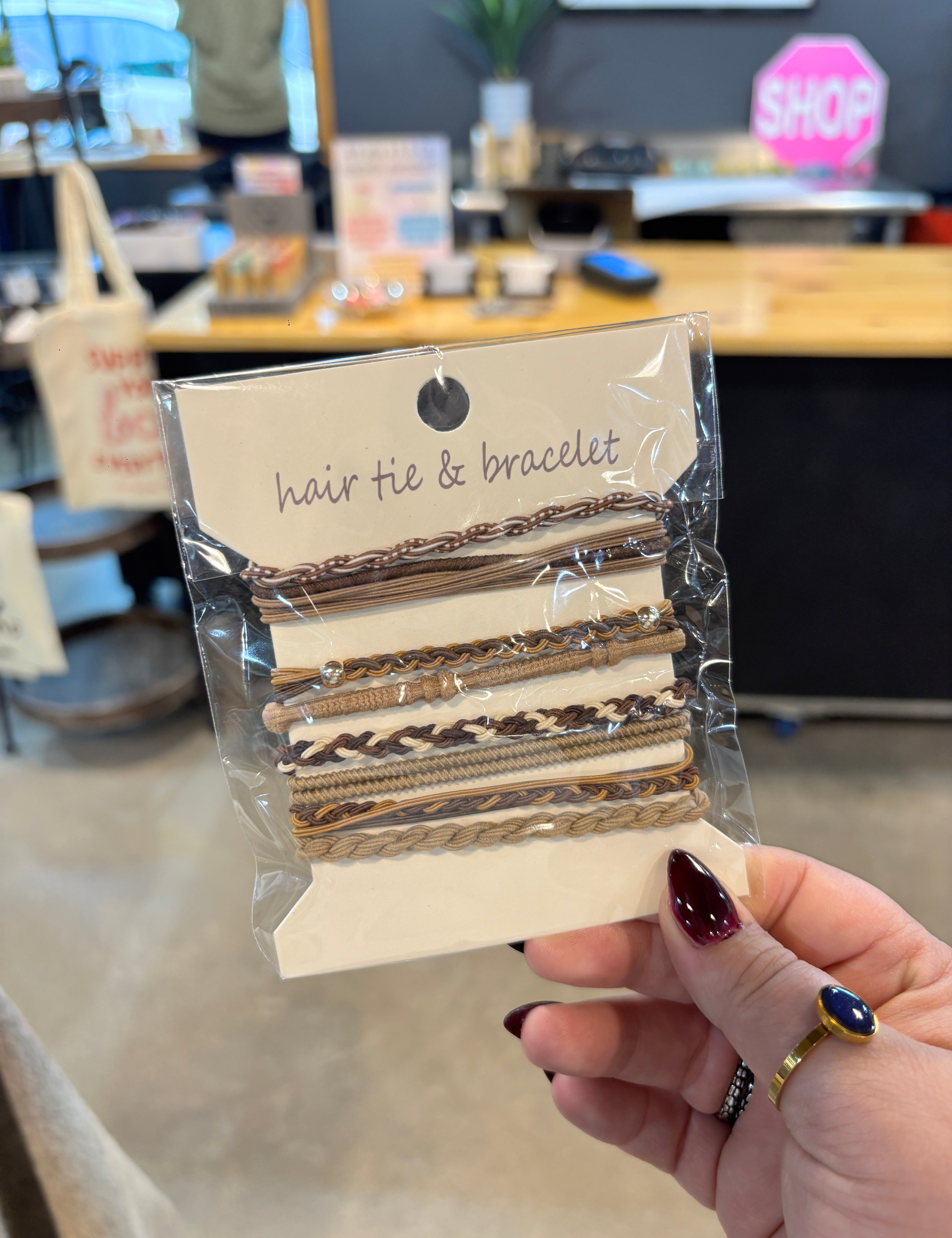 Dual Function Knot Bracelet Hair Ties in Mocha