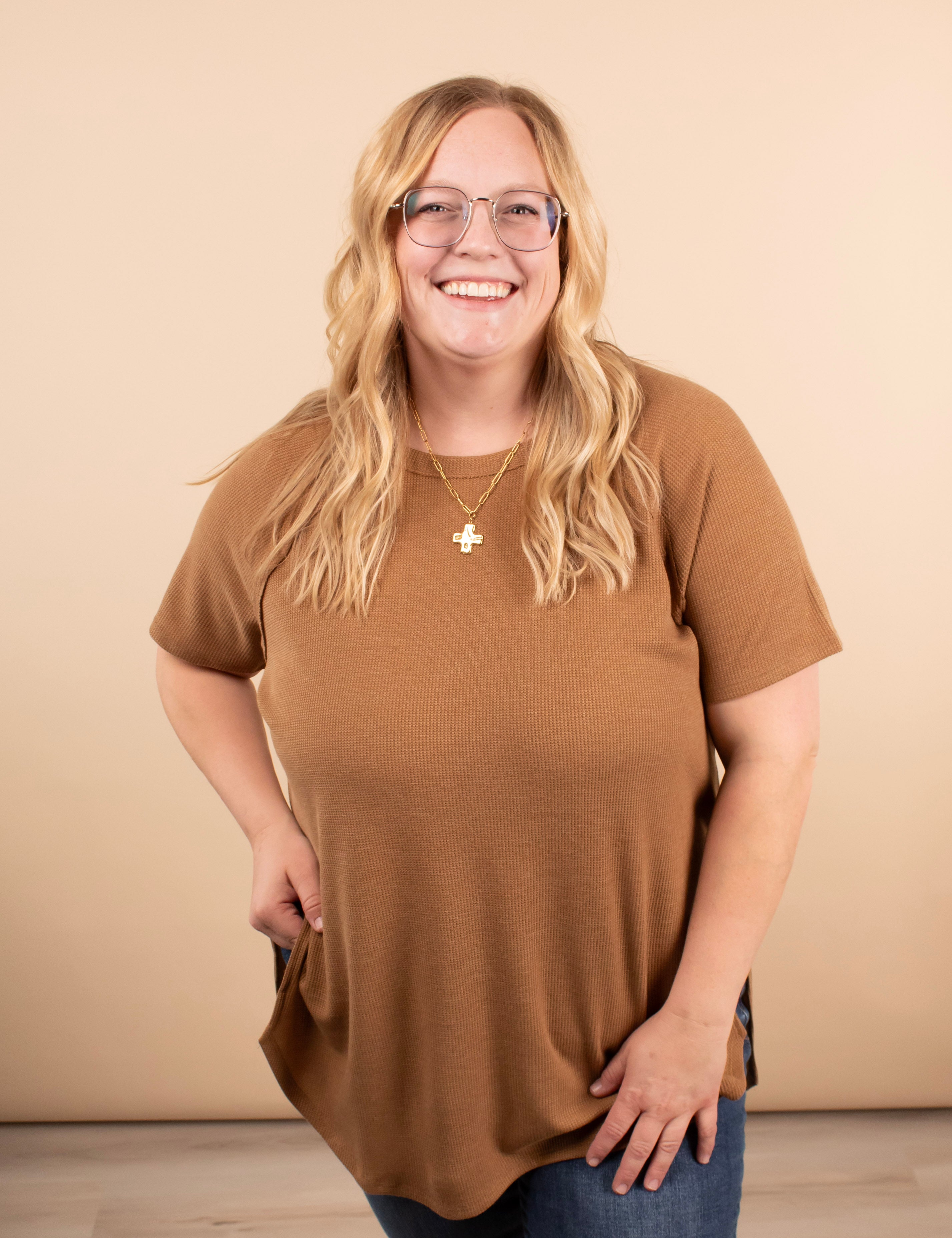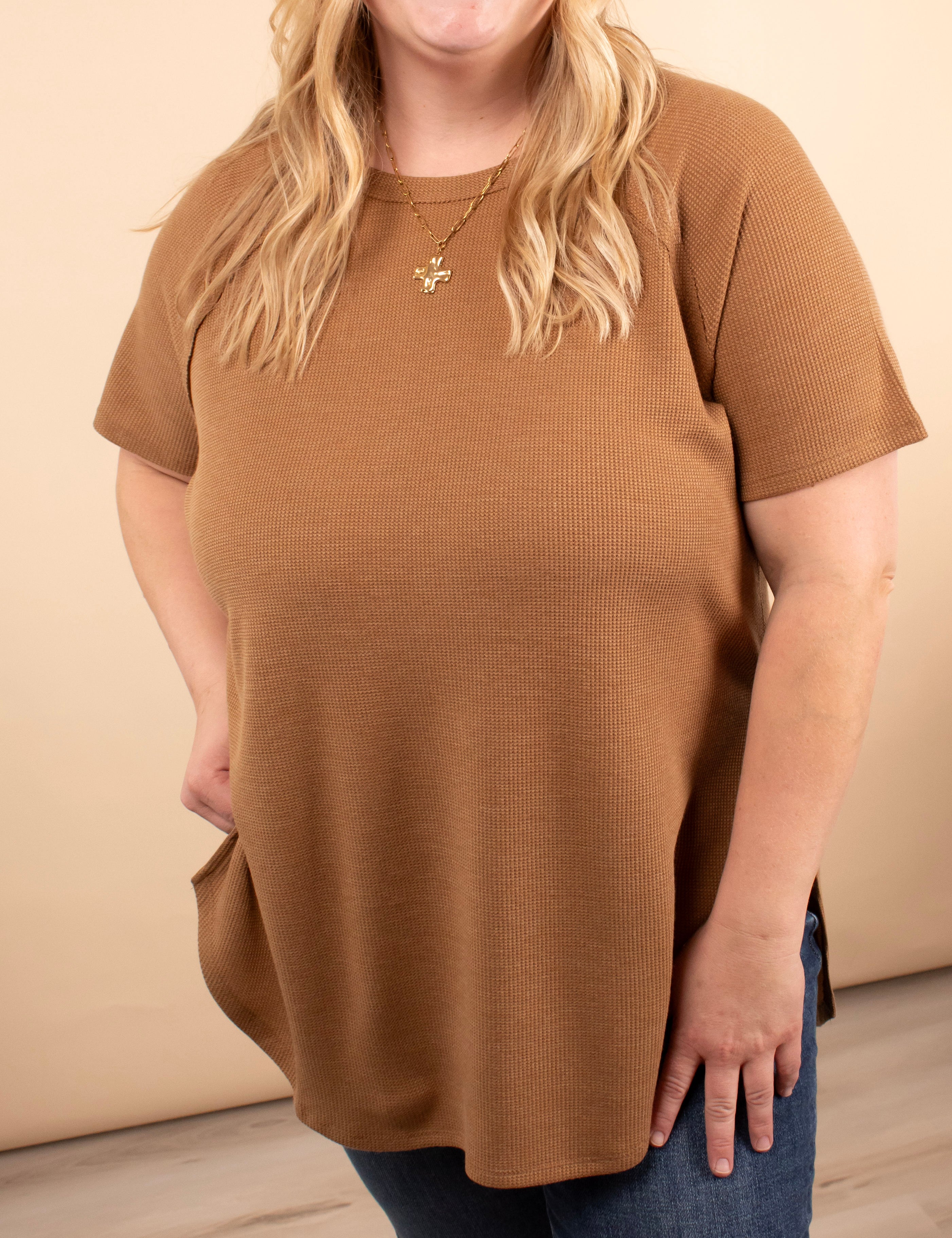 Ada Waffle Knit Top in Caramel