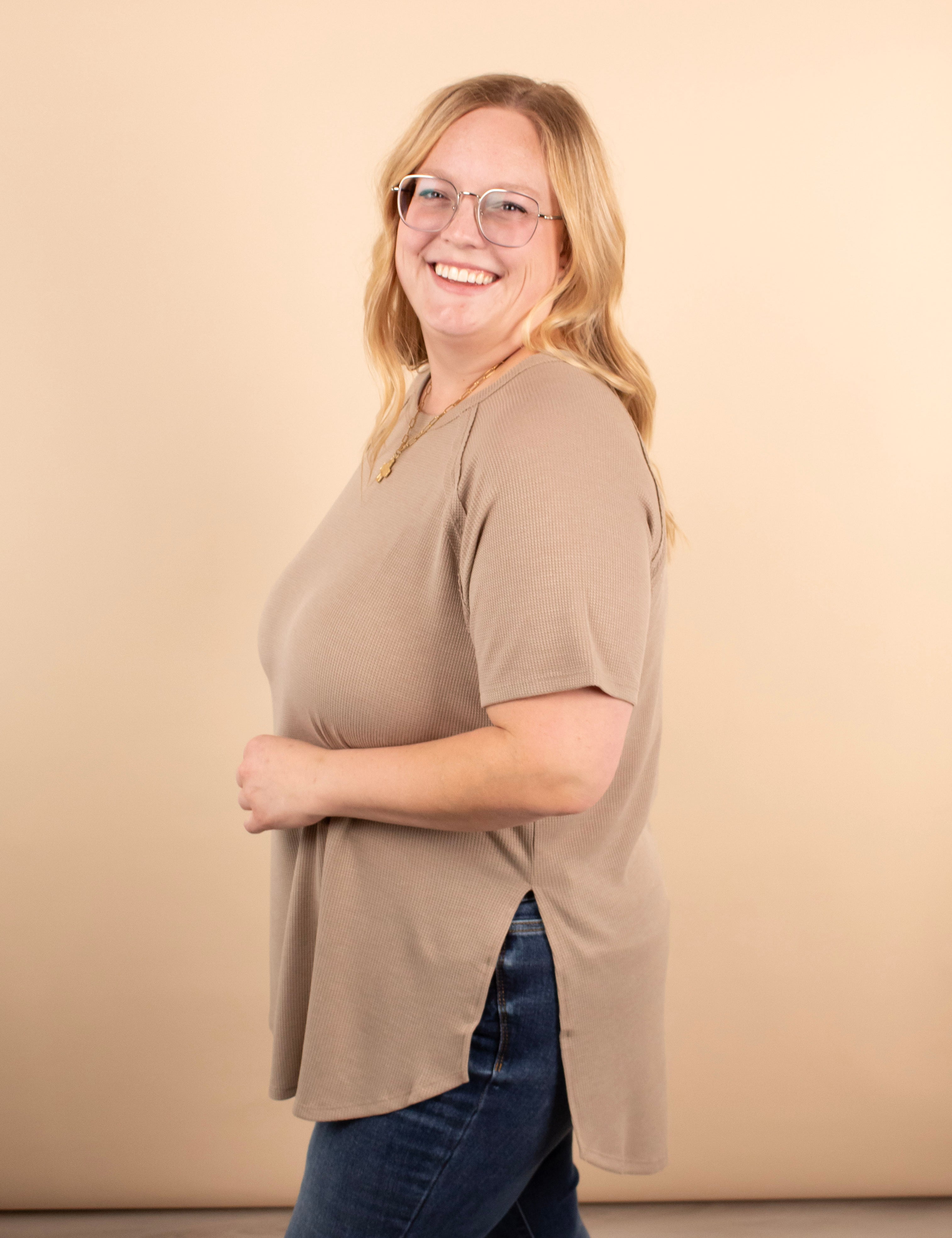 Ada Waffle Knit Top in Latte