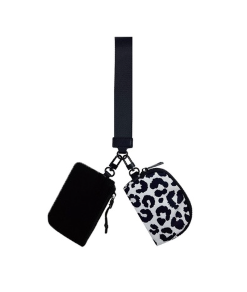 Dual Pouch Wristlet Keychain Wallet in Black Leopard