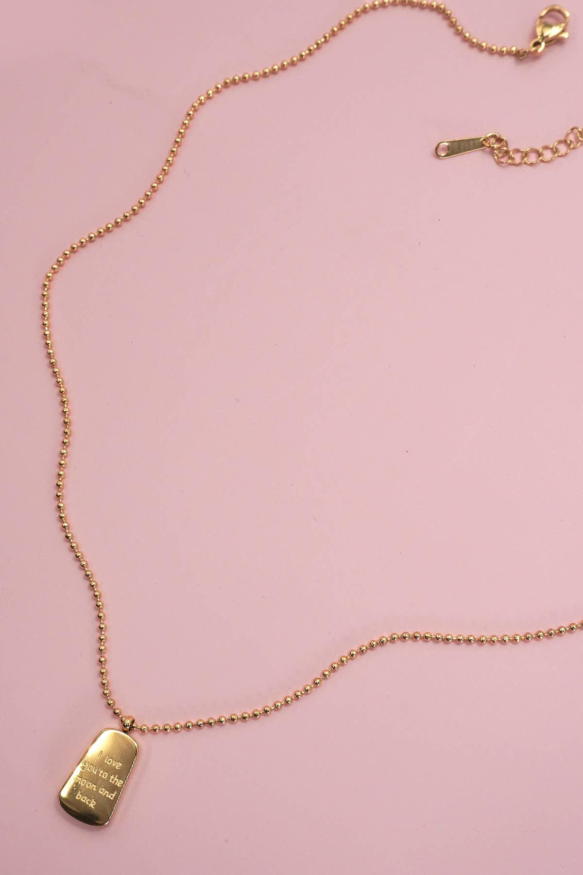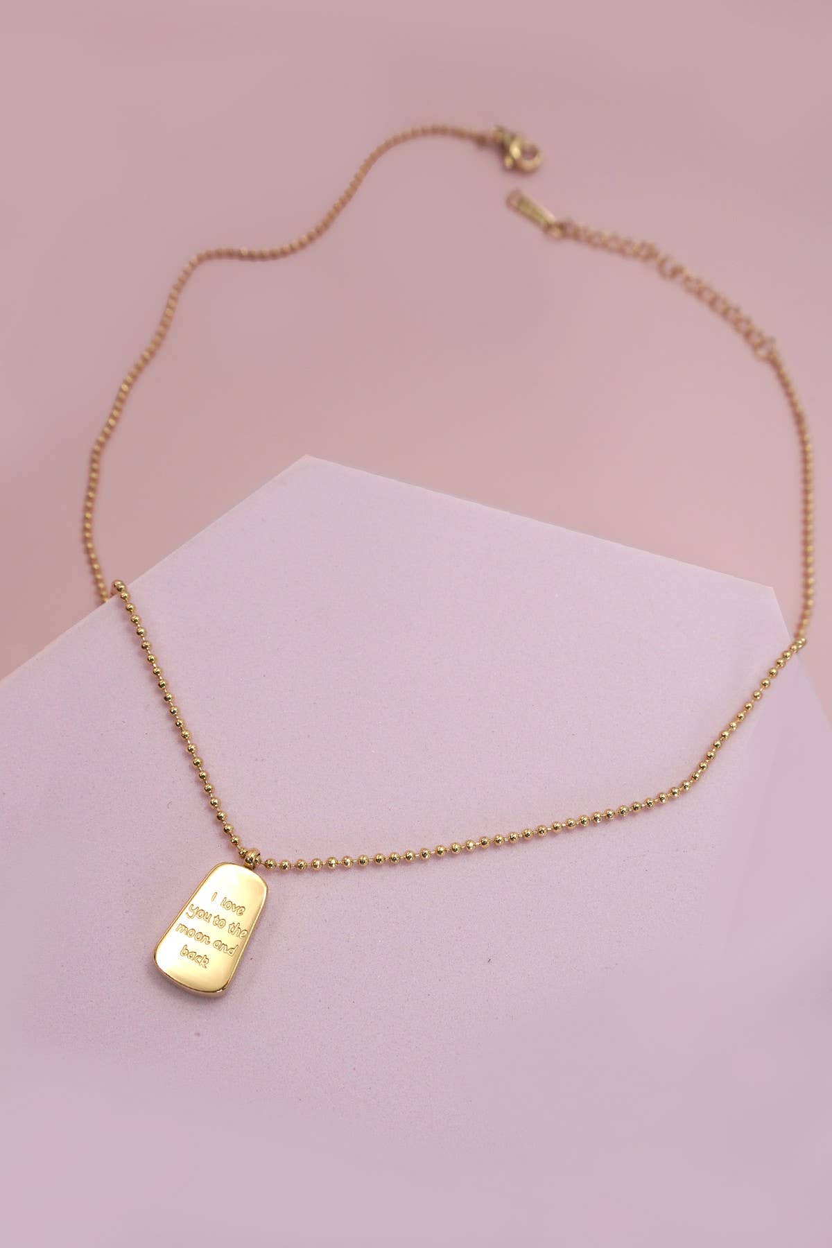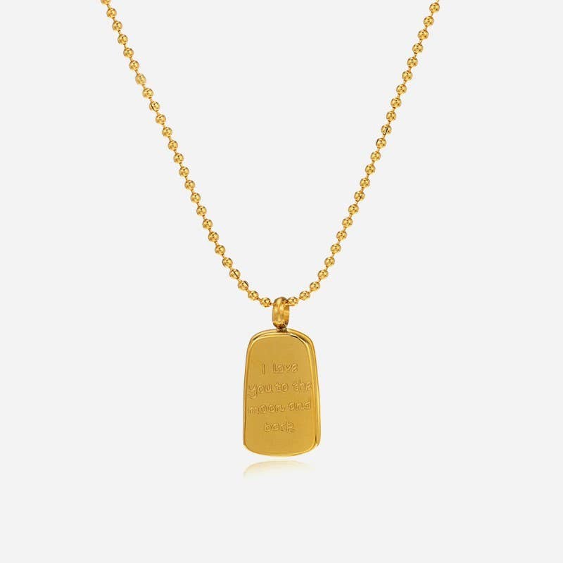 A sweet reminder of love that knows no bounds. The To the Moon + Back Necklace features a beautifully engraved charm with the heartfelt phrase “I Love You to the Moon and Back,” finished in radiant 18K gold. Designed to be worn every day, this timeless piece is both meaningful and durable — perfect for gifting or keeping close to your heart.