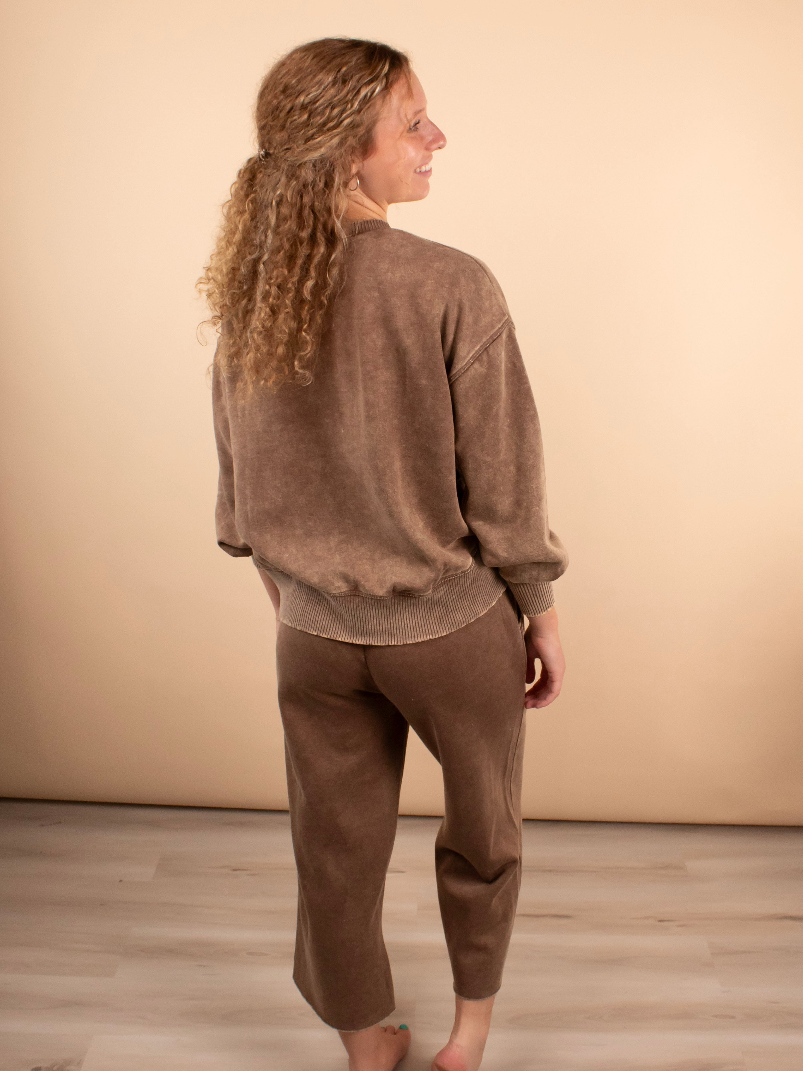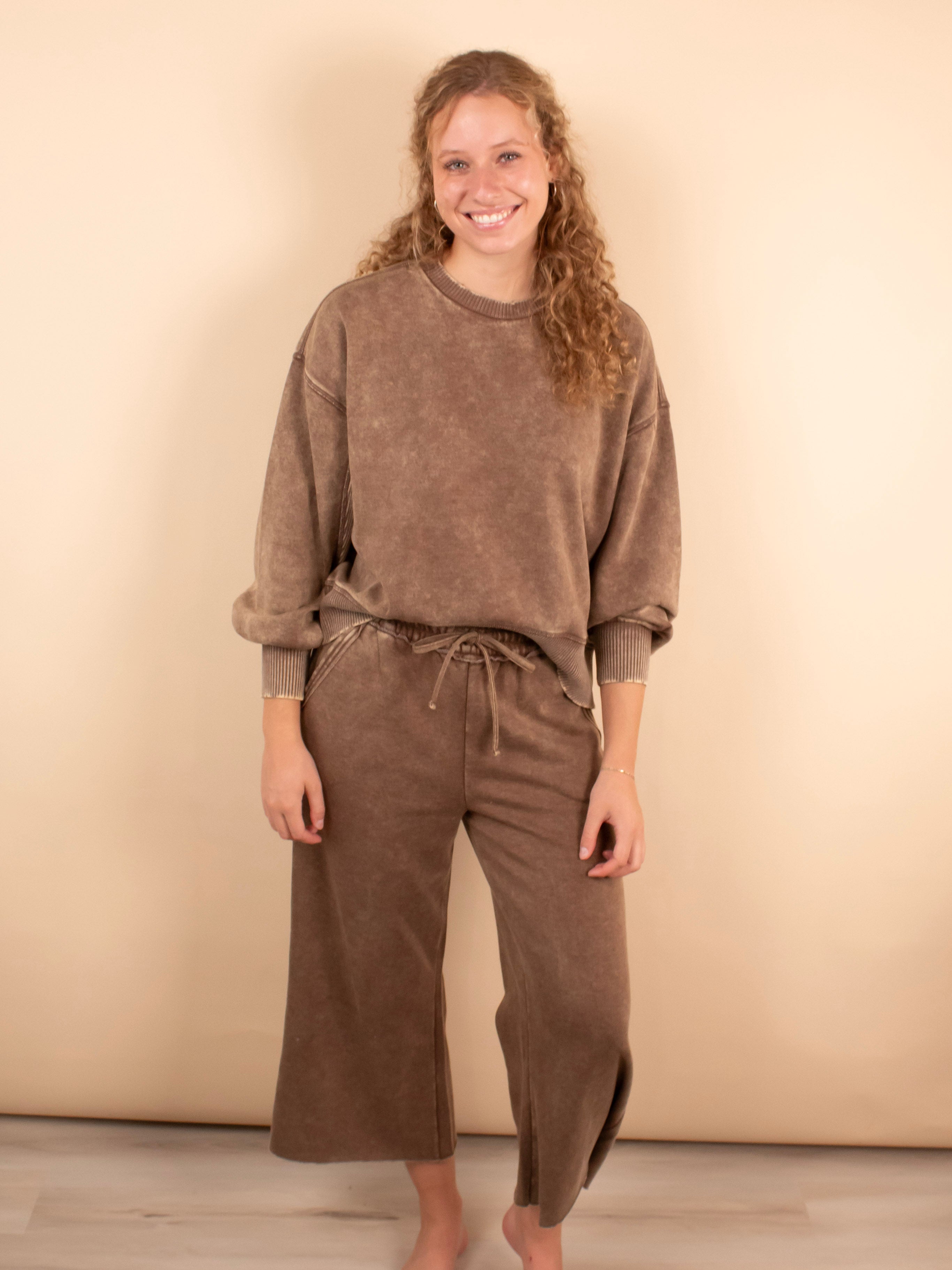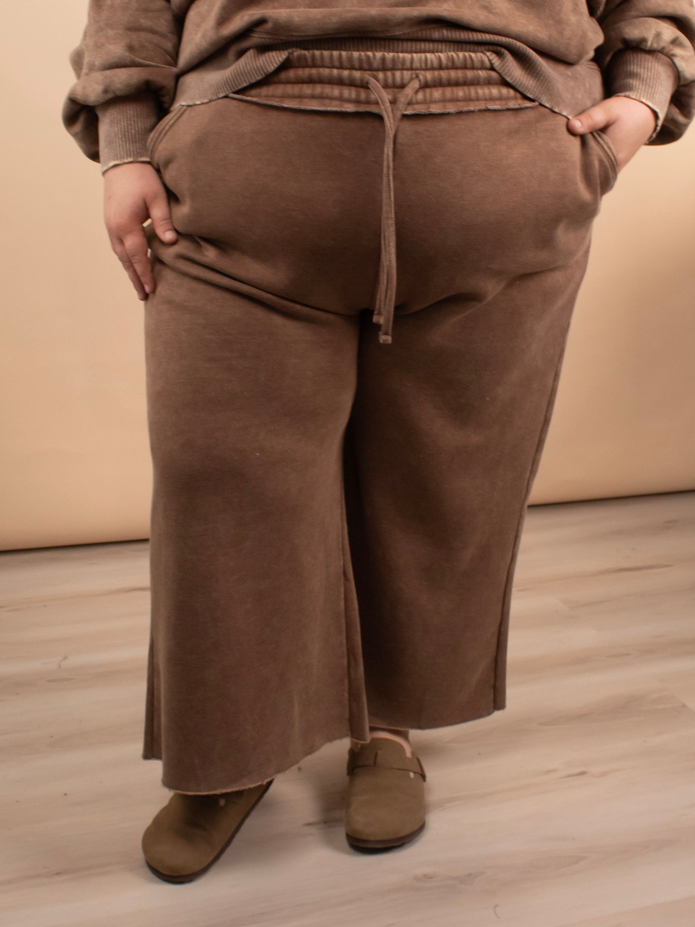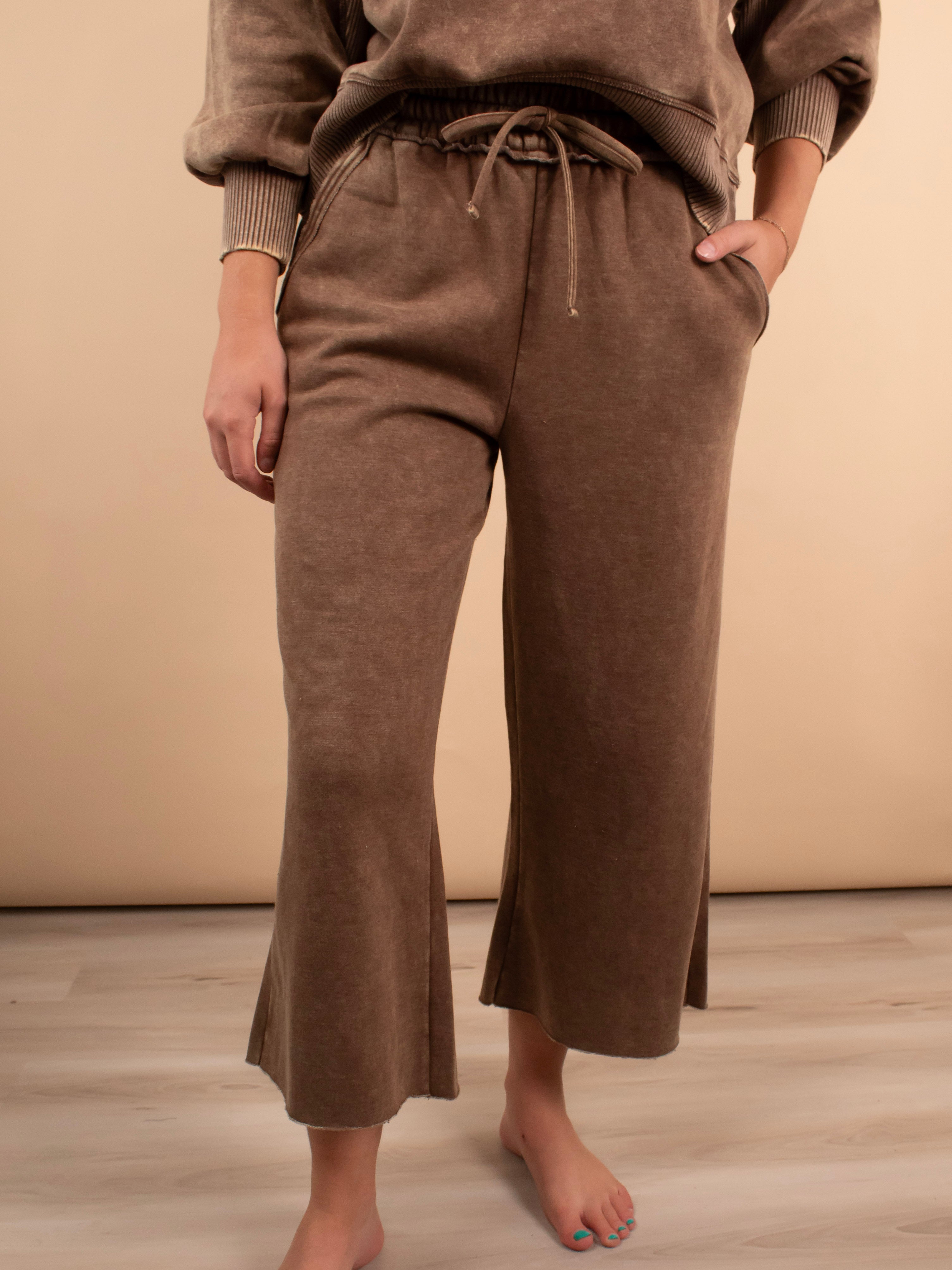 Cozy meets casual chic. The All Day Comfort Cropped Sweatpants in Mocha are the perfect match to the oversized pullover, yet just as good on their own. With a cropped length, soft cotton-blend fabric, and ribbed waistband, these sweatpants are made for lounging, errands, or laid-back fall days.