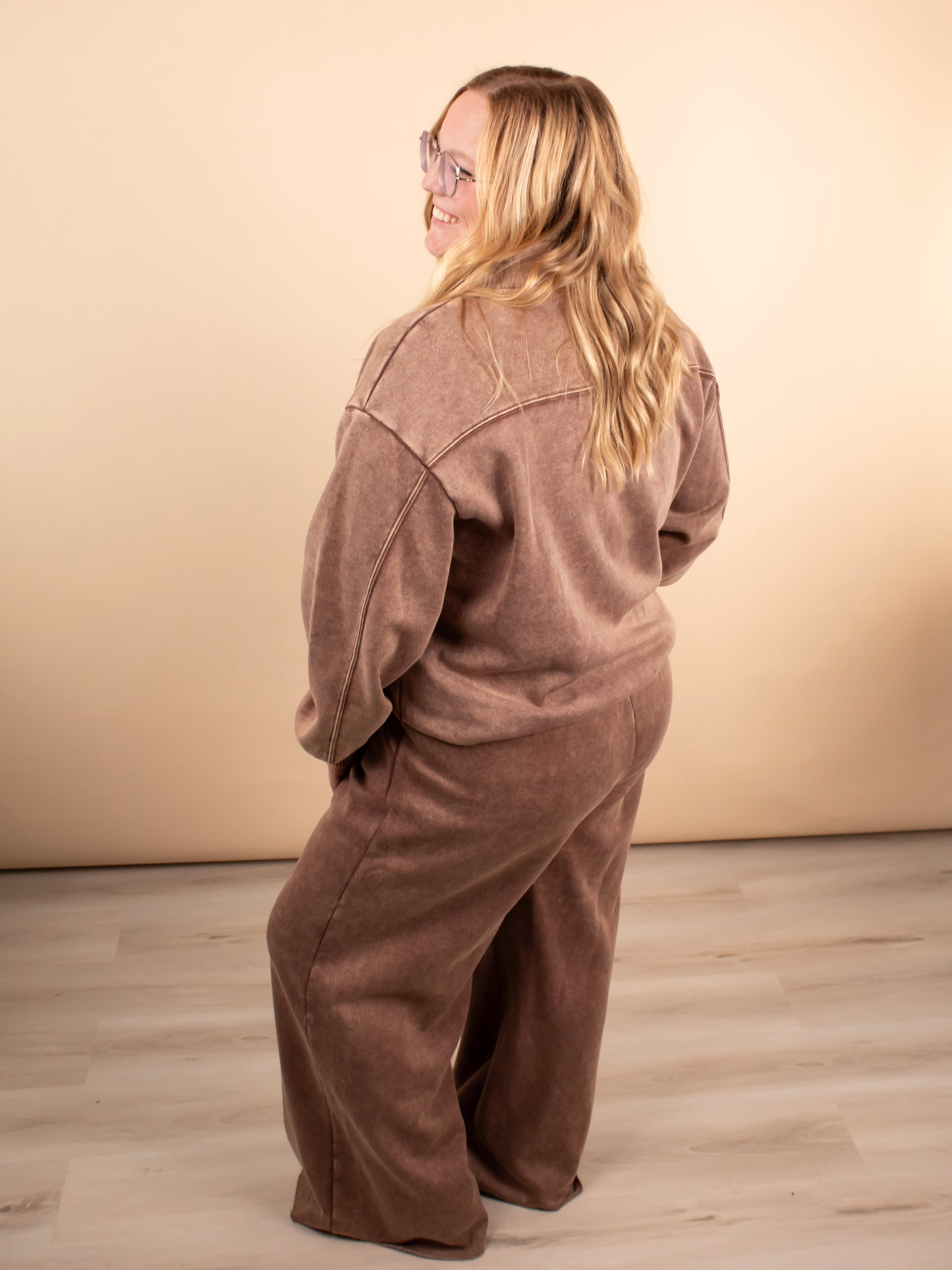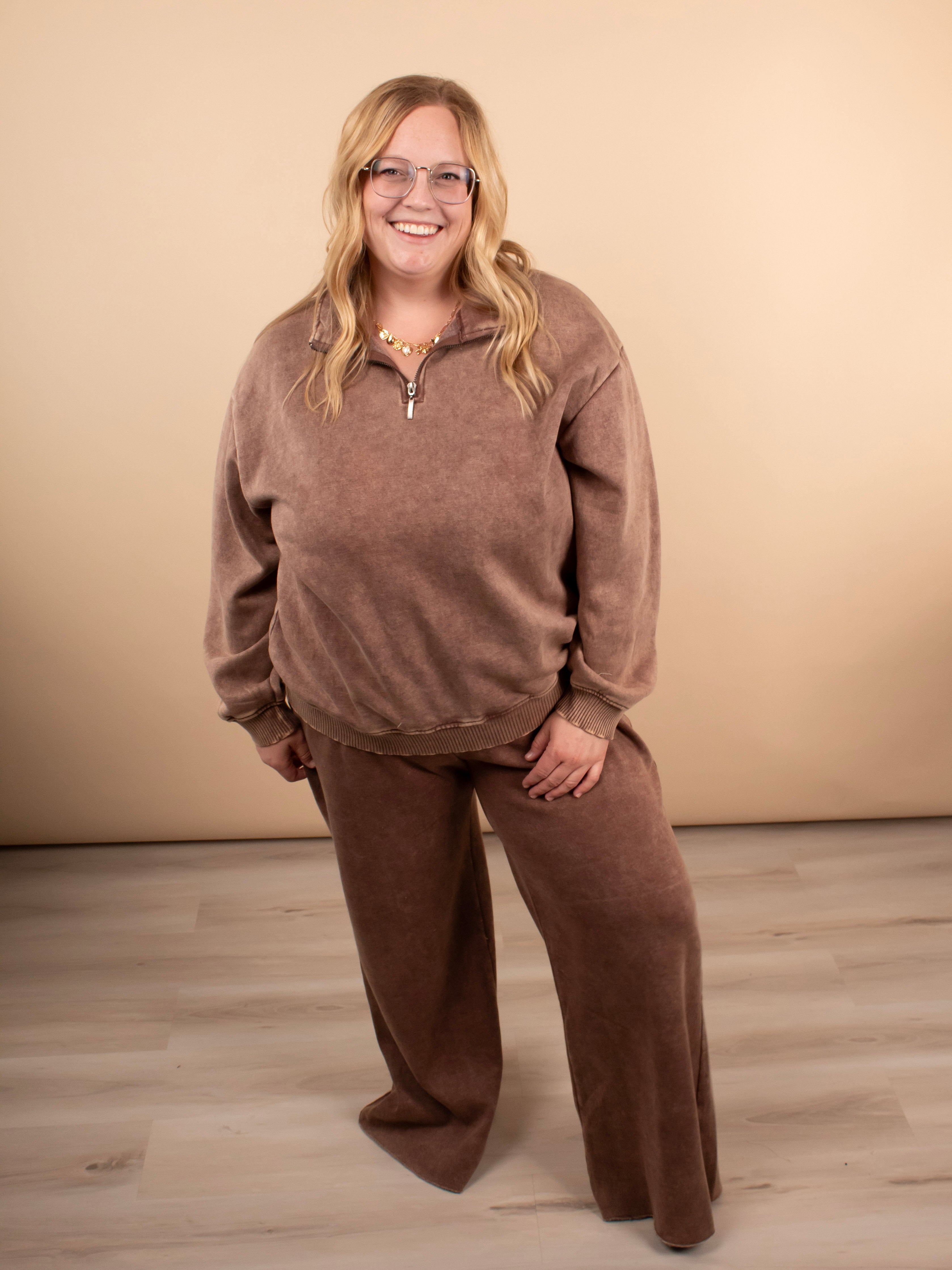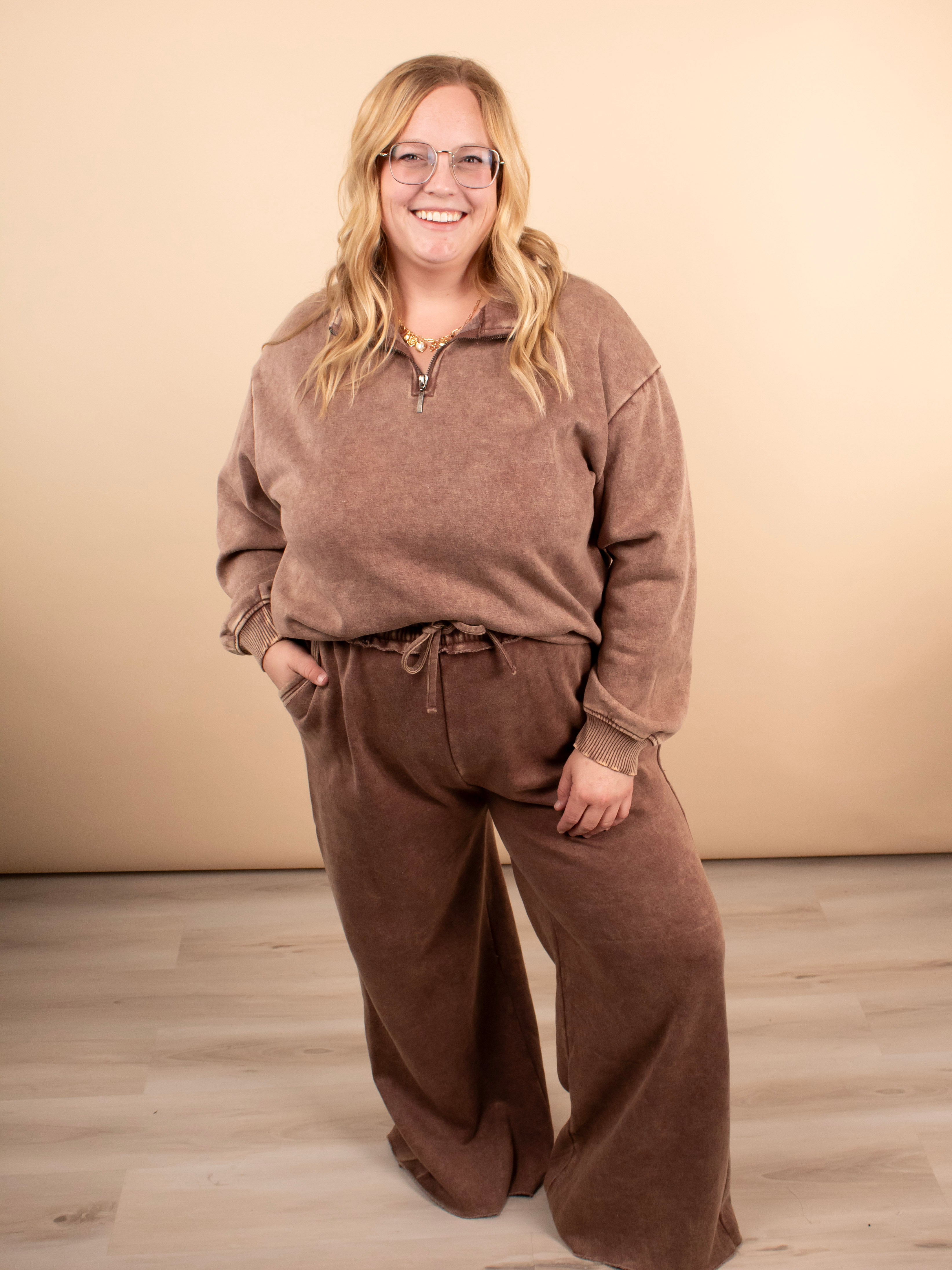 Cozy meets chic in the All Day Comfort Full-Length Sweatpants in Coffee. With their soft cotton-blend fabric, full length, and ribbed waistband, these pants bring relaxed comfort with a rich fall-ready color. Perfect paired with the matching half zip or styled solo with your favorite tees. Plus, raw hem detailing means you can customize the length to your perfect inseam - just grab a scissors!