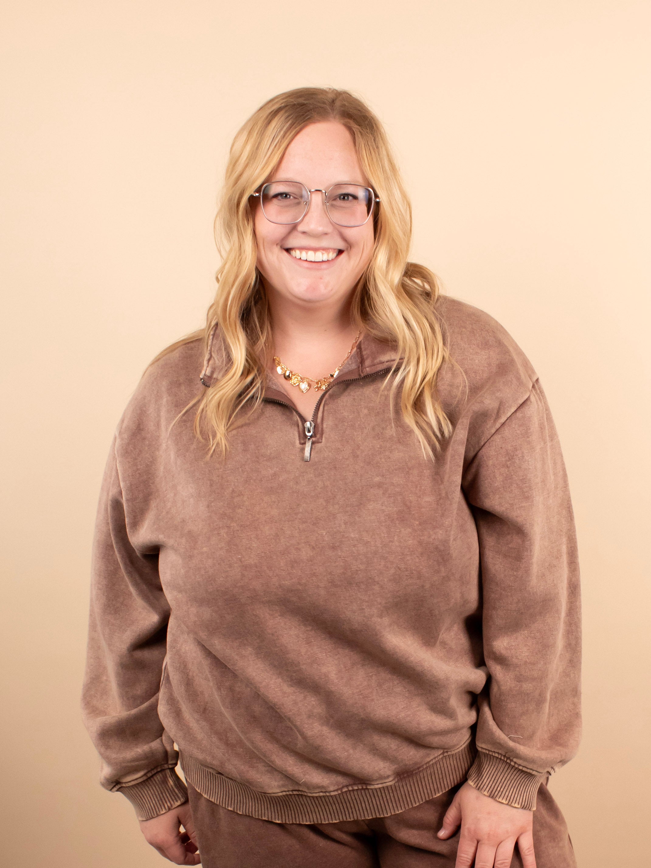Elevated comfort meets everyday wear. The All Day Comfort Half Zip Pullover in Coffee features a cozy collar, functional half zip, and soft cotton-blend fabric in a rich purple-red tone. Designed with an easy relaxed fit, it’s perfect on its own or paired with the matching full-length sweatpants.