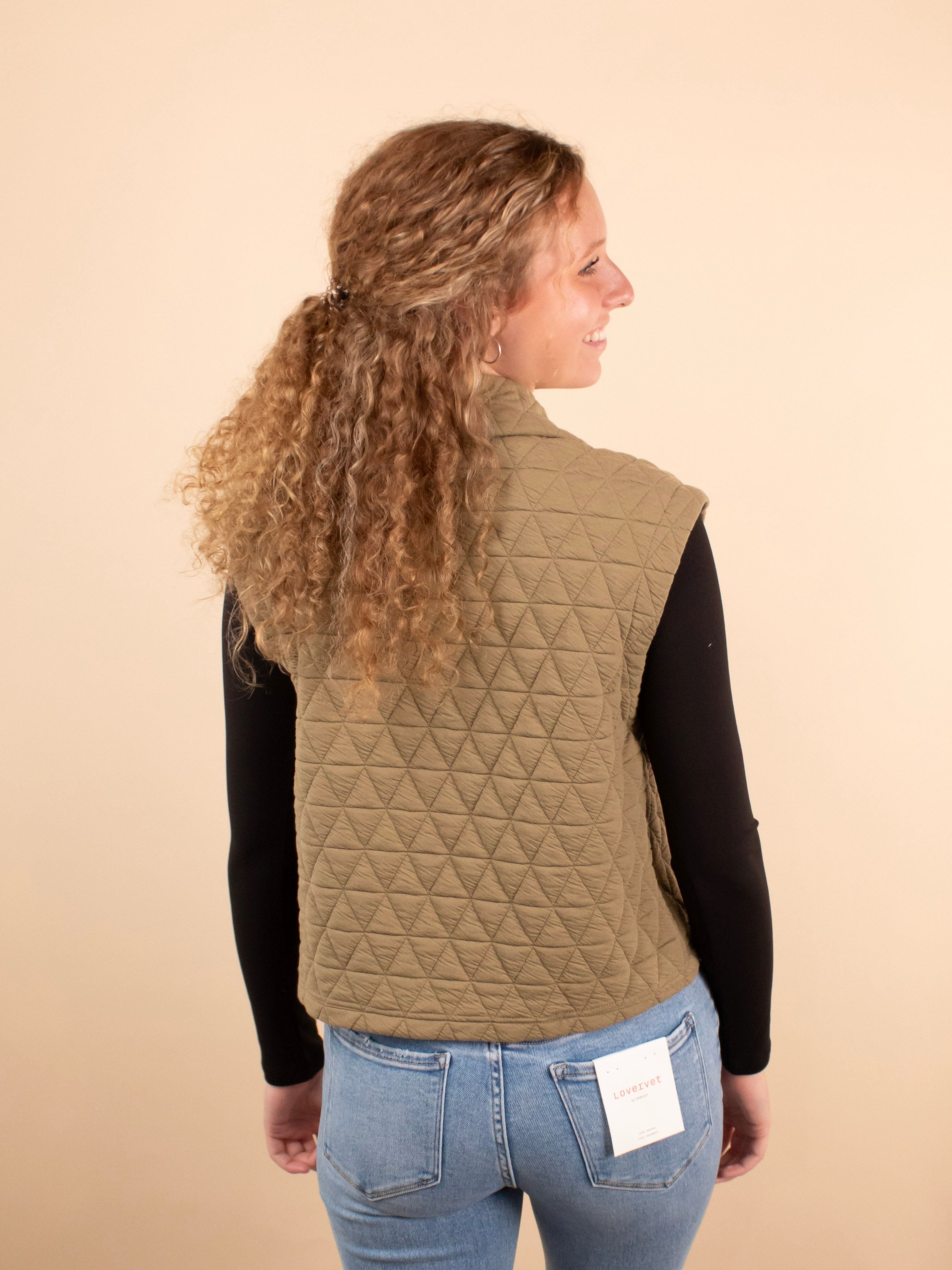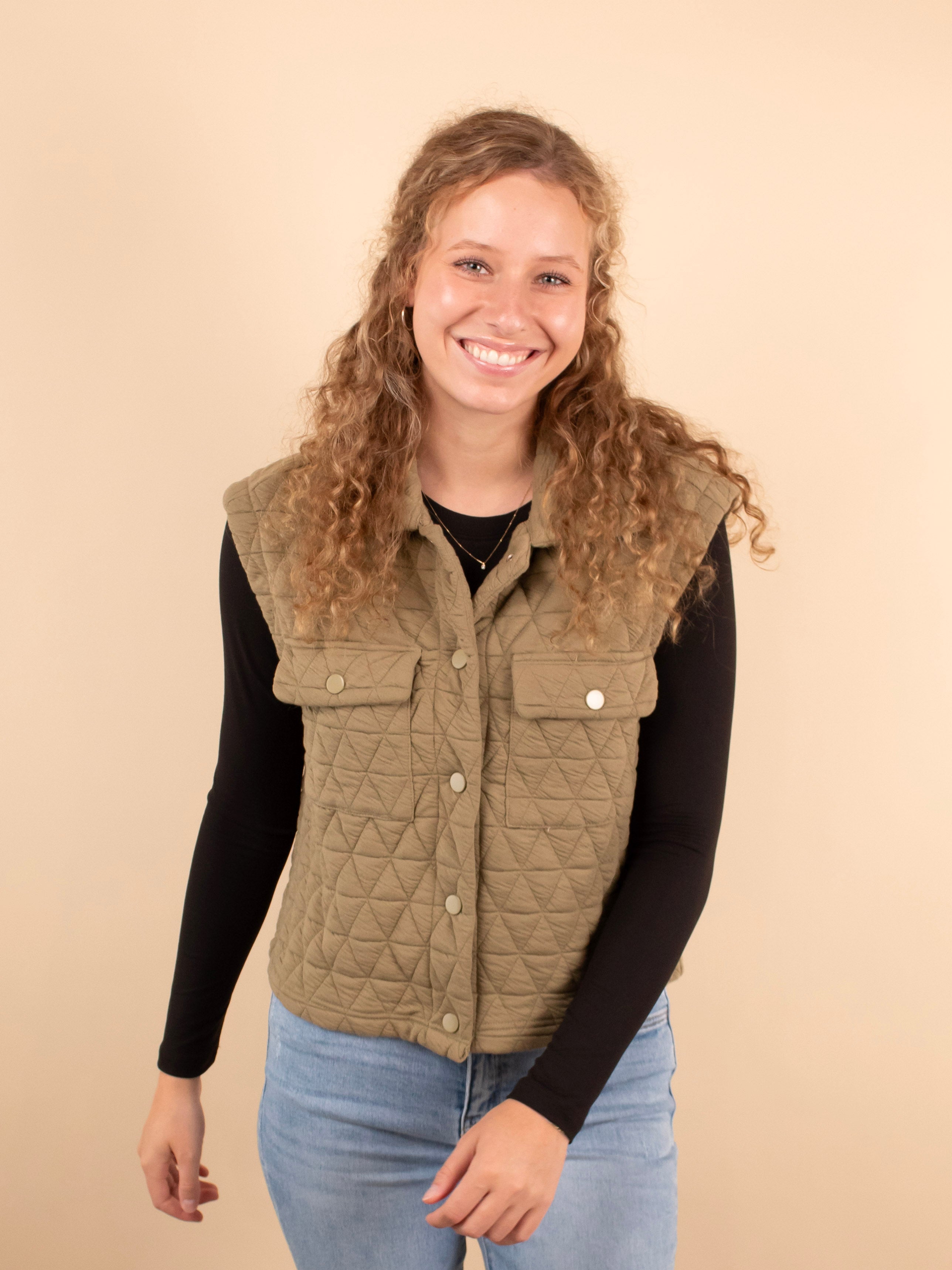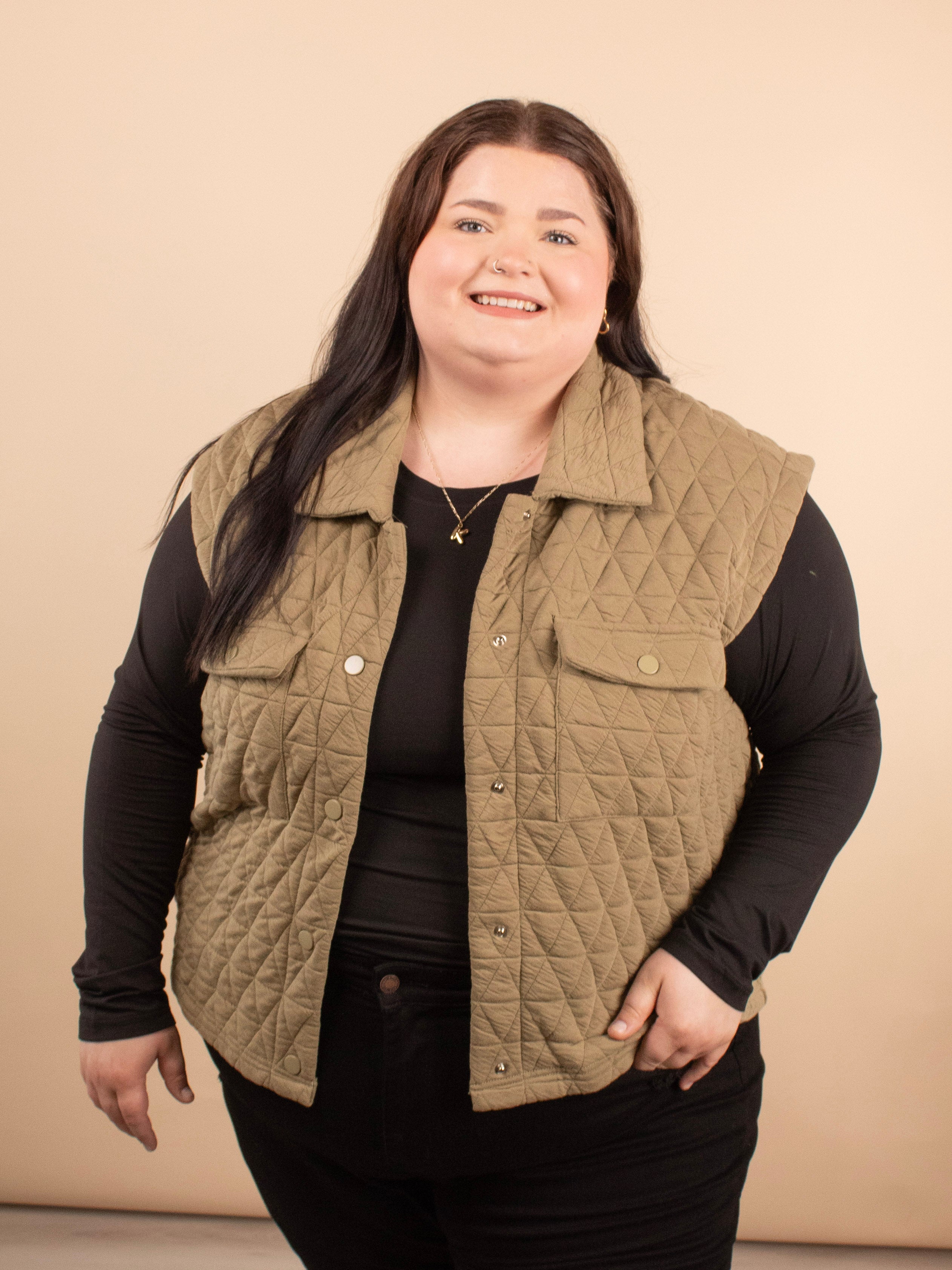 The Amelia Quilted Vest in Olive is a fall layering must-have. With its soft quilted fabric, waist-length cut, and versatile olive green shade, it adds the perfect finishing touch to any outfit. Stylish yet comfy, this vest is an easy way to elevate your fall look.