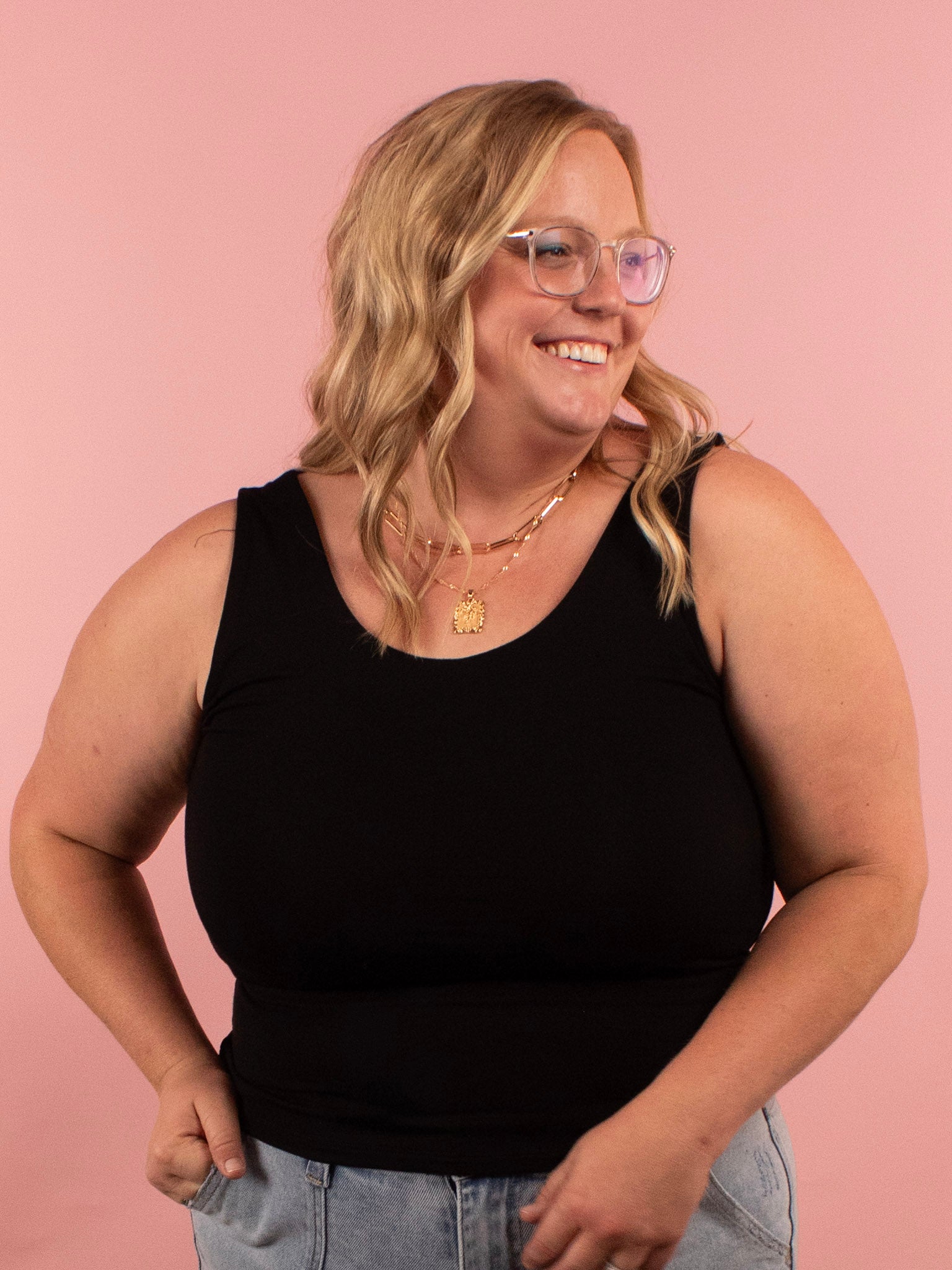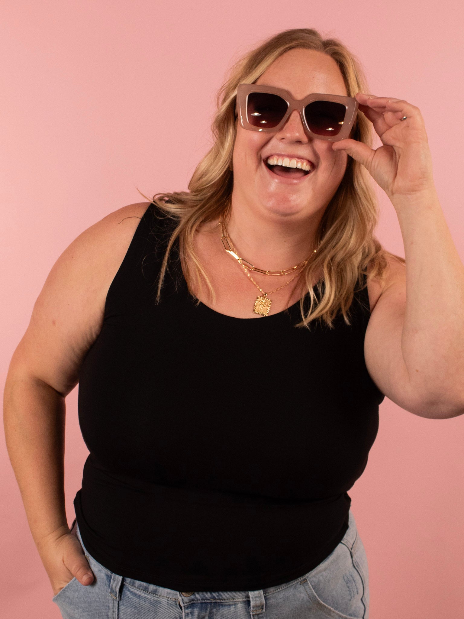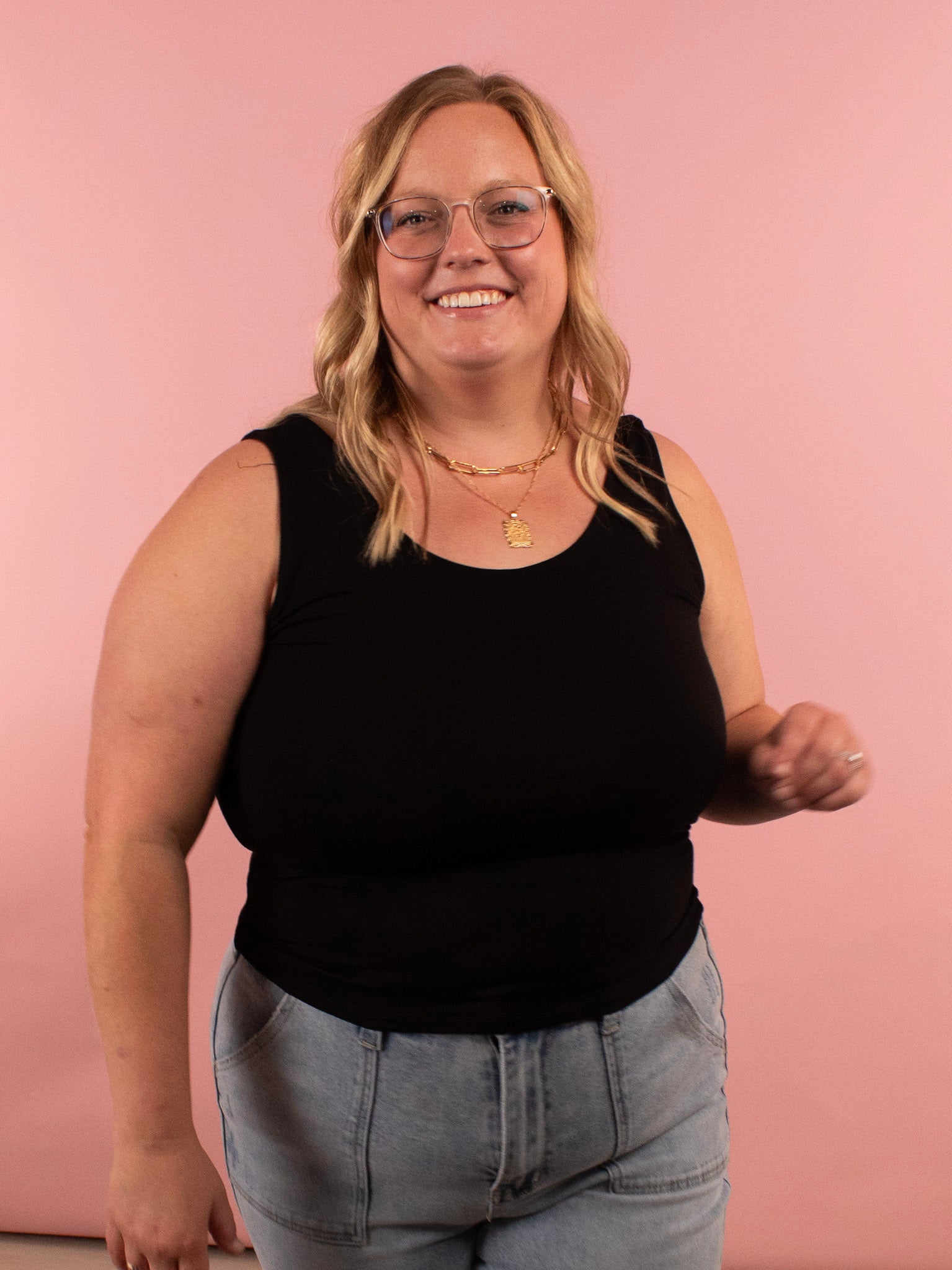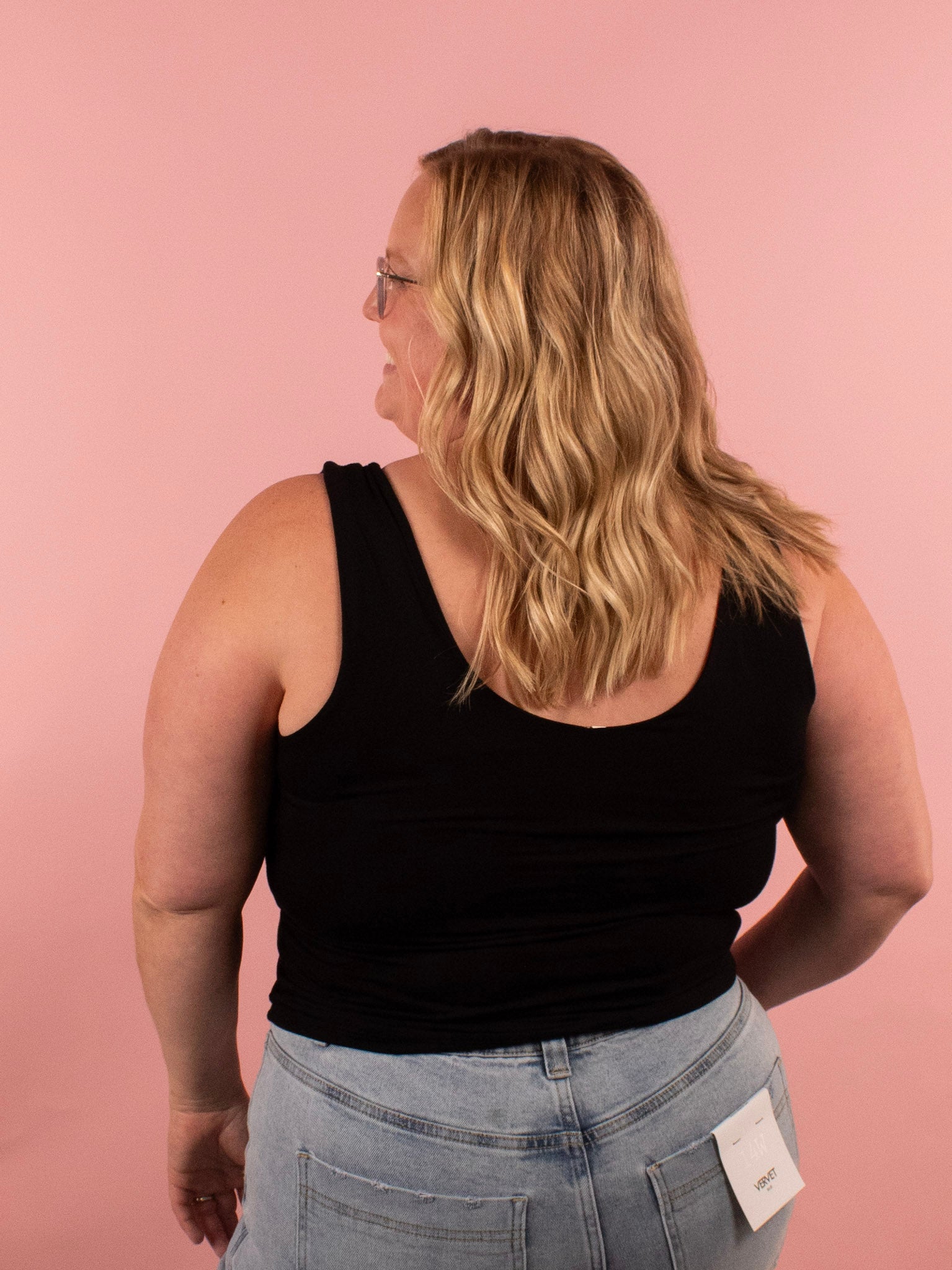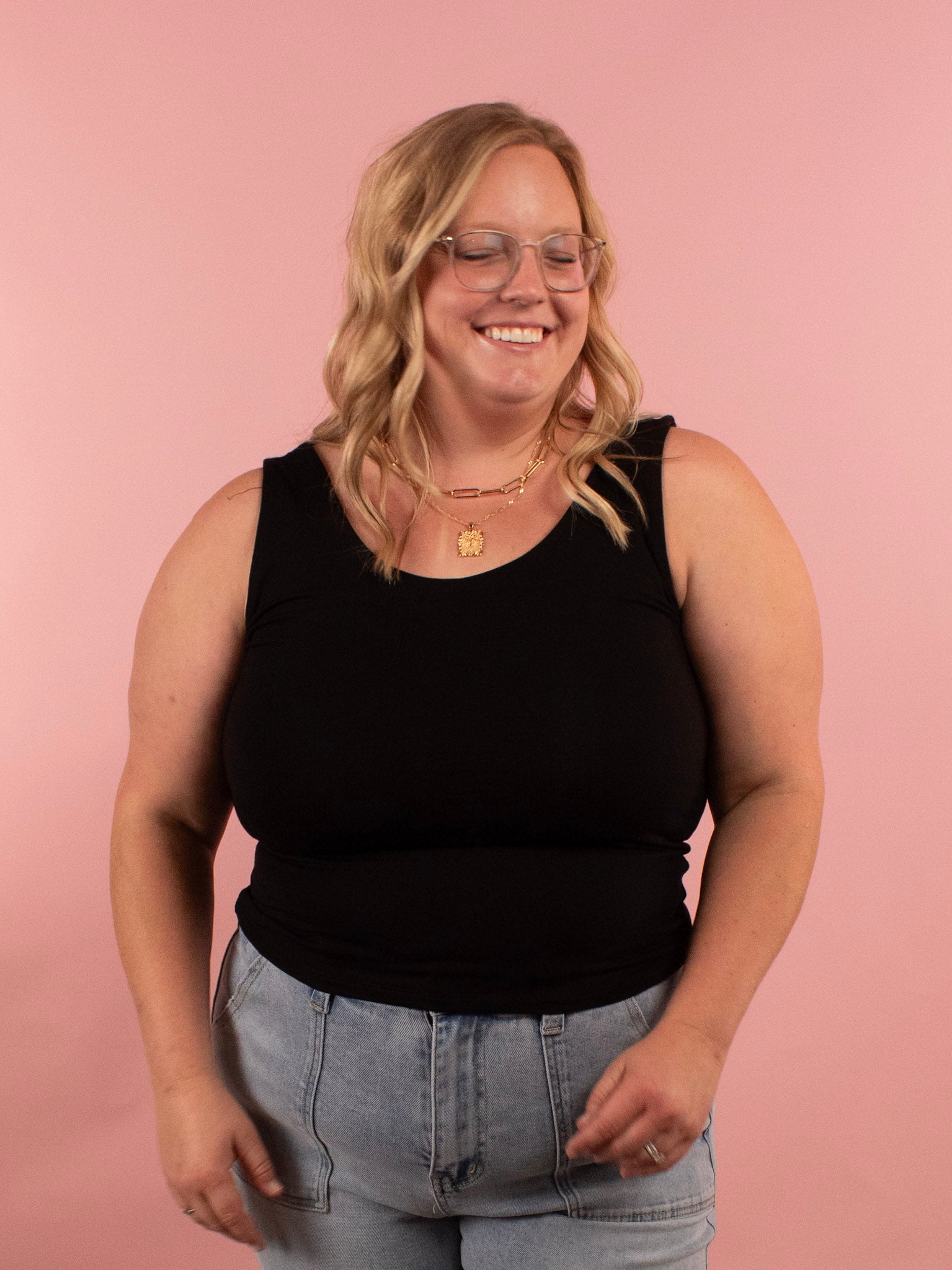 The Basic High Neck Tank is made with double-lined, soft, and stretchy fabric, this tank features a scoop neckline. Perfect for layering with a cardigan or flannel, and shorter waist length ensures a flattering fit. Elevate your style with this premium piece.