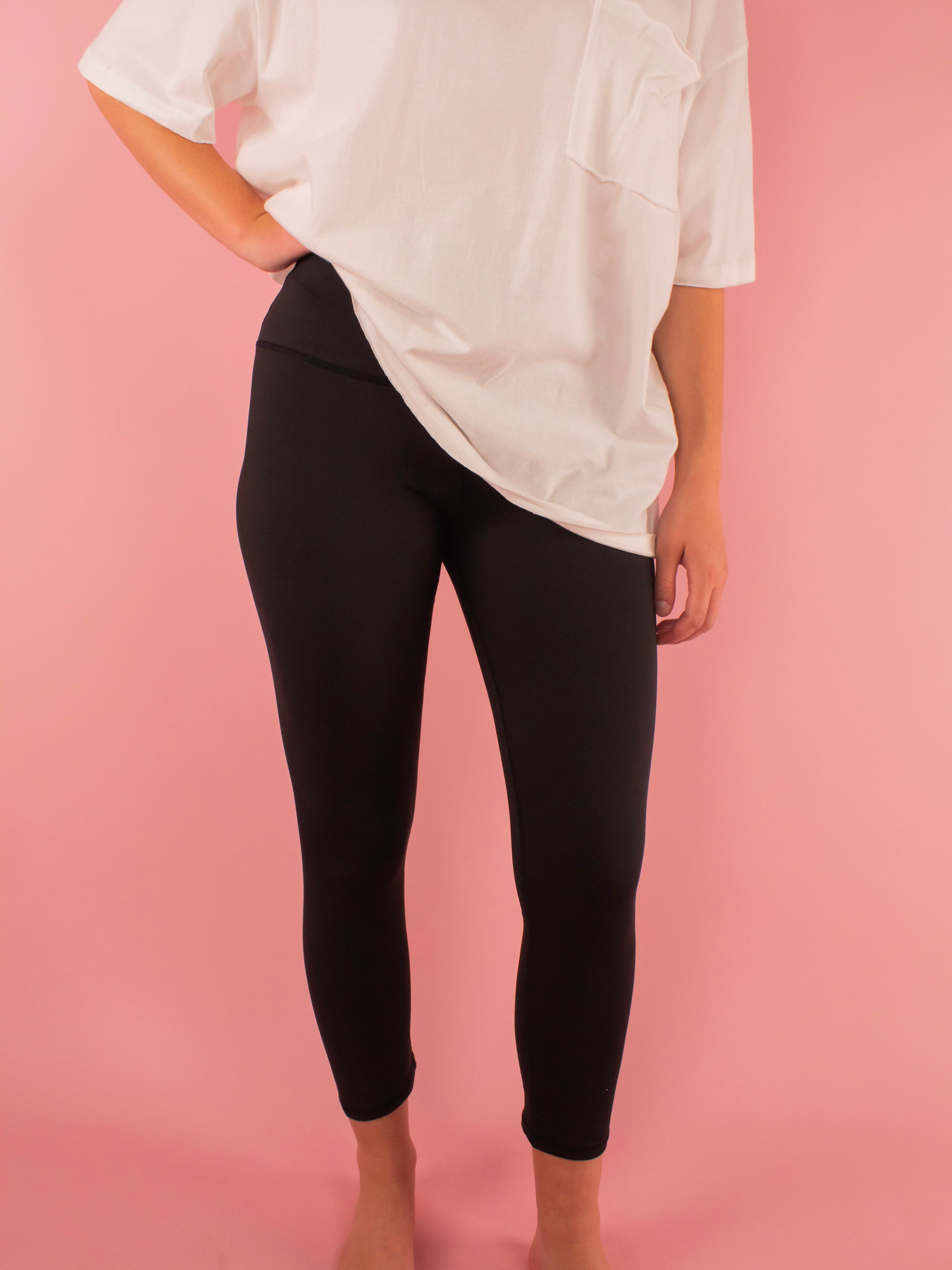 Step into style and comfort with our Black Capri Leggings. With a wide waistband and capri length, these leggings are both flattering and practical, perfect for any occasion. Make a statement and rock these versatile leggings with confidence!