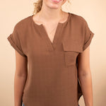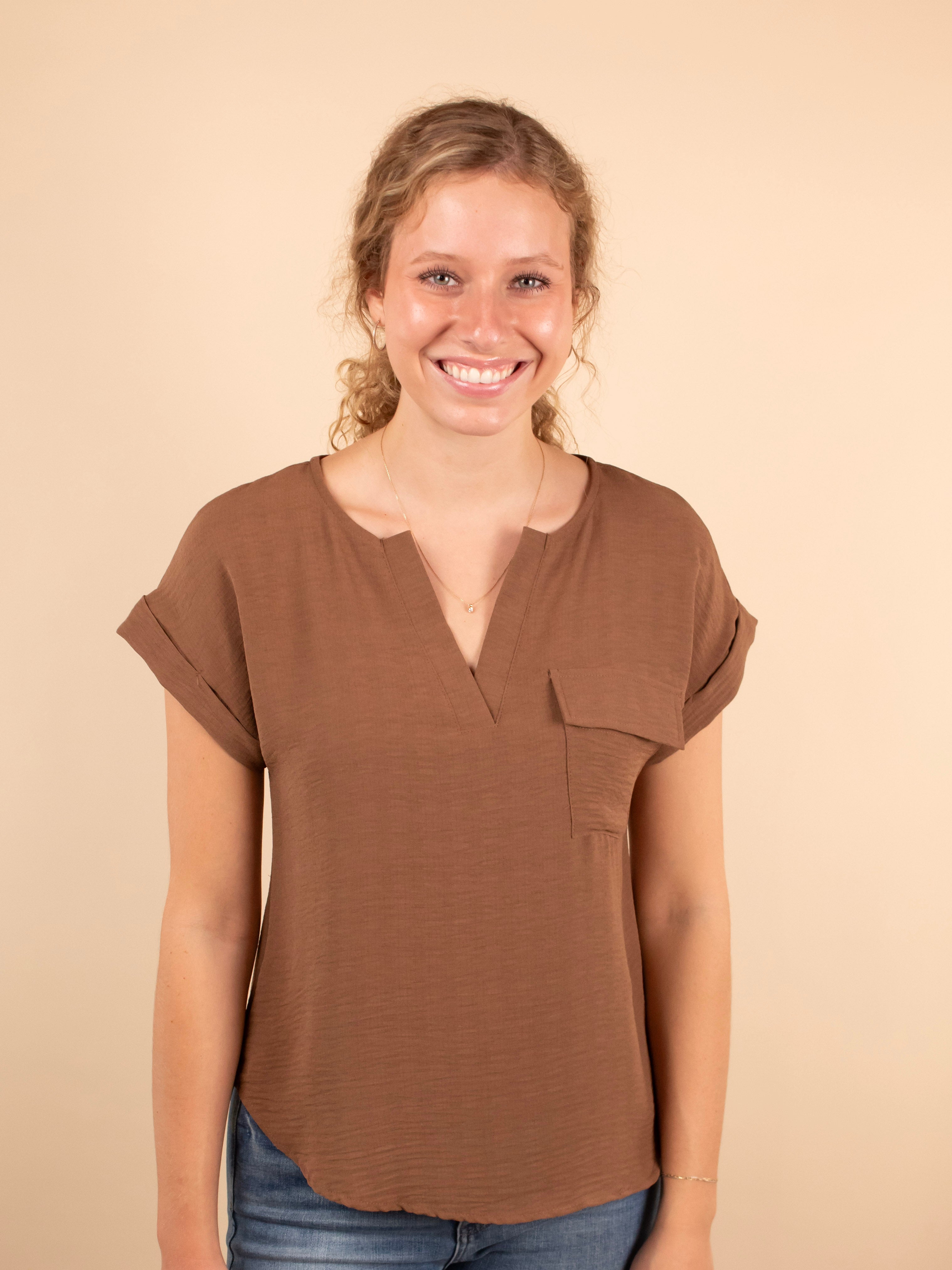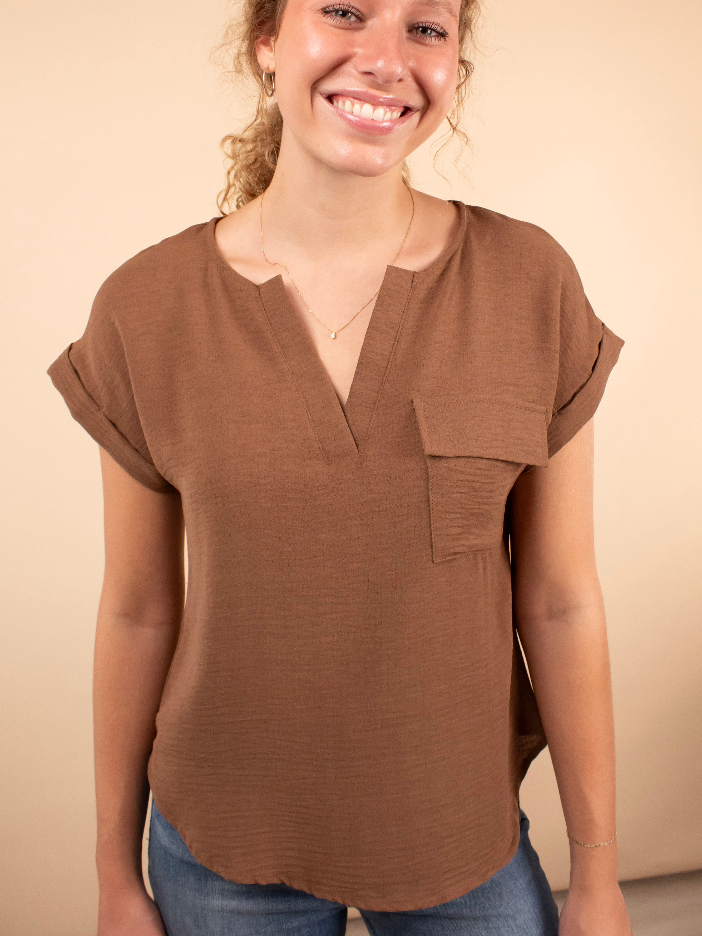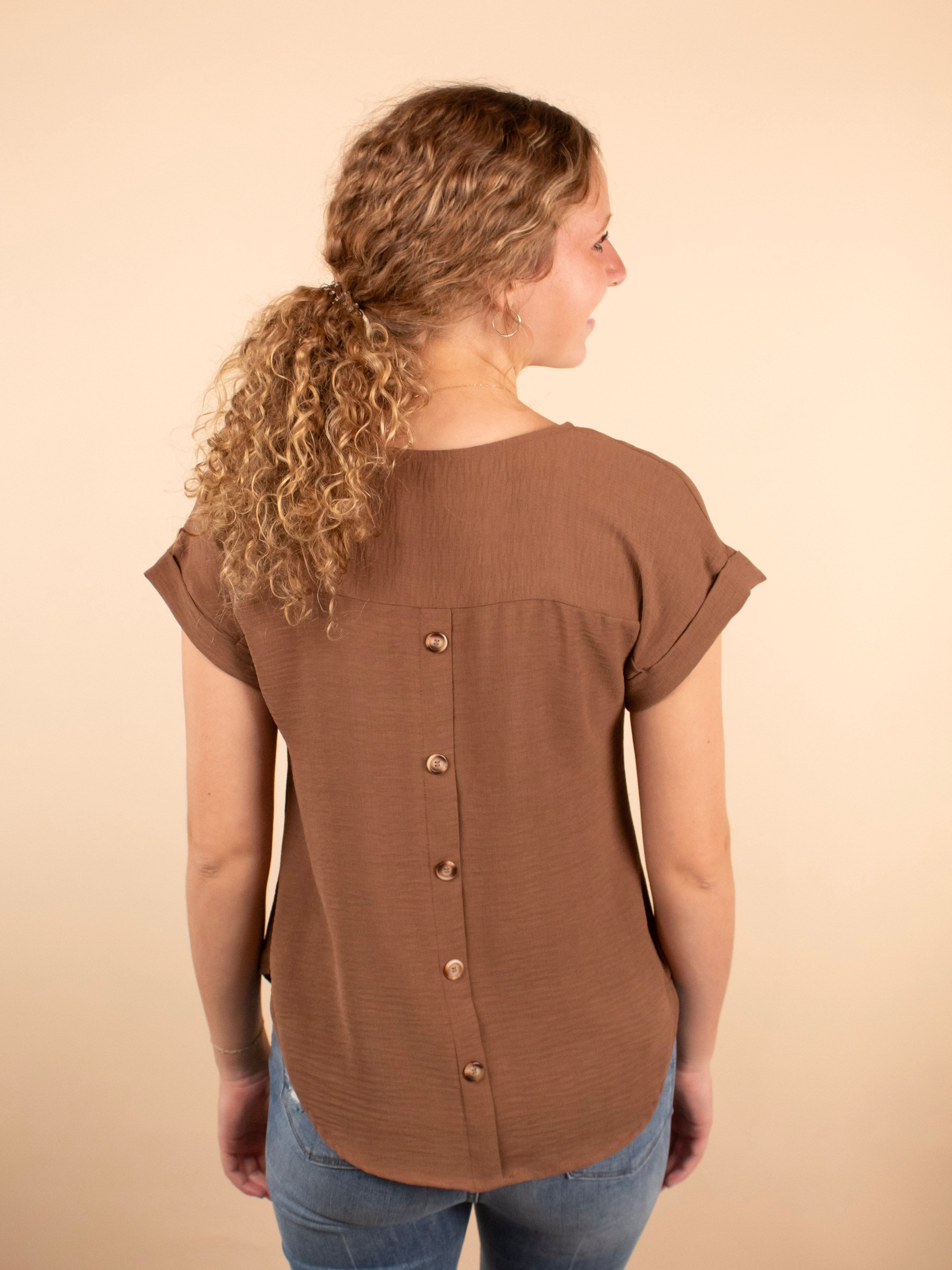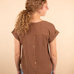 Effortlessly chic, the Corinne Back Button Top in Café is the perfect blend of timeless style and warm, neutral elegance. The elevated v-neck pairs beautifully with the subtle sheen of its dressy fabric, making it ideal for work, dinners, or special events - while still feeling relaxed enough for everyday wear. Back button detailing adds a unique twist, and the breast pocket detail offers a polished finishing touch.