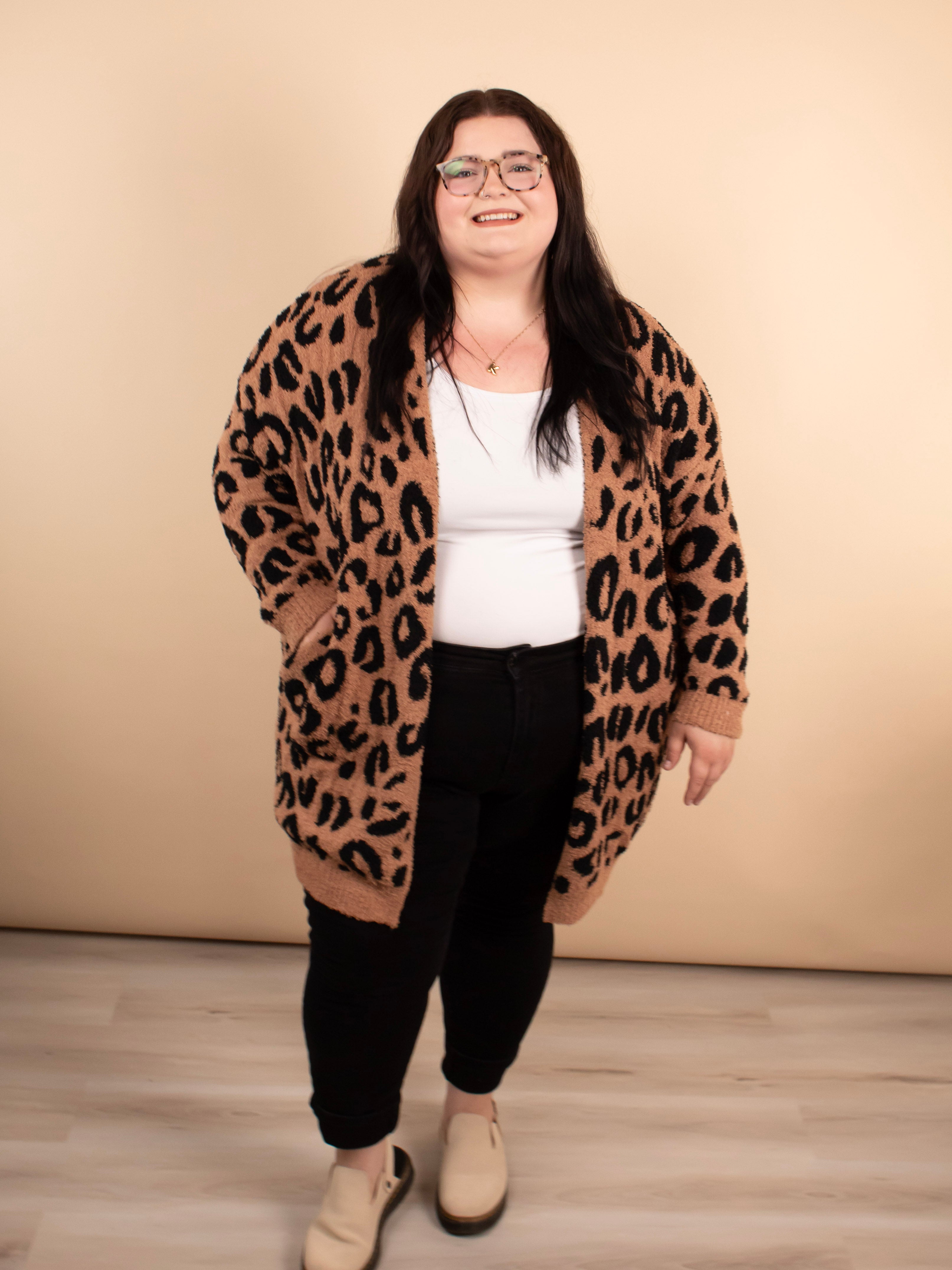 Like wrapping up in your favorite blanket—only better. The Cozy Days Leopard Cardigan combines softness, stretch, and style in one effortless layer. With its reversible leopard design and roomy fit, it’s the ultimate cozy-chic piece for fall and beyond.