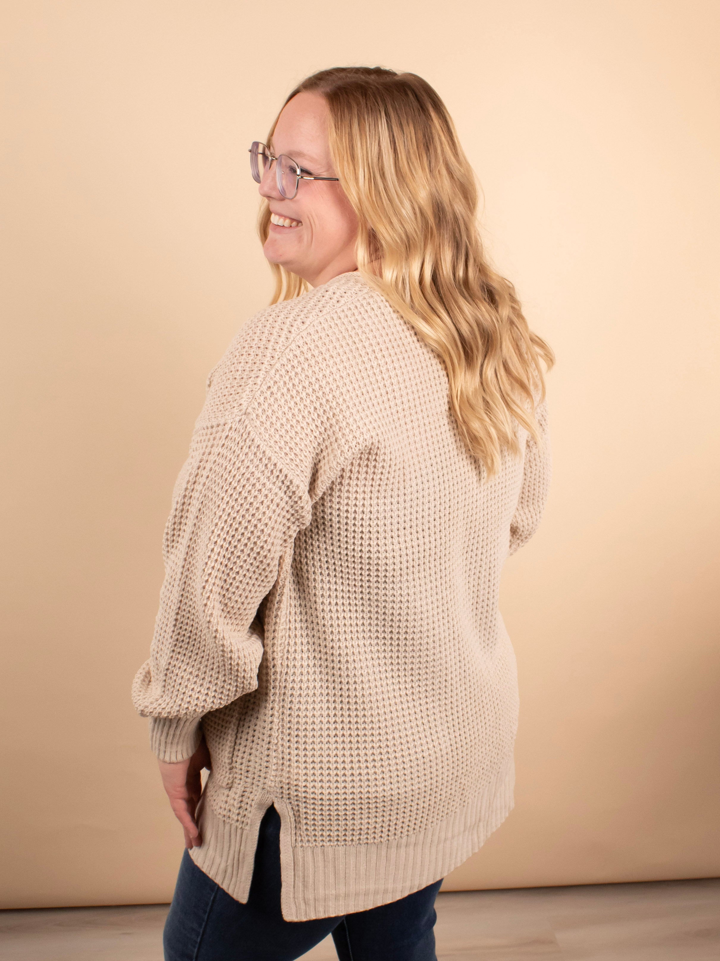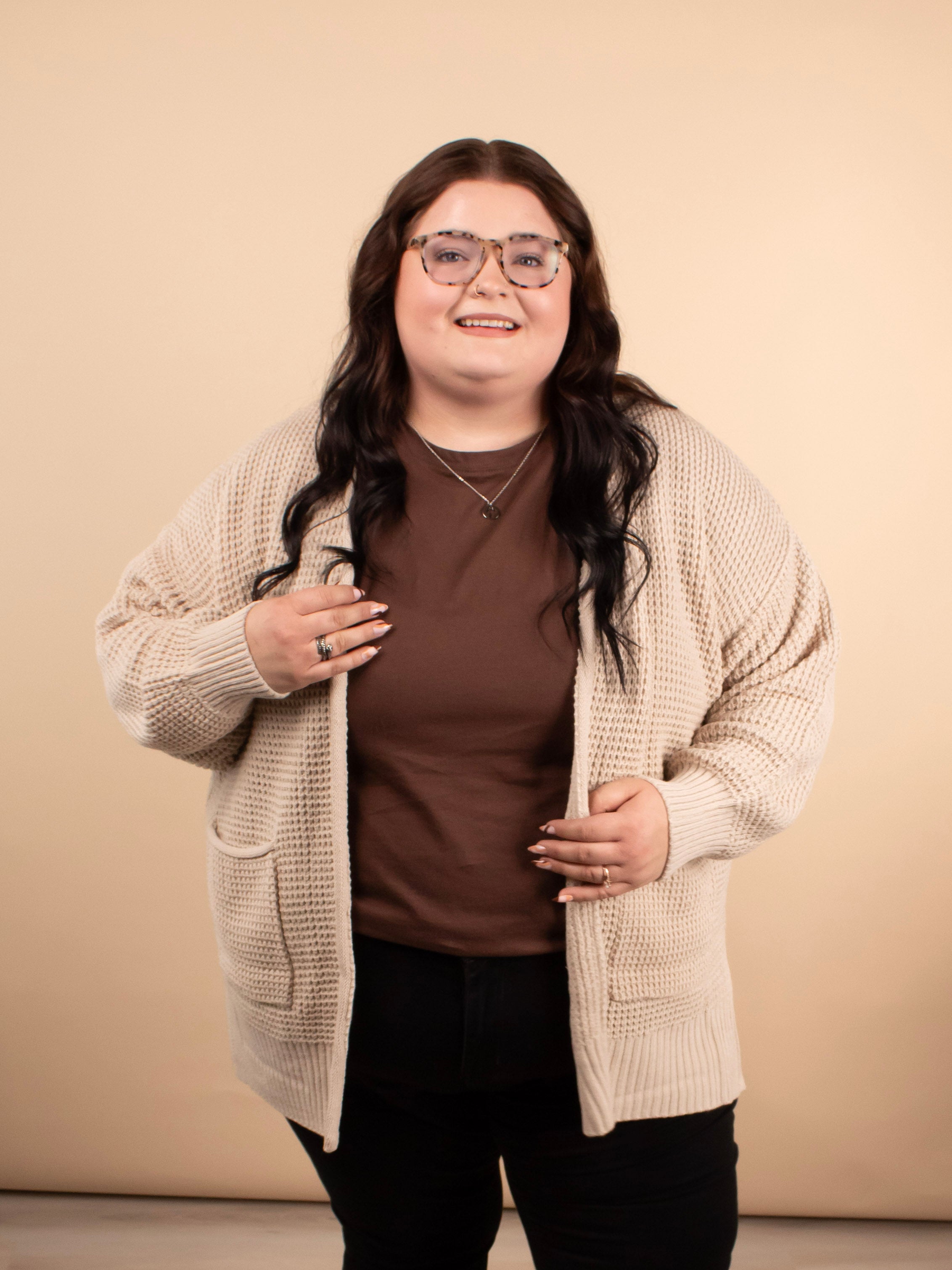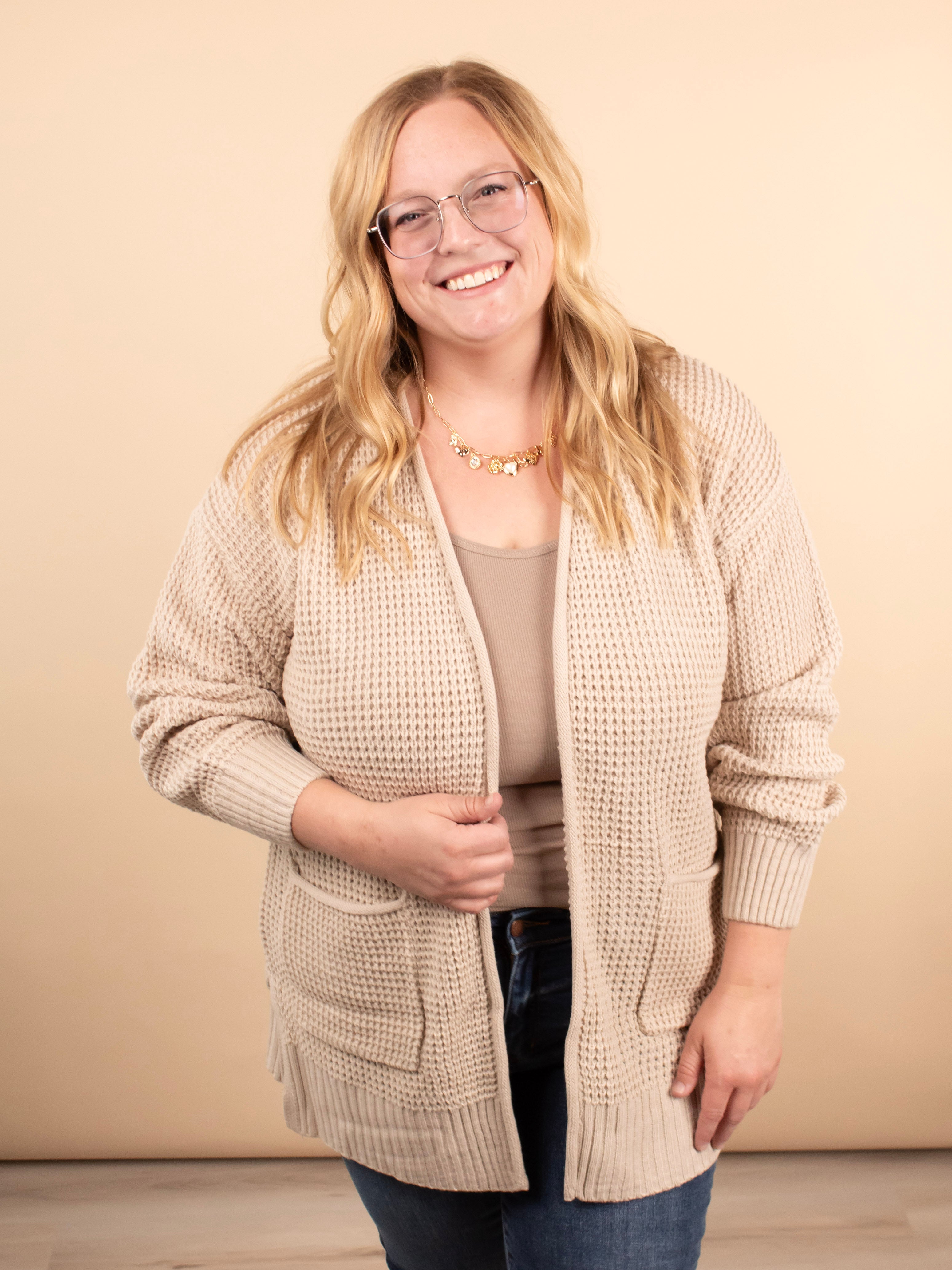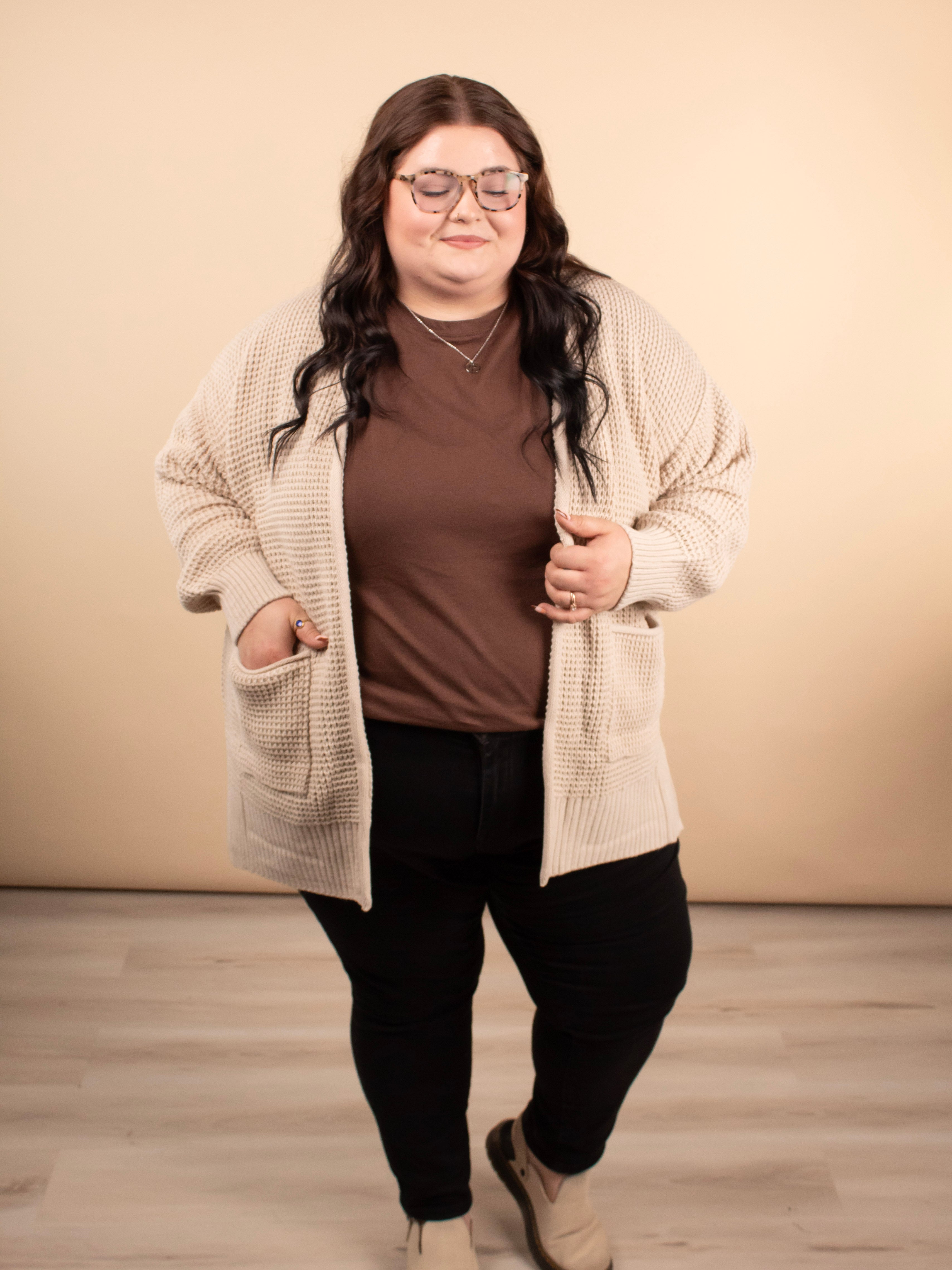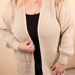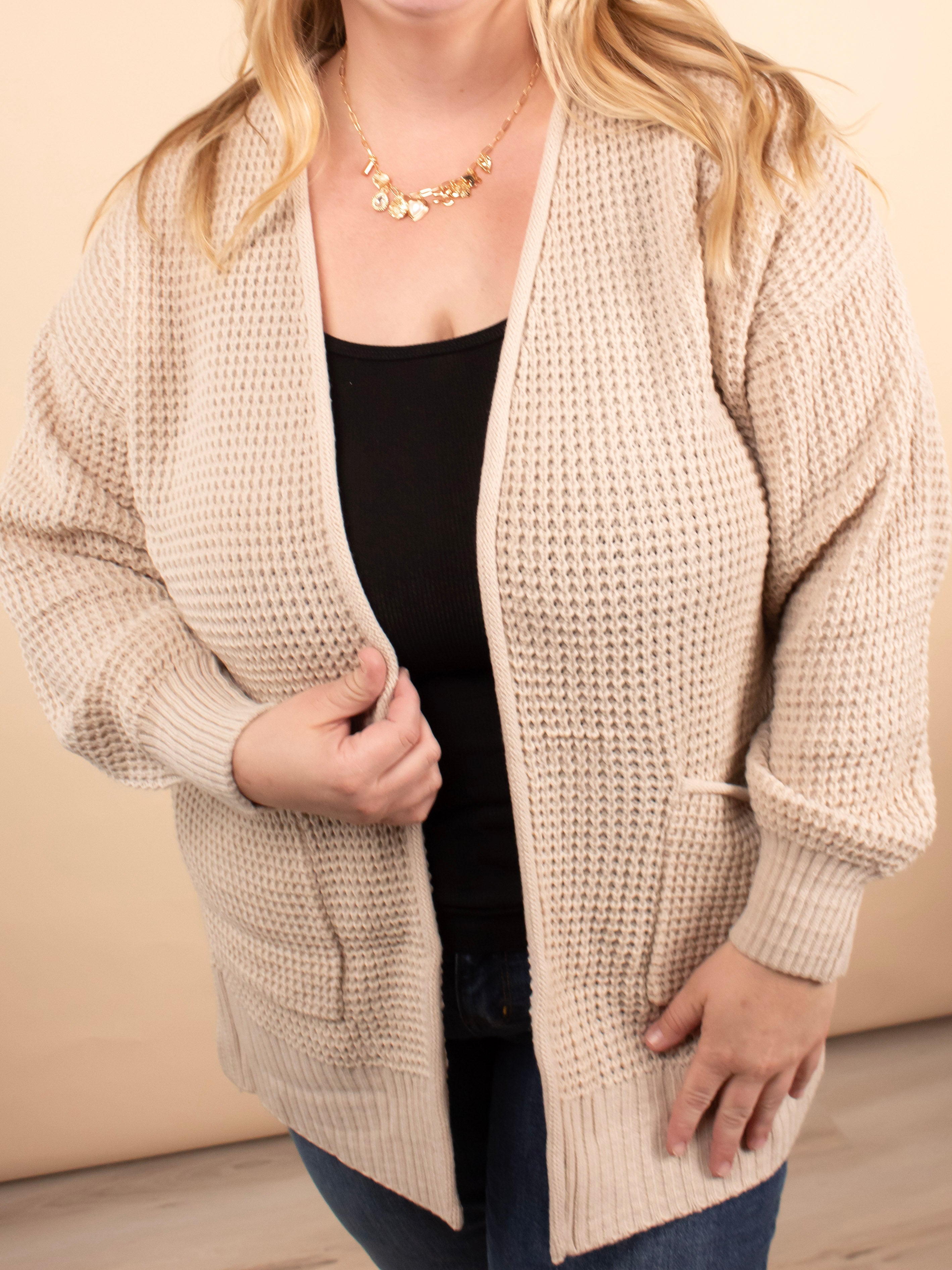 Meet your new cozy go-to! The Crisp Morning Cardigan in Beige is the perfect blend of comfort and style with its chunky knit texture, longer length, and classic color. Whether layered over a tee, tank, or dress, this cardigan brings effortless warmth and chic to any outfit.