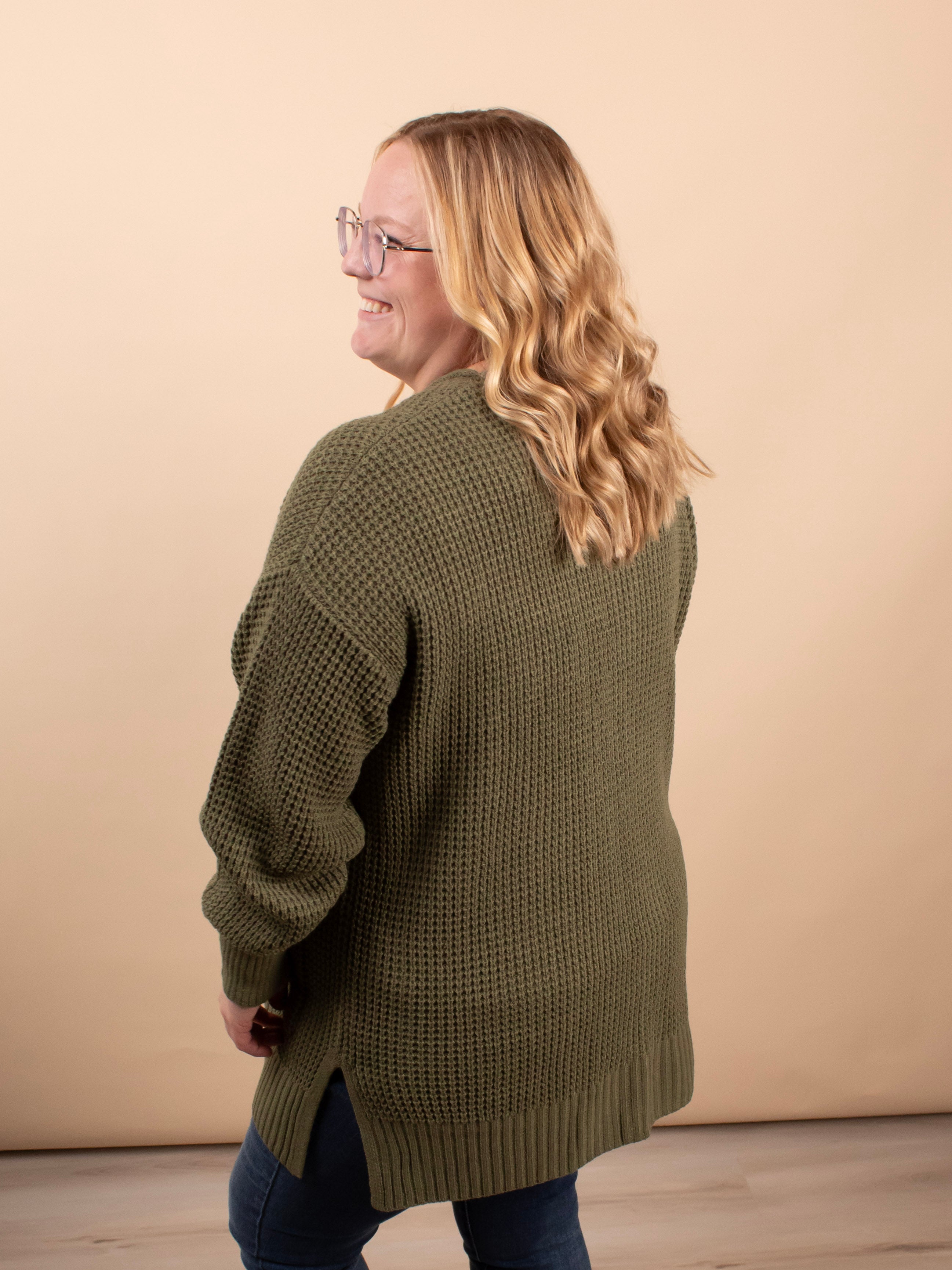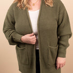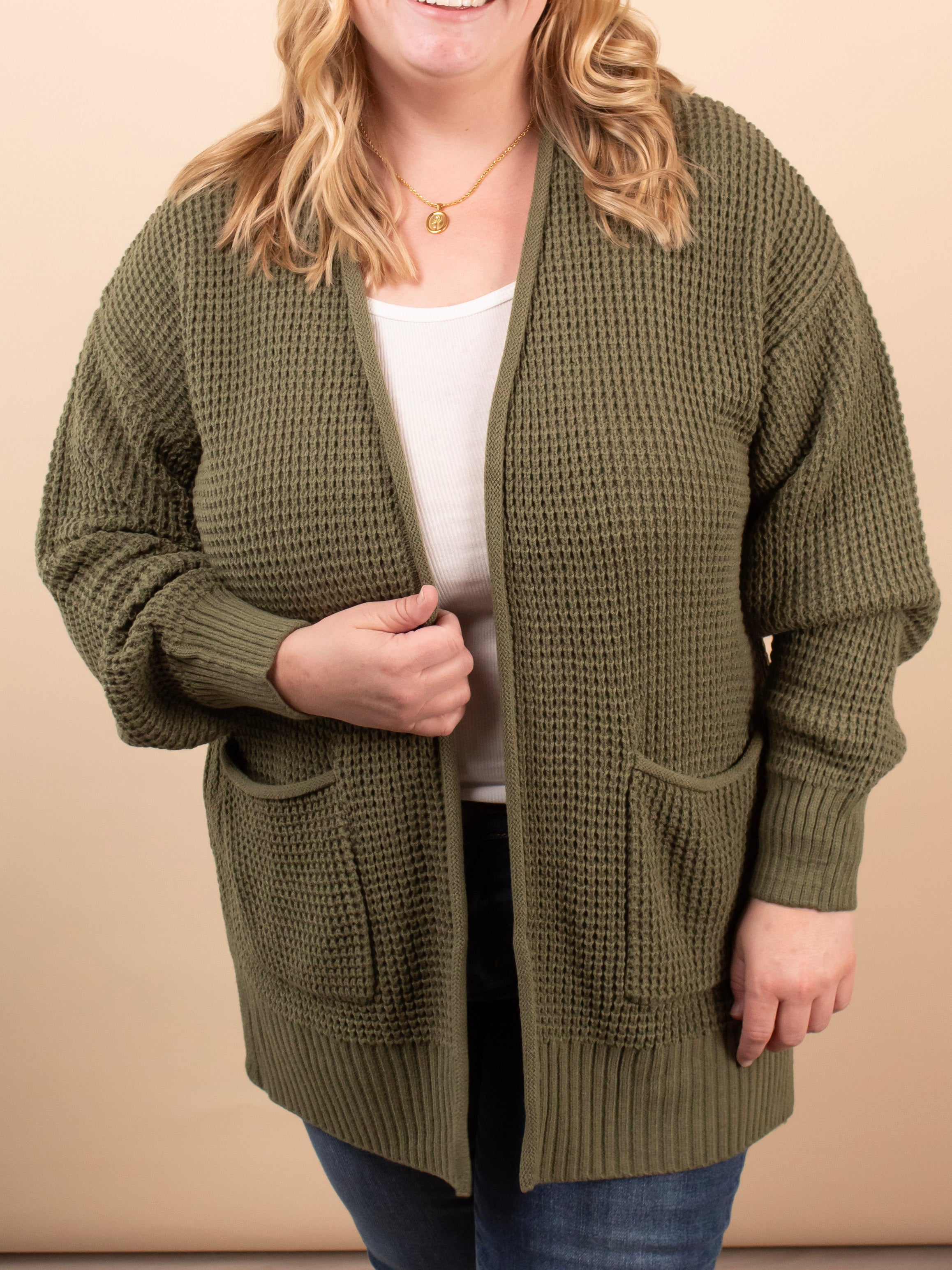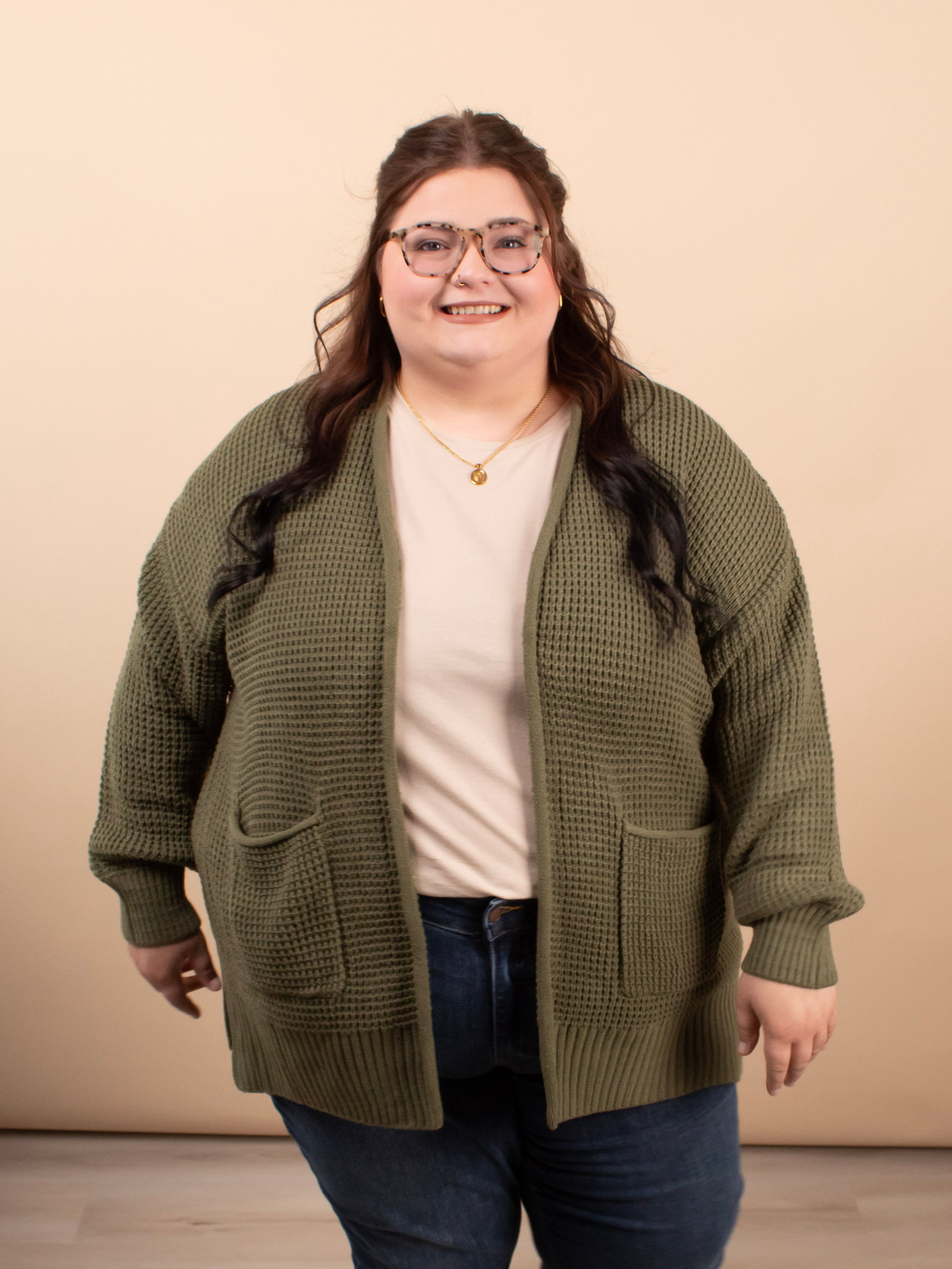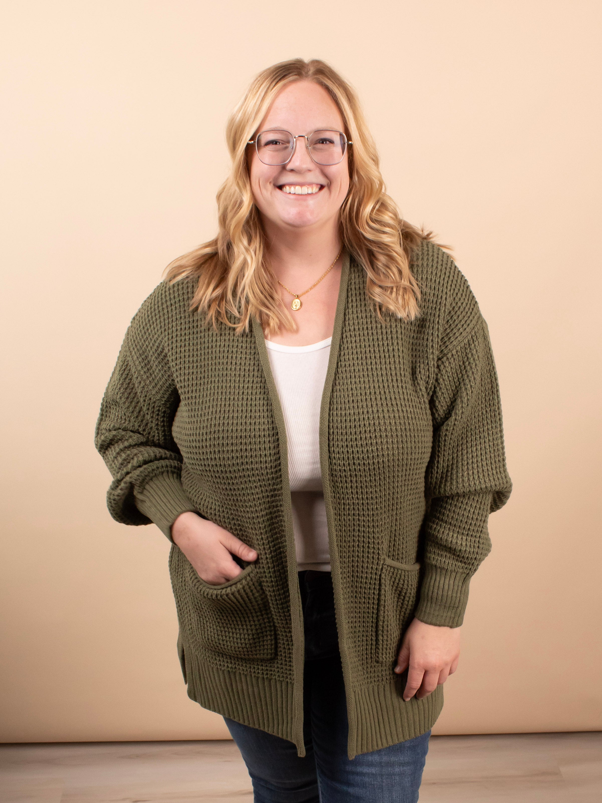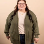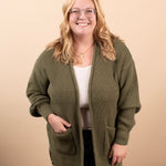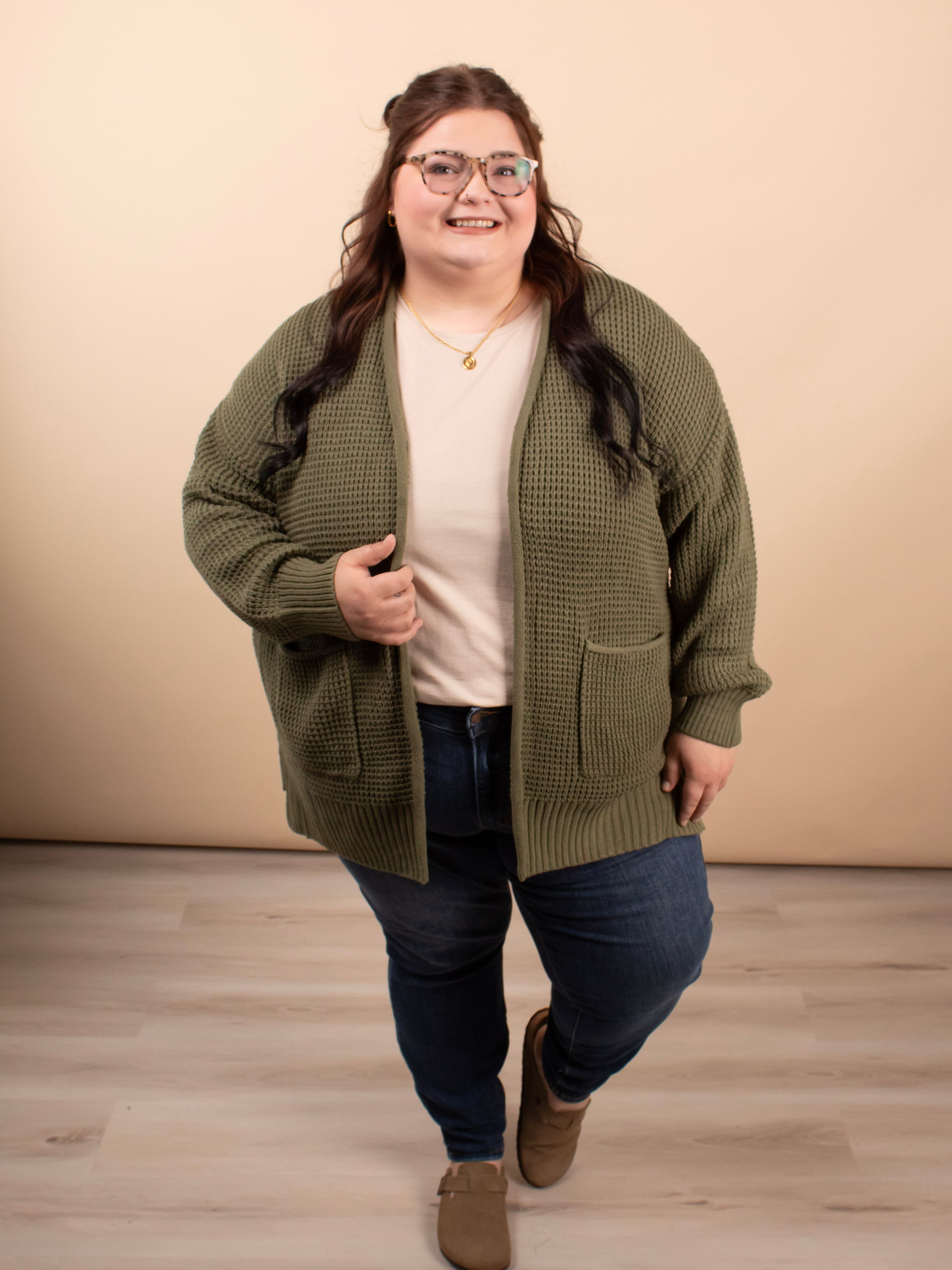 Cozy, chic, and chilly weather-perfect. The Crisp Morning Cardigan in Olive brings everything you loved about the original — the chunky knit texture, longer length, and effortless layering — now in a gorgeous earthy green. This shade adds the perfect touch of warmth to your fall and winter wardrobe while staying timeless enough to wear all year long. With its relaxed fit and legging-approved length, it’s the cardigan you’ll reach for again and again.