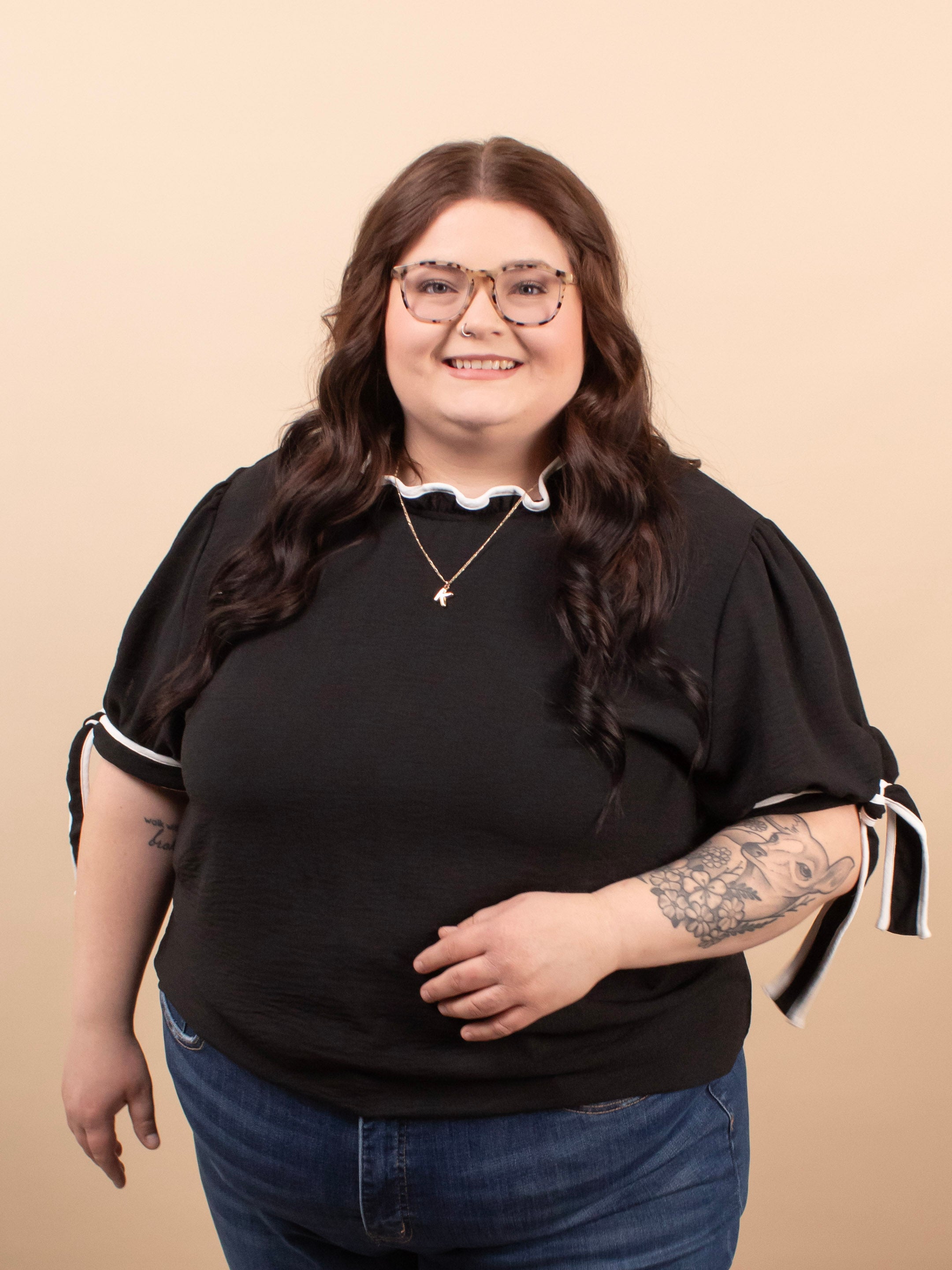Delilah ribbon sleeve black blouse women's boutique top sizes S-3XL