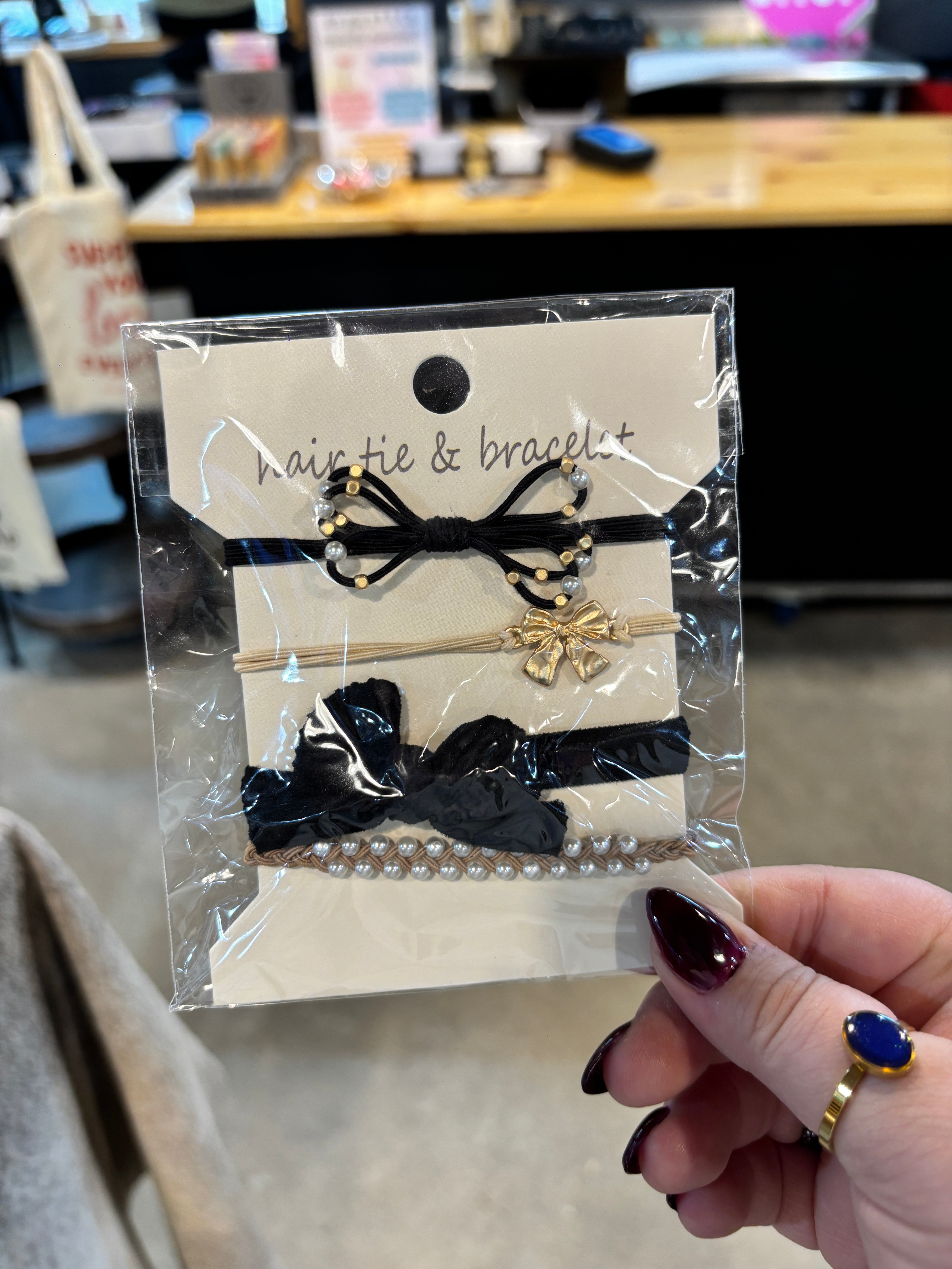 Dual Function Knot Bracelet Hair Ties in Black Bows