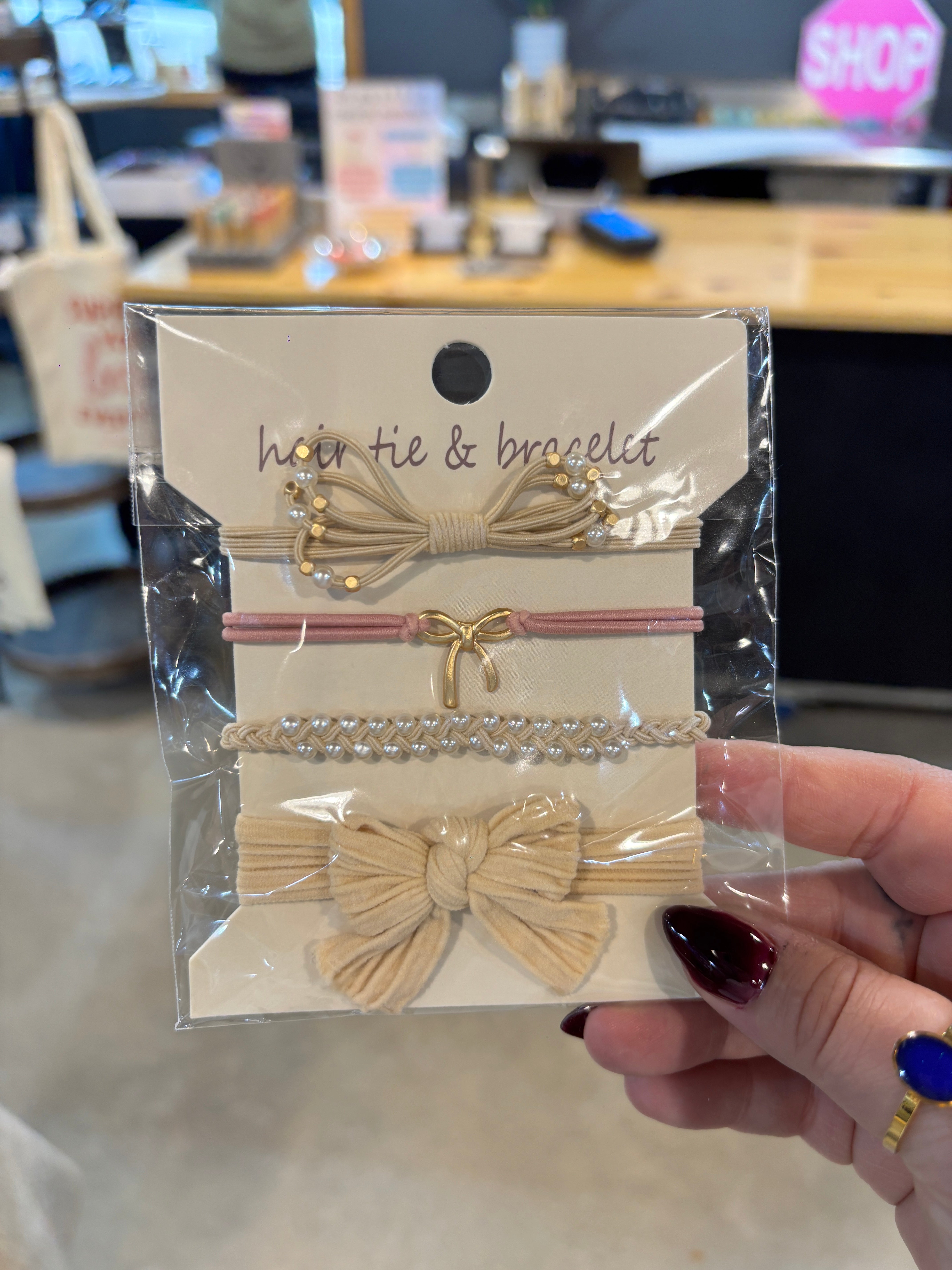 Dual Function Knot Bracelet Hair Ties in Ivory Bows