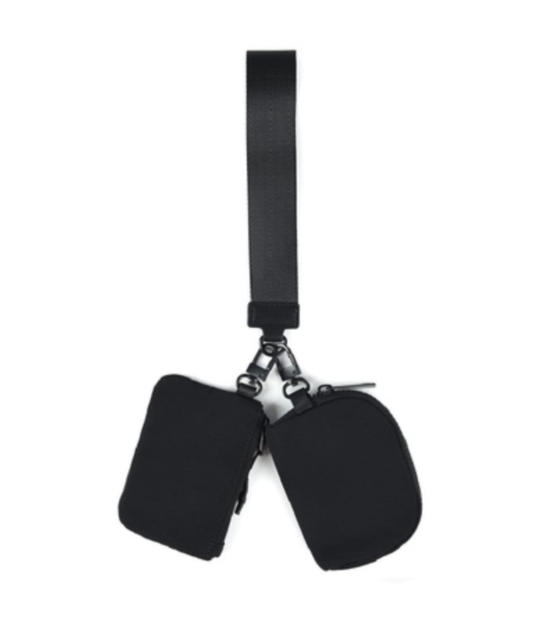 Dual Pouch Wristlet Keychain Wallet in Black