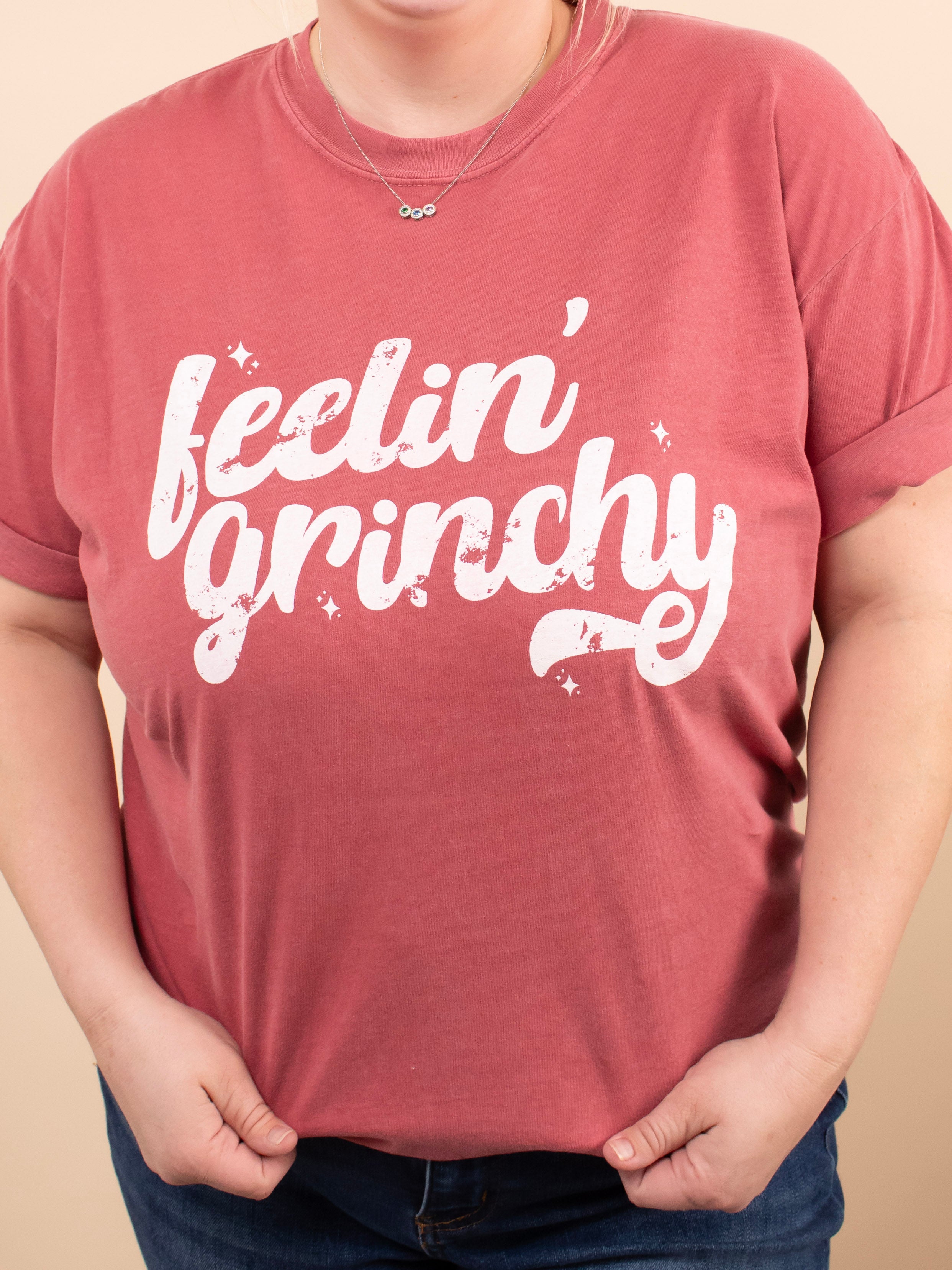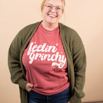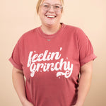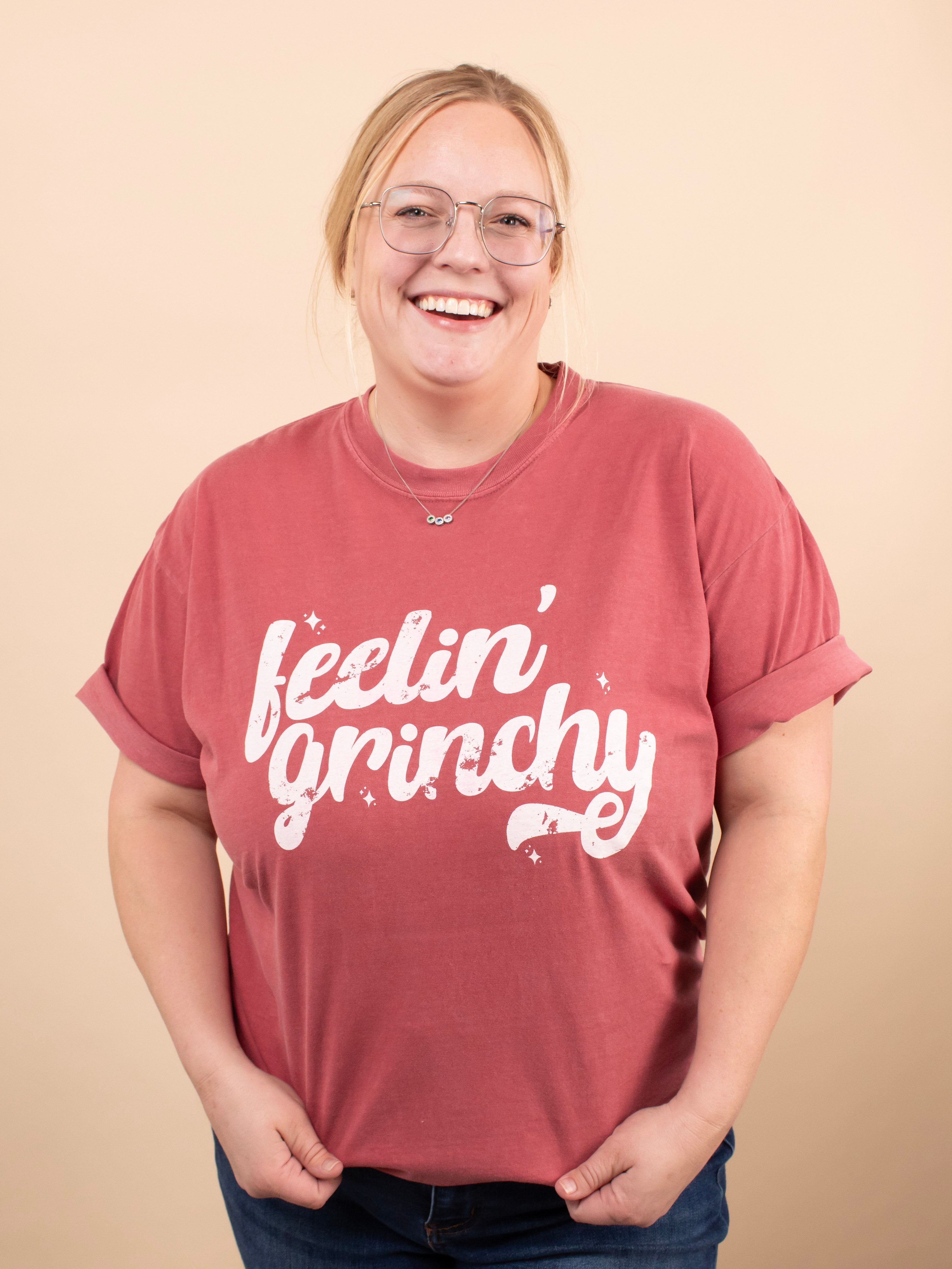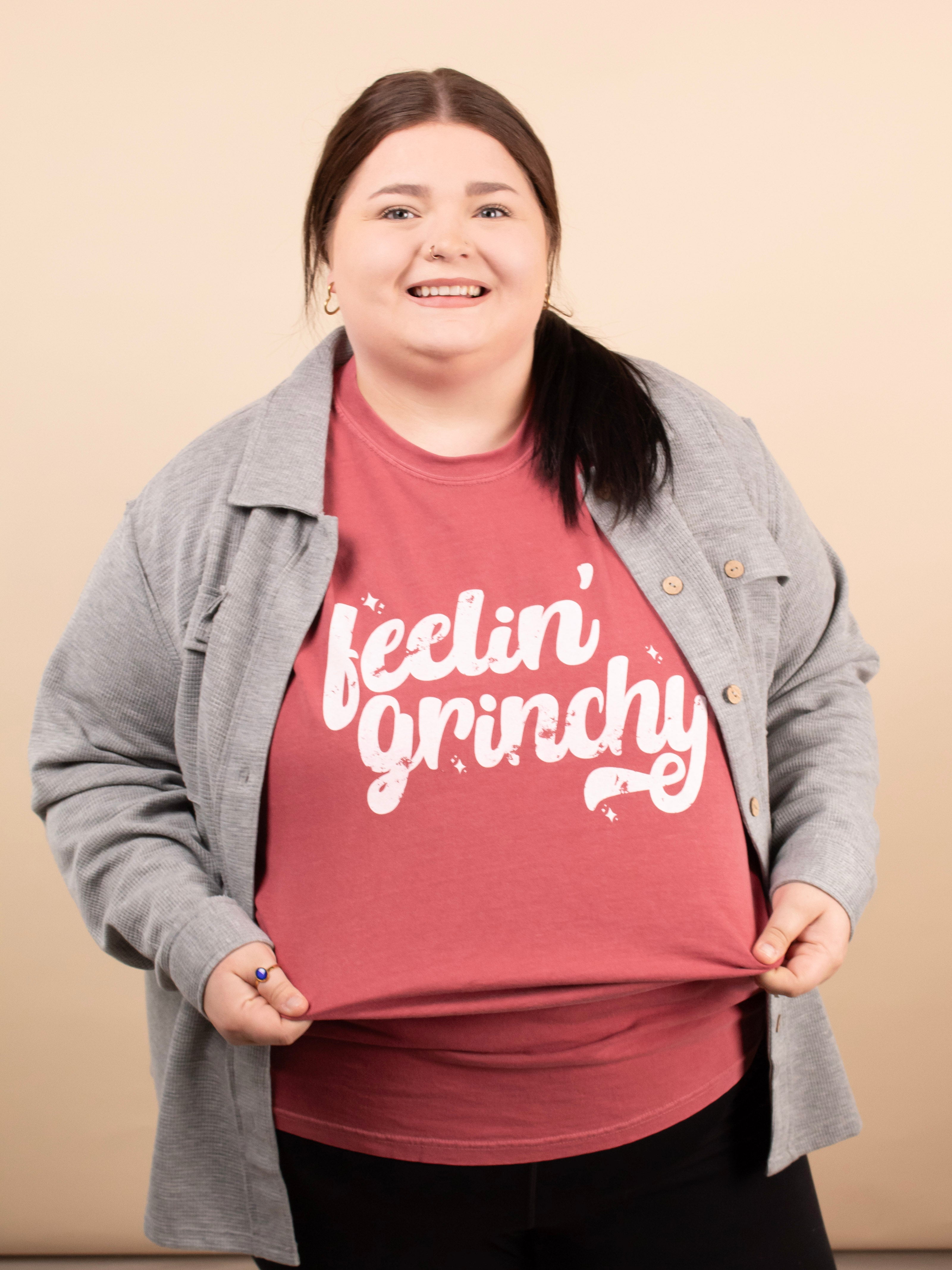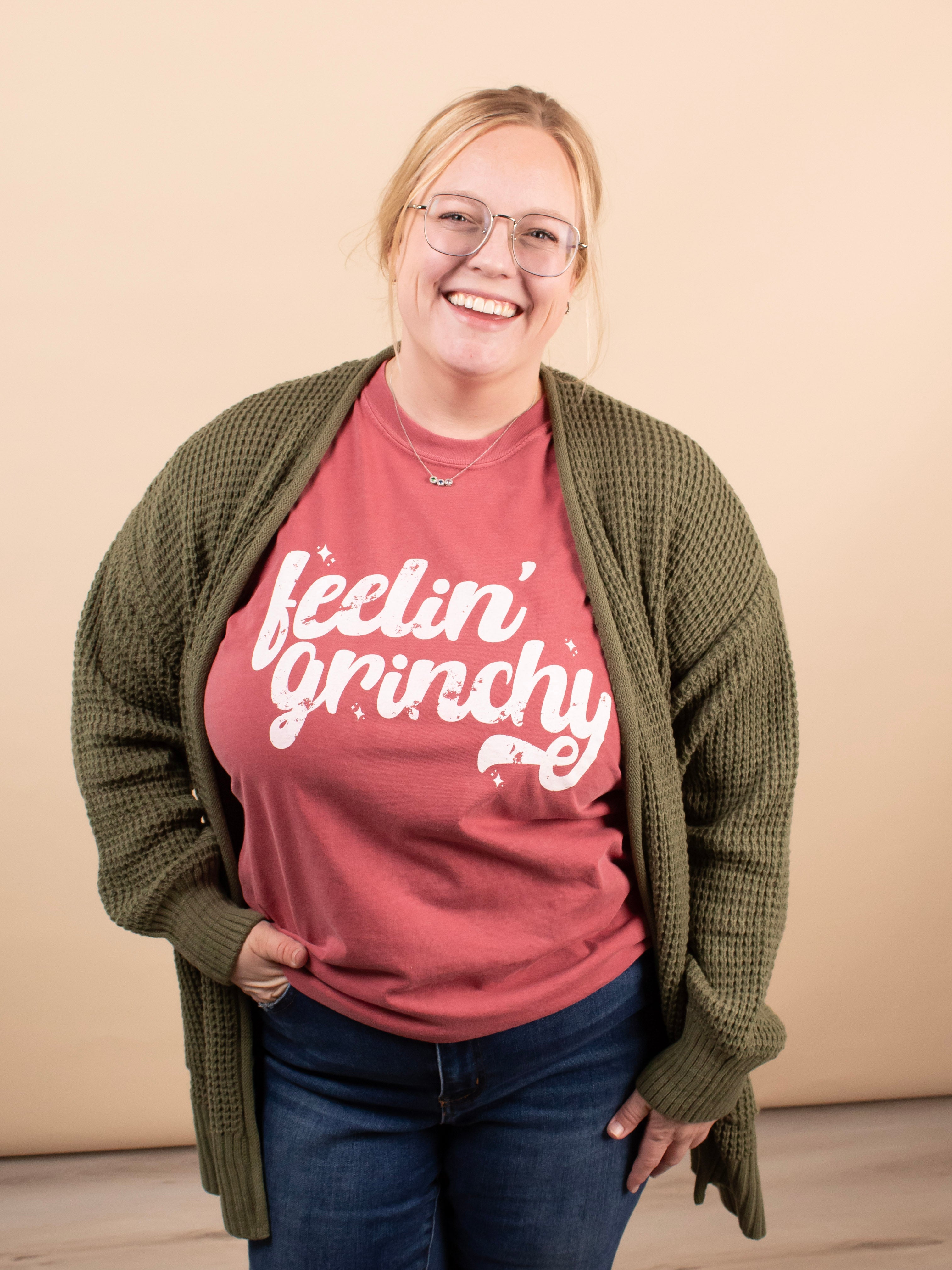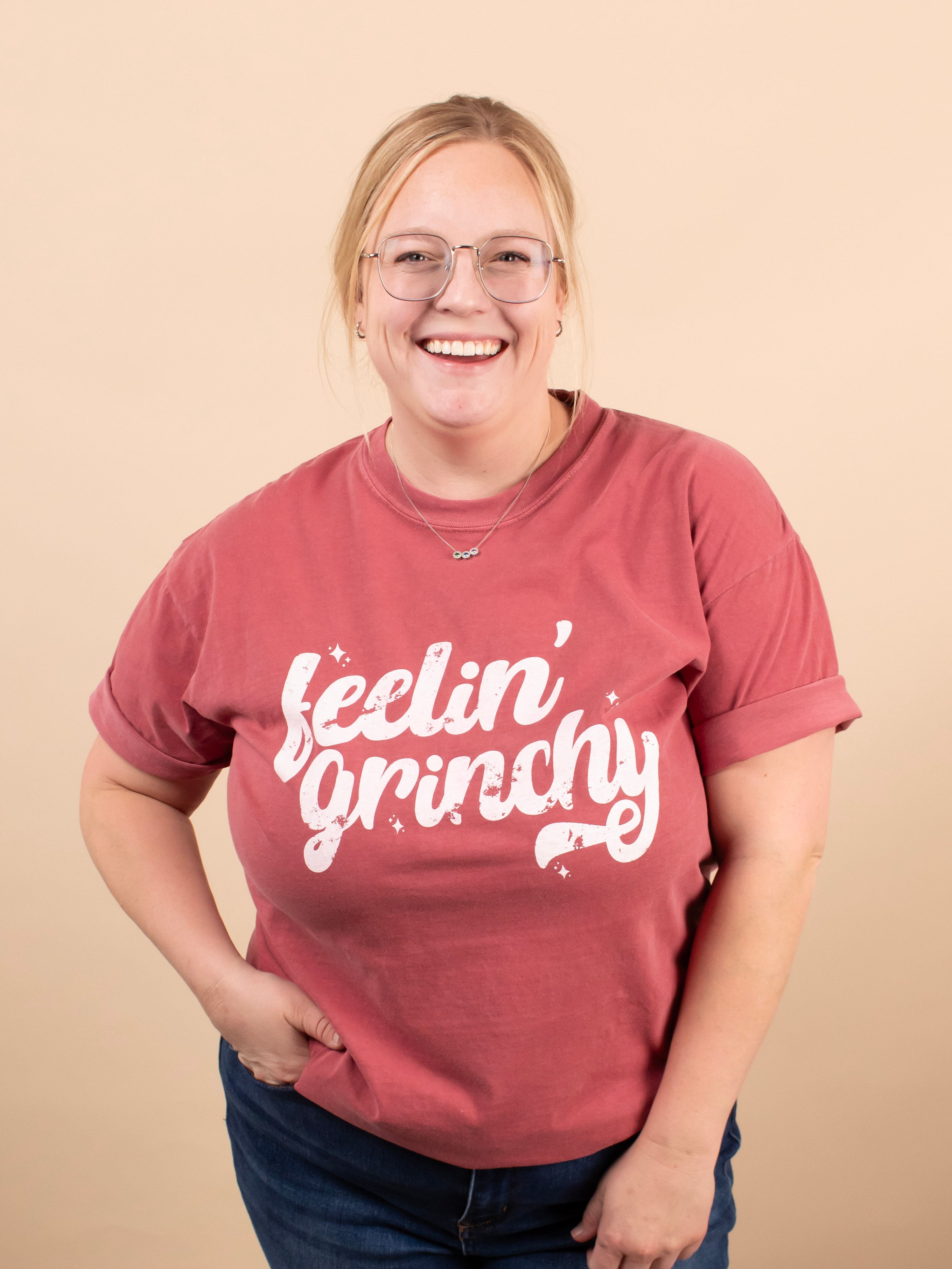 A festive fave with a playful twist — this tee brings the perfect hint of mischief inspired by everyone’s favorite holiday classic, The Grinch. As the Christmas counterpart to our beloved “Feelin’ Witchy” tee, this one delivers the same soft, lived-in Comfort Colors feel you know and love. The bold red hue and cheeky graphic make it an easy go-to for tree-decorating nights, holiday shopping, or anytime you’re feeling a little… Grinchy (in the cutest way possible).