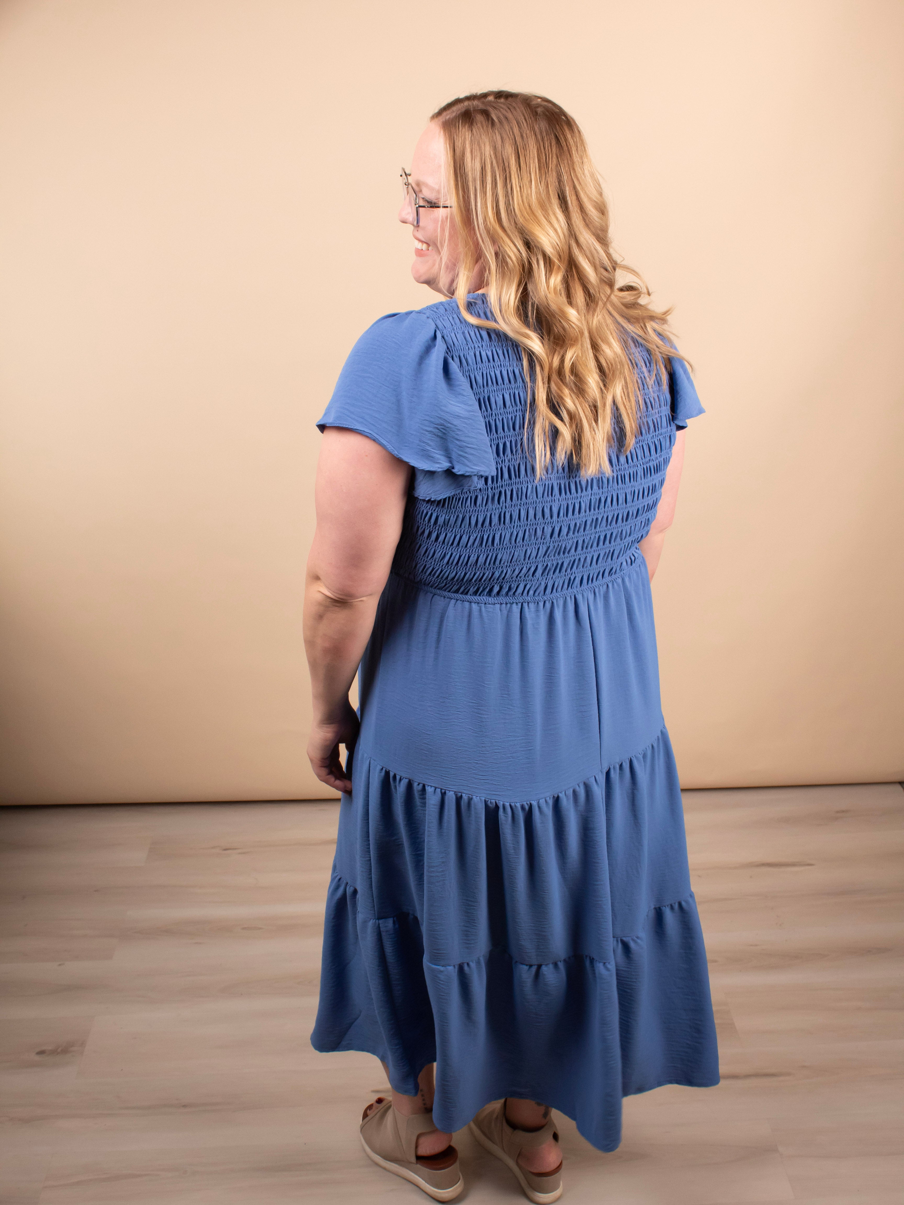 Feminine, flattering, and incredibly comfortable. The Lila Flutter Sleeve Midi Dress features a stretchy smocked bodice, flowy tiered skirt, and delicate flutter sleeves for an effortlessly pretty look.