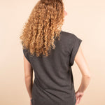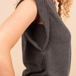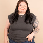 The Golden Hour Cap Sleeve Tank in Charcoal offers the same comfortable and stylish design you love, now in a versatile, classic neutral shade. Made from soft, ribbed, stretchy fabric, it features cap sleeves for extra coverage and a built-in modesty panel inside the armhole to eliminate gaps and bra strap exposure. This tank is perfect for layering or wearing on its own for a sleek, polished look.