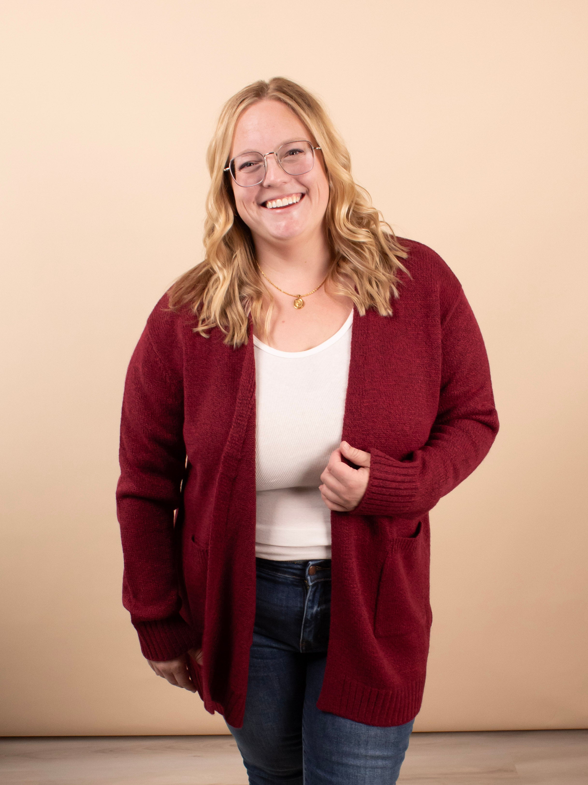 Cozy, marbled, and effortlessly chic — the Harper Open Knit Cardigan is the perfect layer for cooler days. This deep cabernet hue adds the prettiest pop of color while the thick, stretchy knit keeps things comfy without feeling bulky. An easy throw-on piece you’ll reach for again and again.
