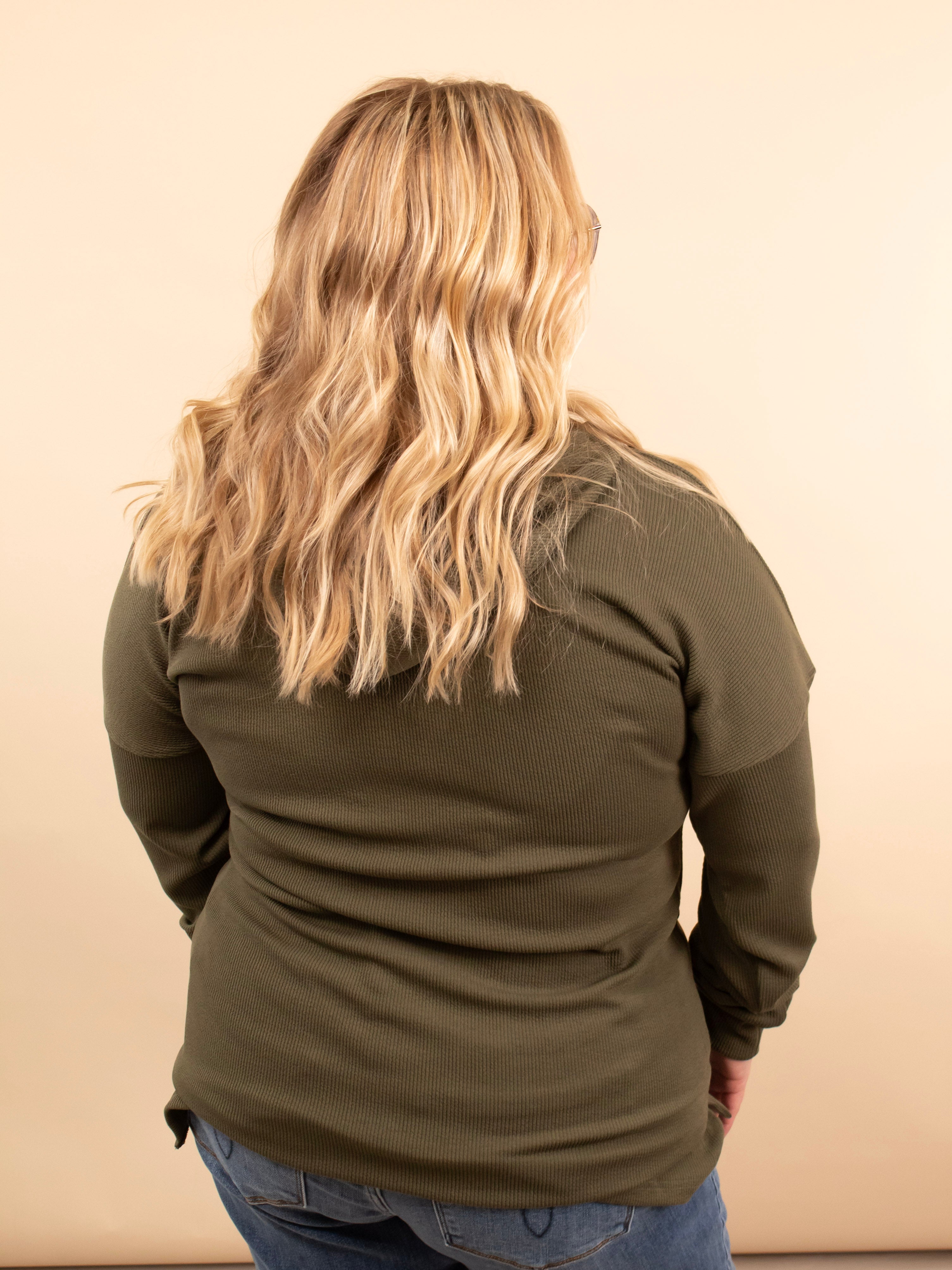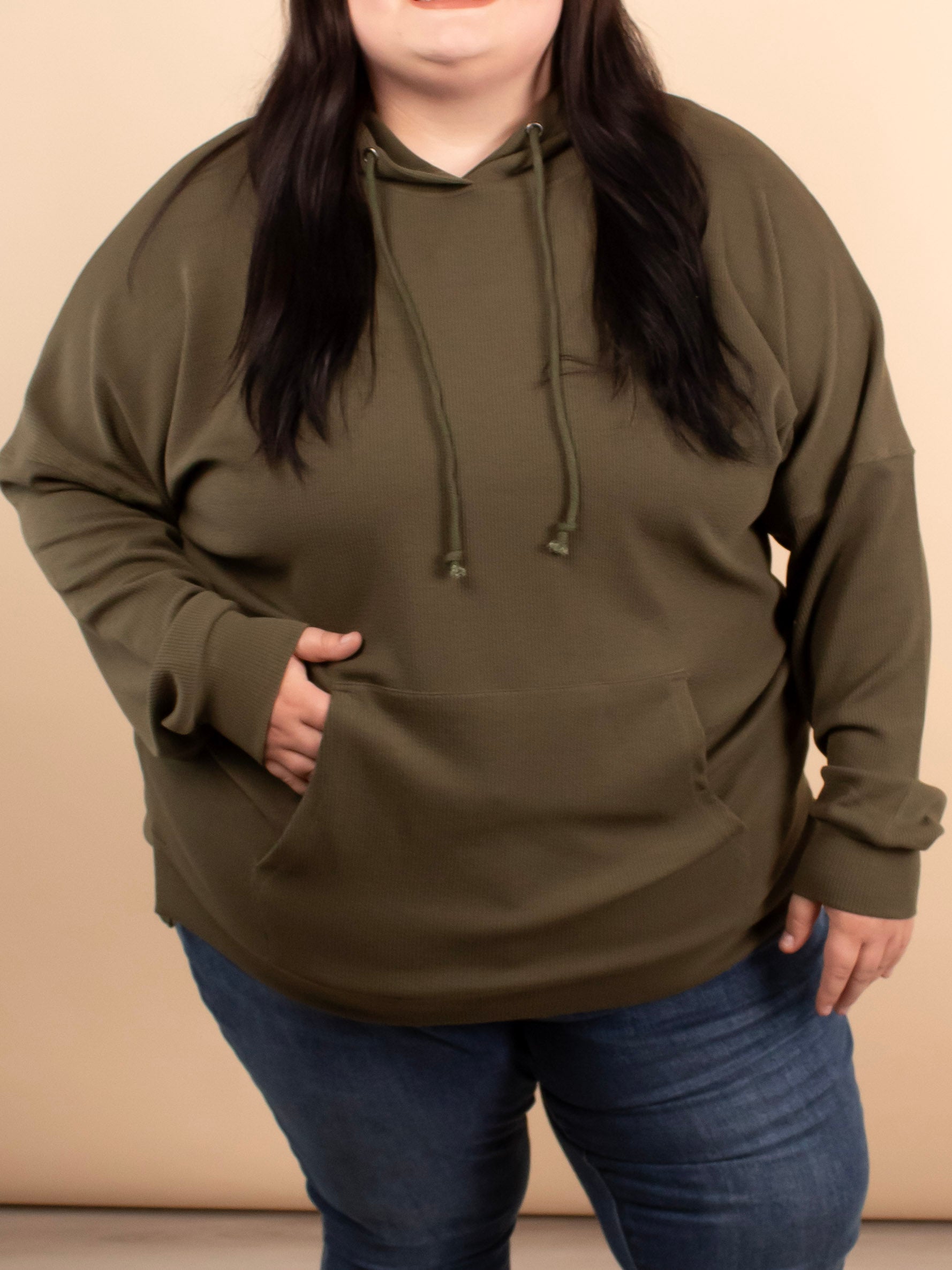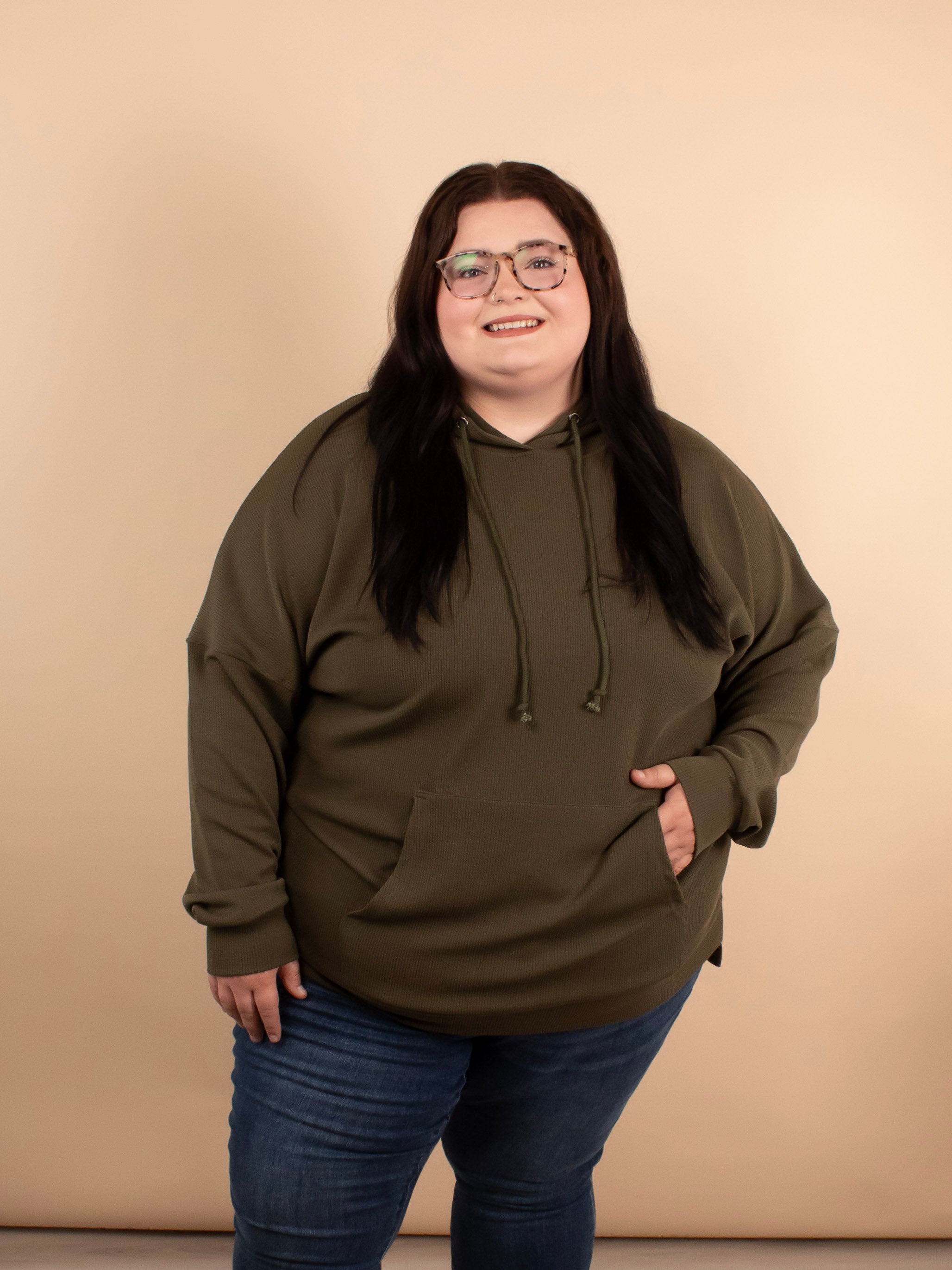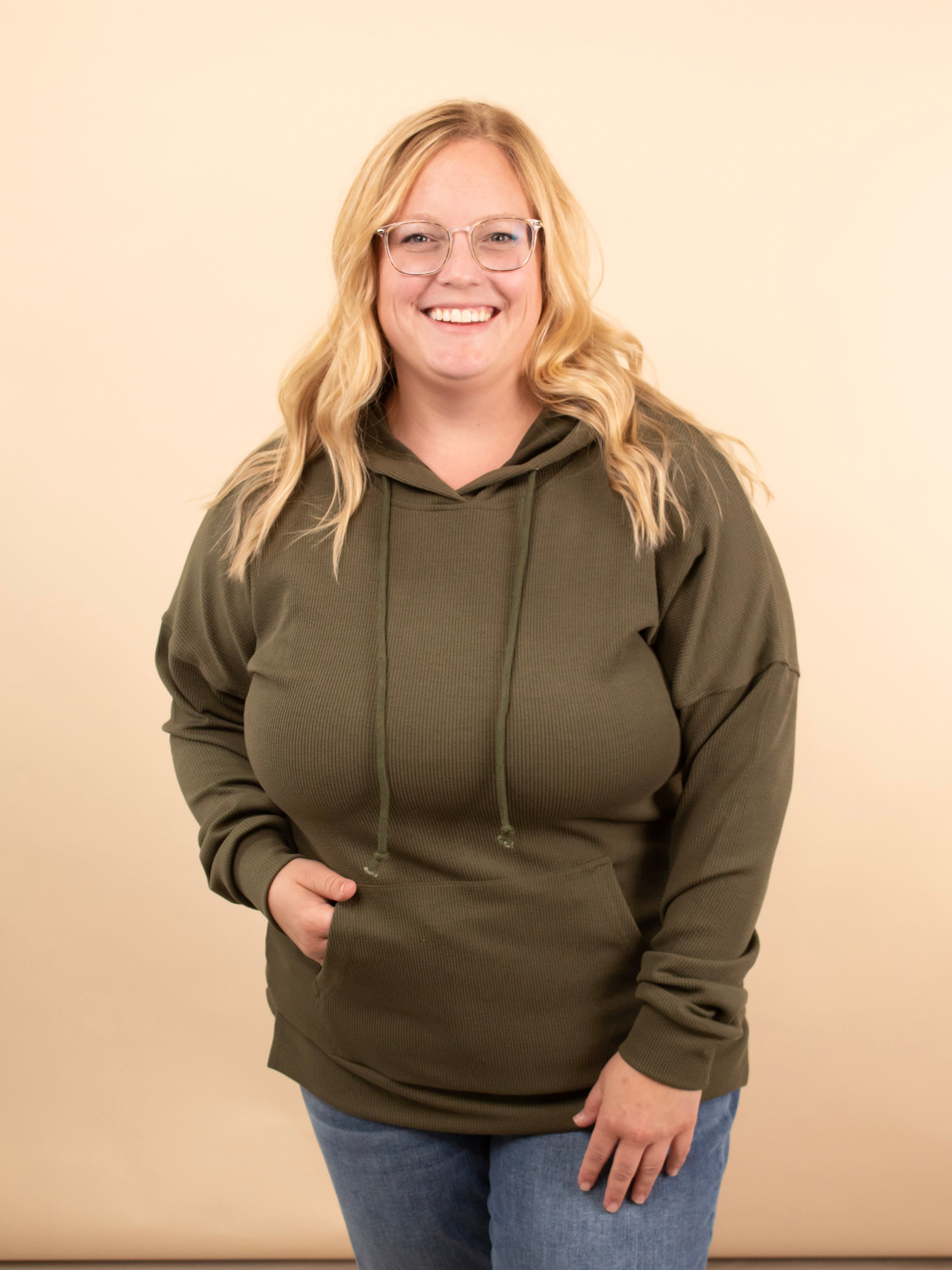 Meet your new layering go-to. The Kacey Ribbed Hoodie in Olive is lightweight, stretchy, and oh-so-versatile. With its subtle hi-low hem, longer back length for coverage, and kangaroo pocket, this hoodie is the perfect mix of comfort and casual style. Layer it under vests, shackets, flannels, or wear it solo for an easy everyday look.