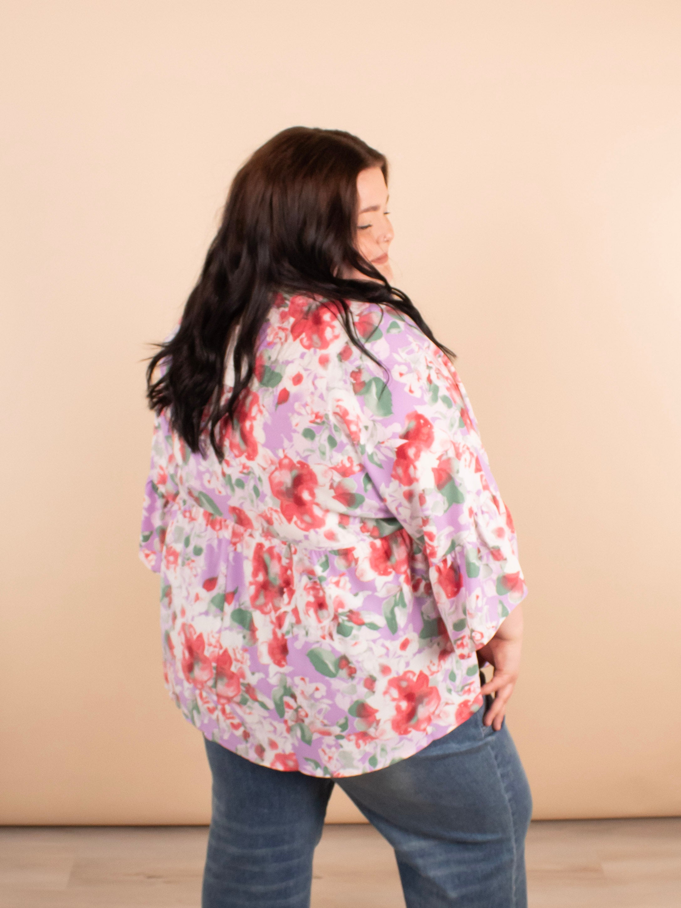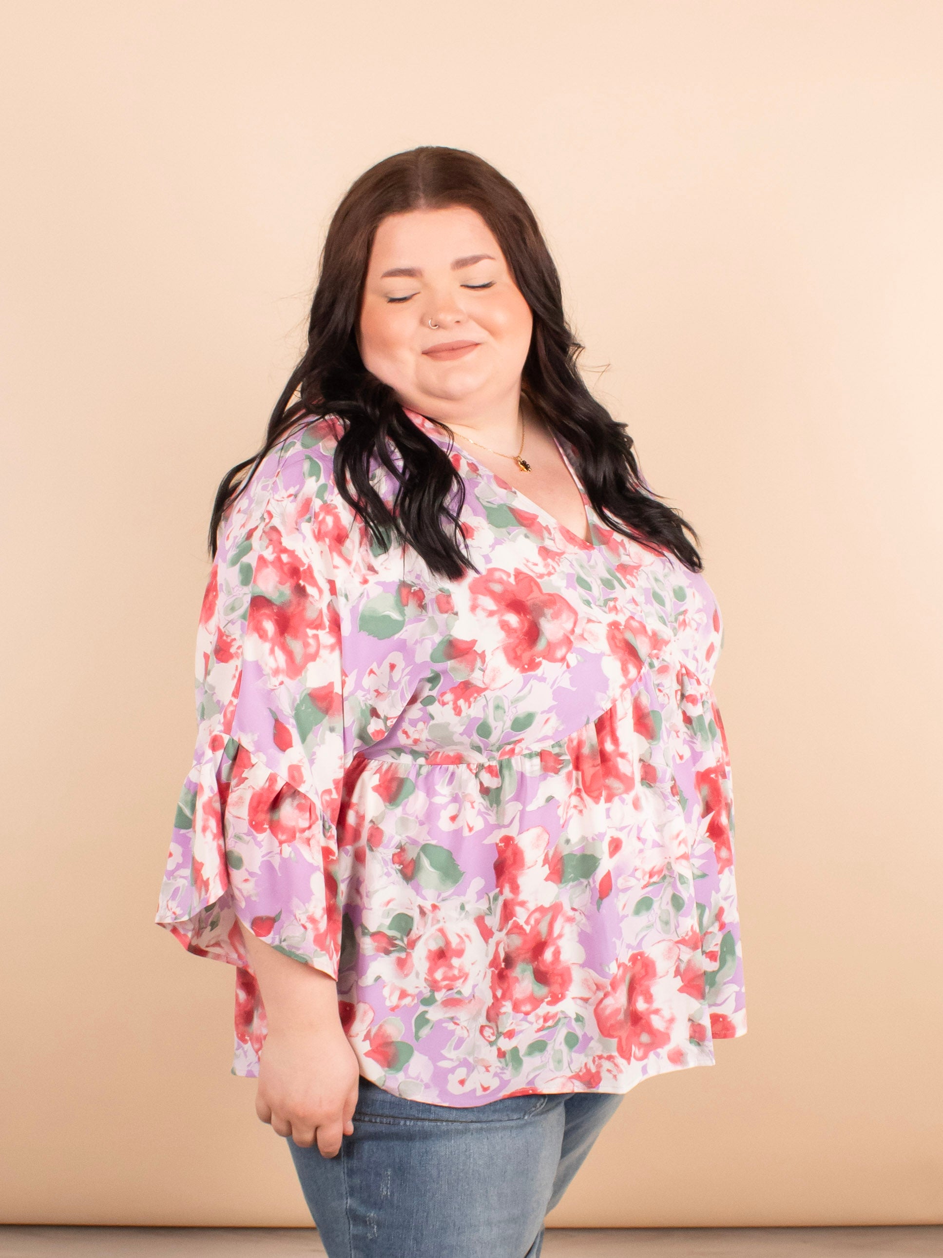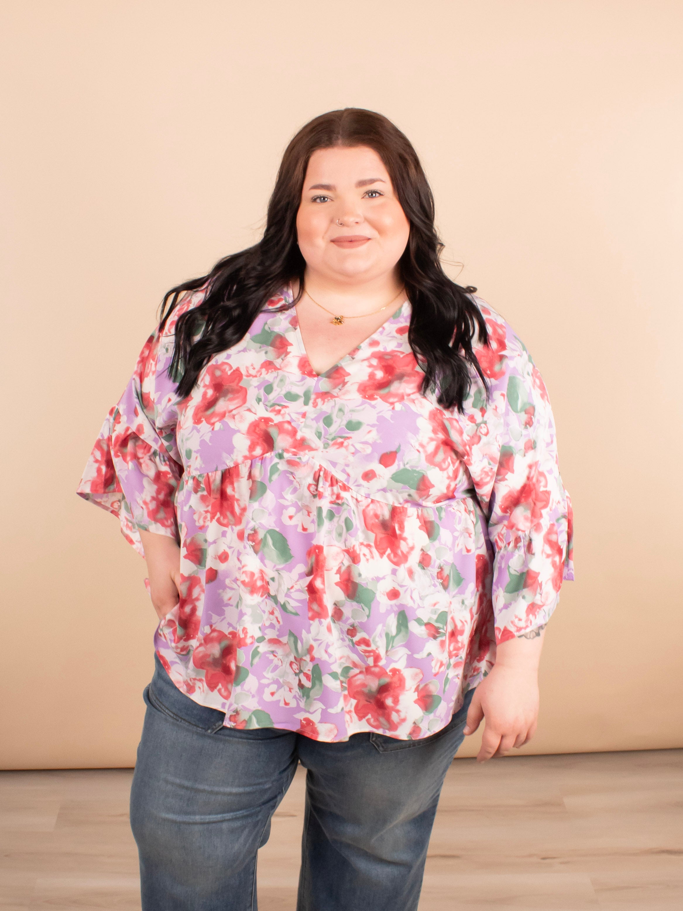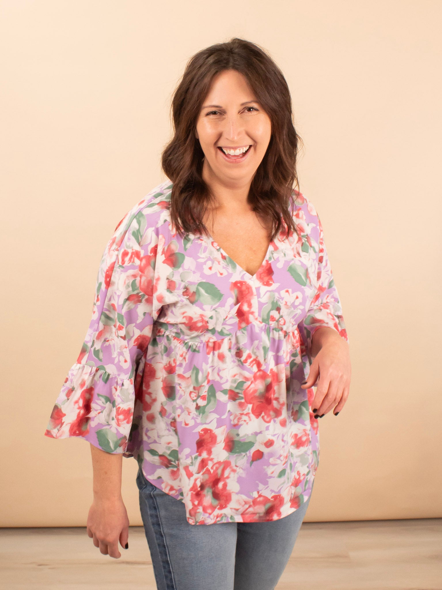 Elevate your wardrobe with the Lavender Luxe top! The 3/4 length sleeves add a touch of elegance, while the beautiful lavender color brings a sense of calm. Made from lightweight, airy fabric, it's perfect for any occasion - dress it up with white pants or keep it casual with denim.