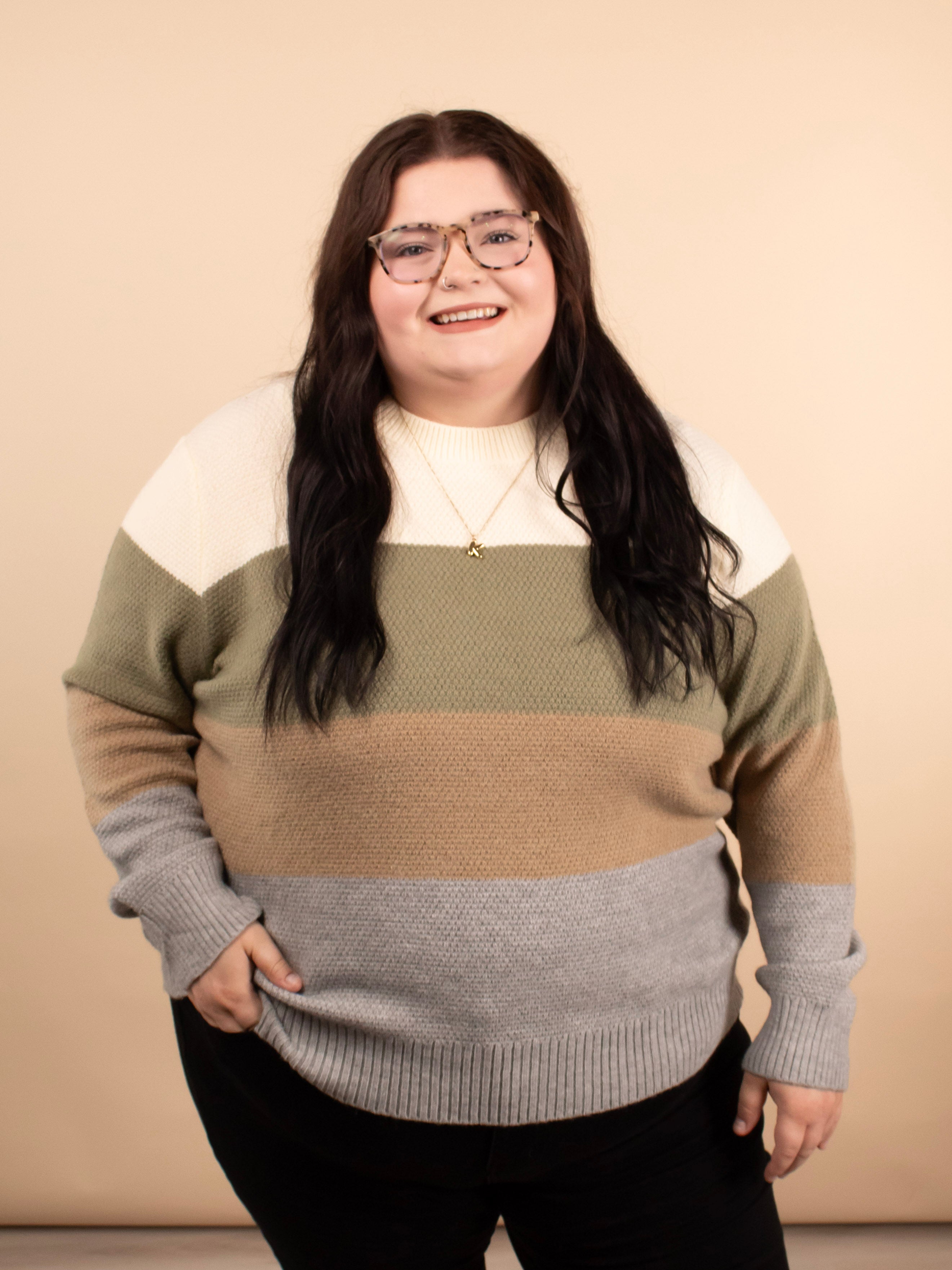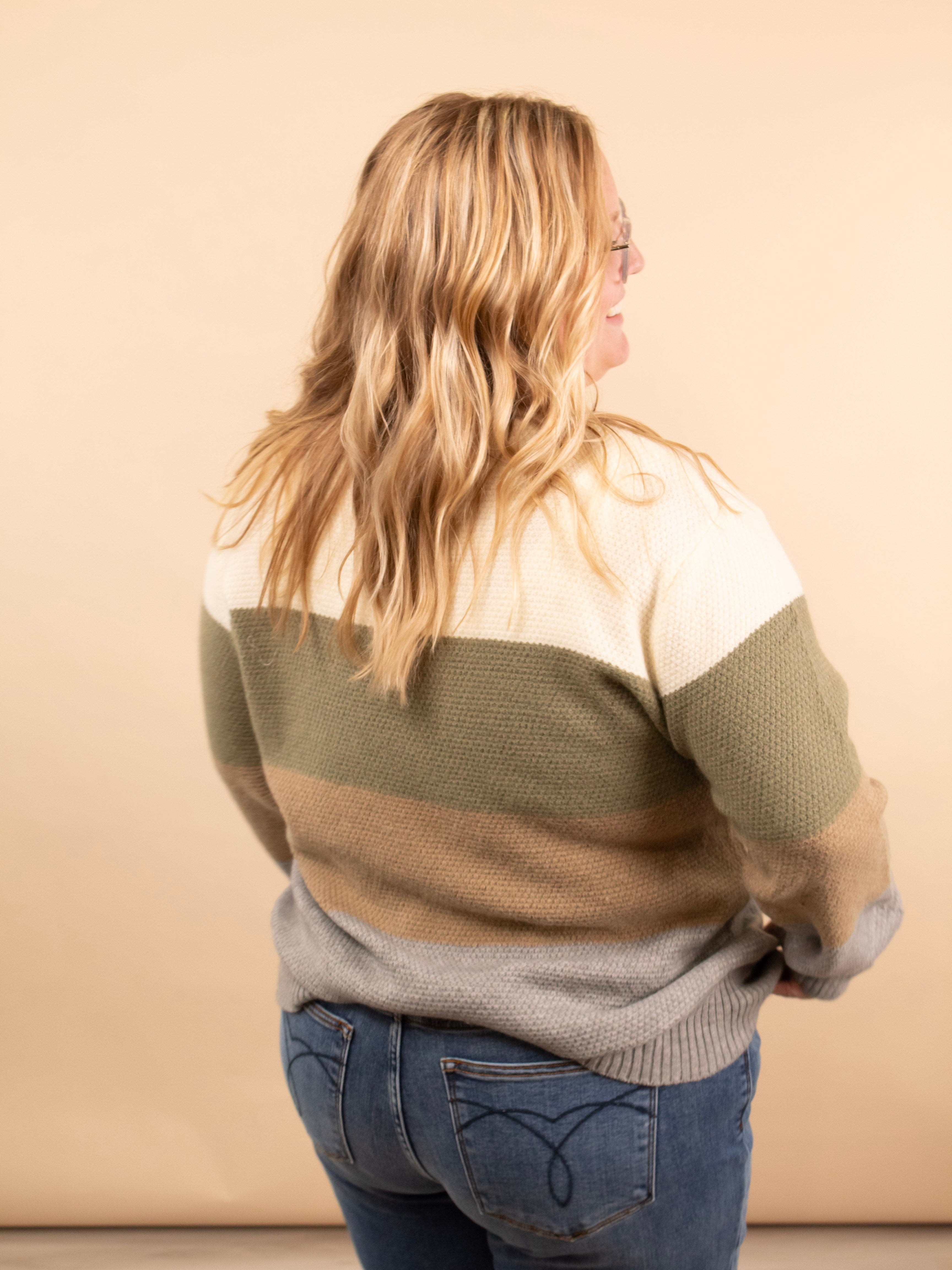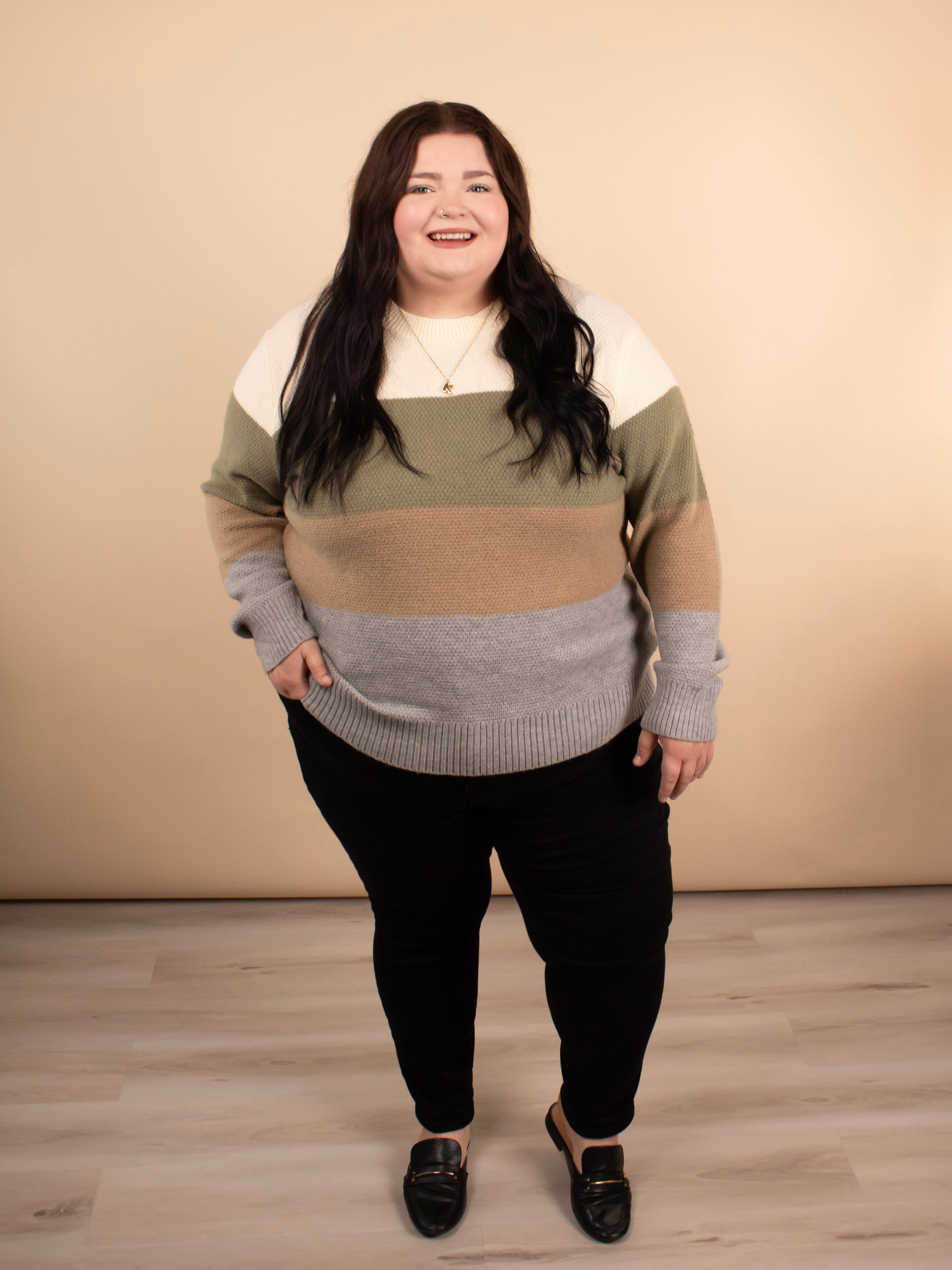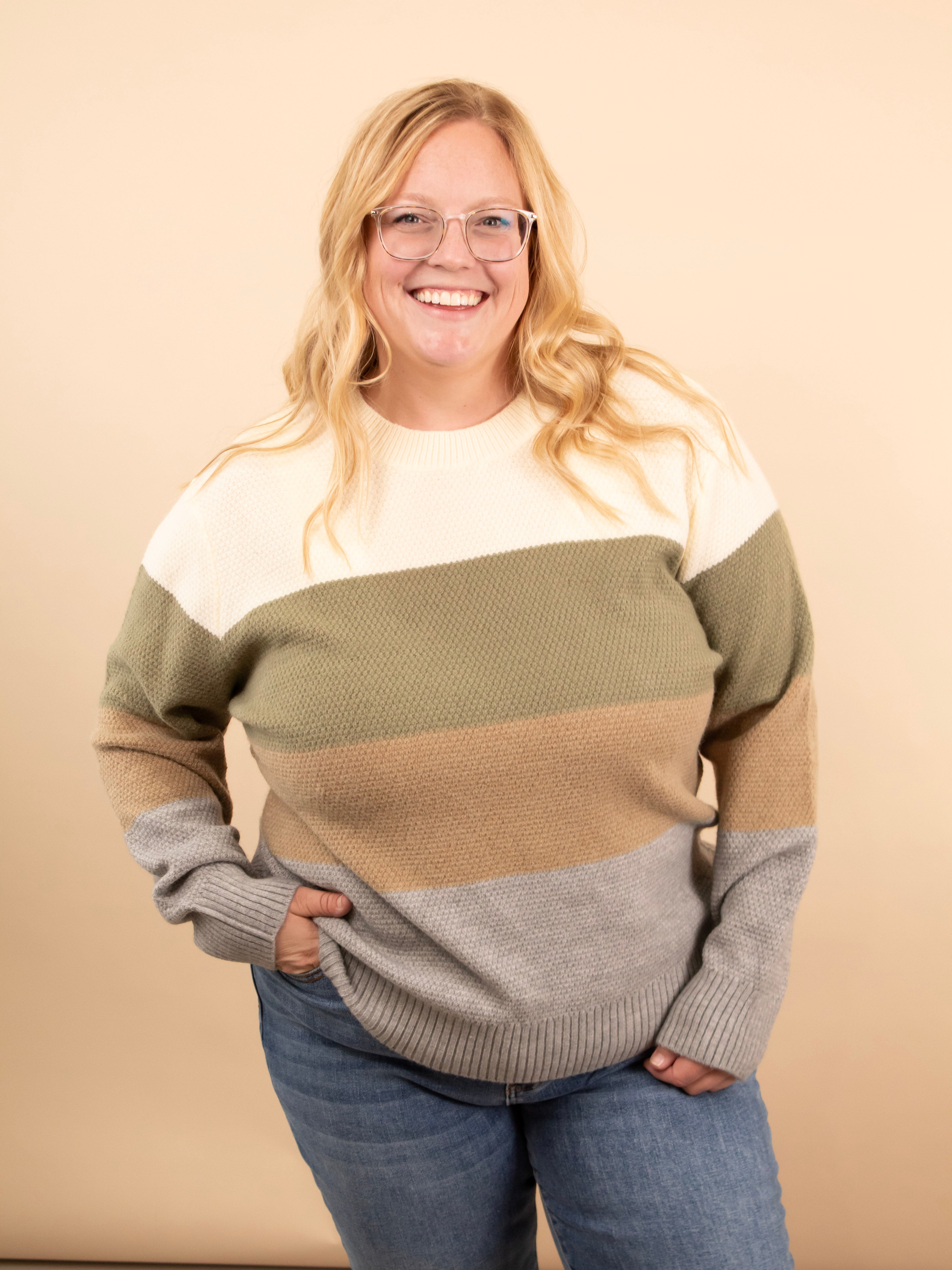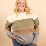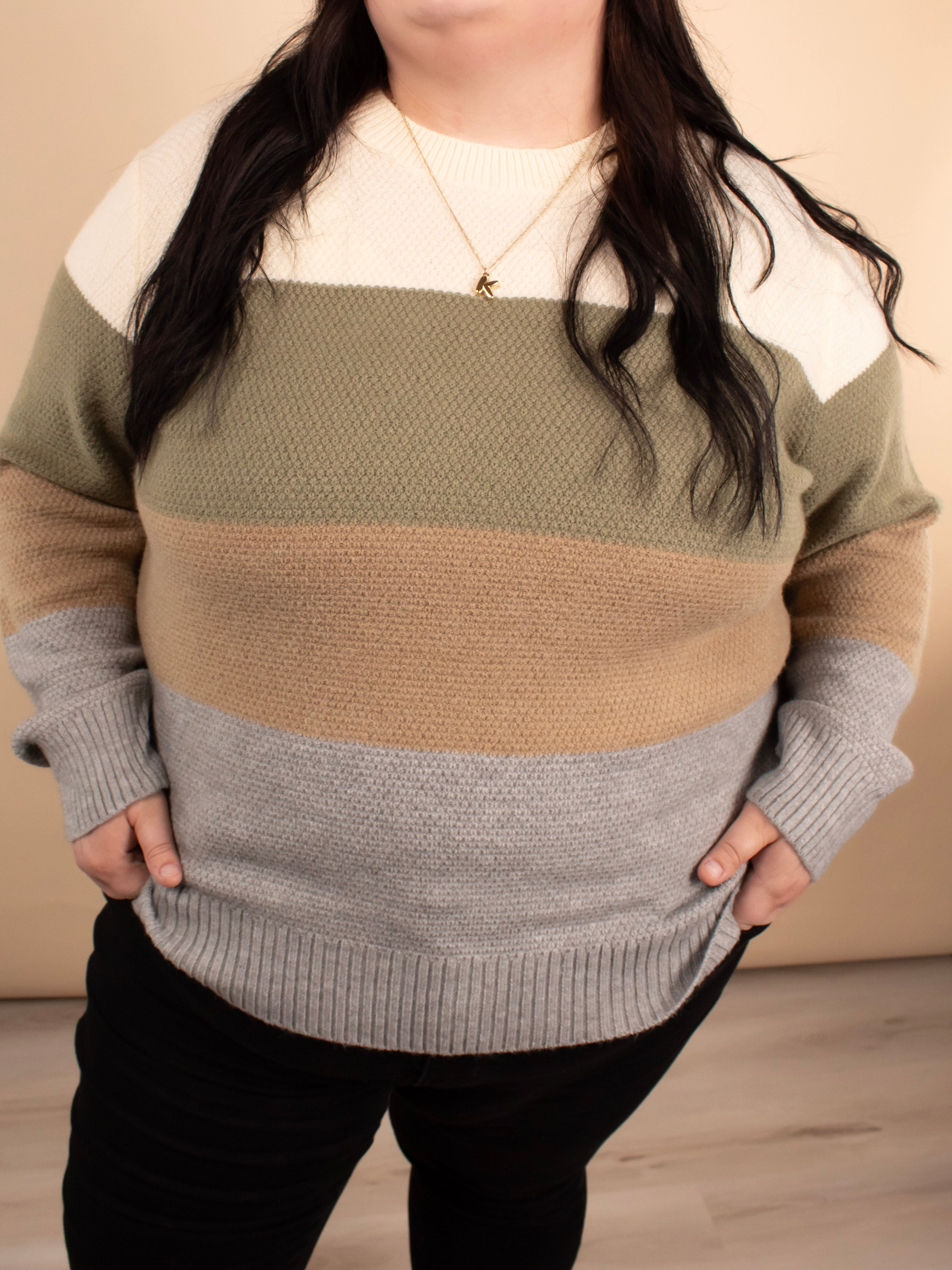 Cozy meets chic in the Layered Tones Colorblock Sweater. With its soft waffle-style knit, neutral tones, and relaxed-to-oversized fit, this sweater is perfect for layering up or wearing solo. Ultra stretchy and soft, it’s an effortless piece you’ll love for seasons to come.