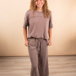 Mineral Wash Short Sleeve Top in Mocha (Set - Top Only)