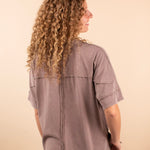 Stay on-trend with effortless comfort in the Mineral Wash Short Sleeve Top in Mocha. Featuring a soft fabric and a flattering oversized fit, this top pairs perfectly with the matching Mineral Wash Wide Leg Pant (sold separately) for a complete, coordinated look. For a more tailored fit, we recommend sizing down one size—otherwise, enjoy the relaxed vibe true to size.