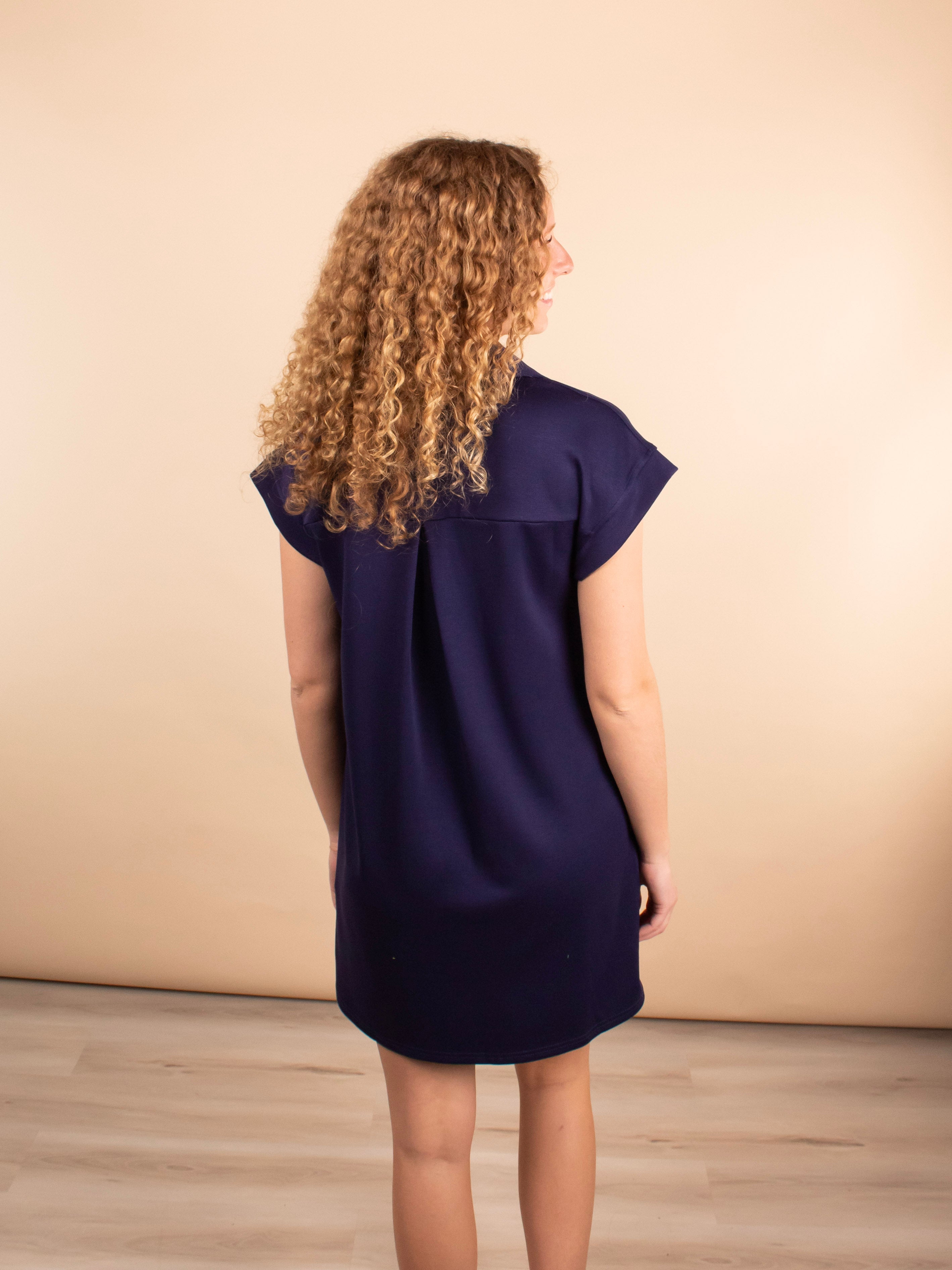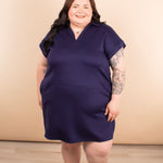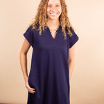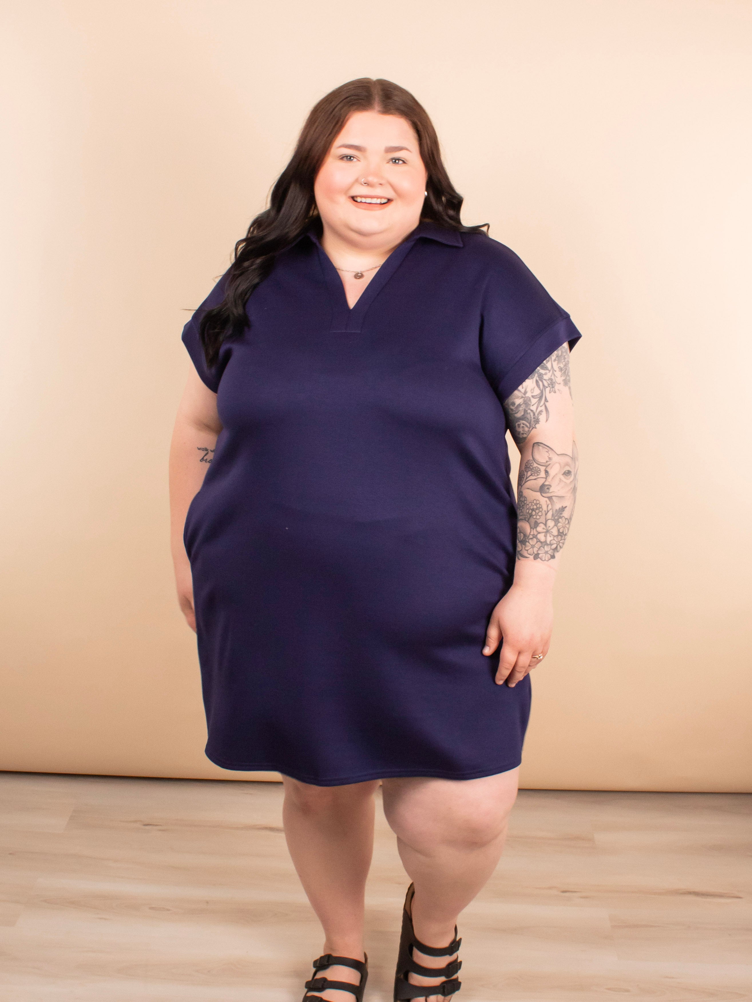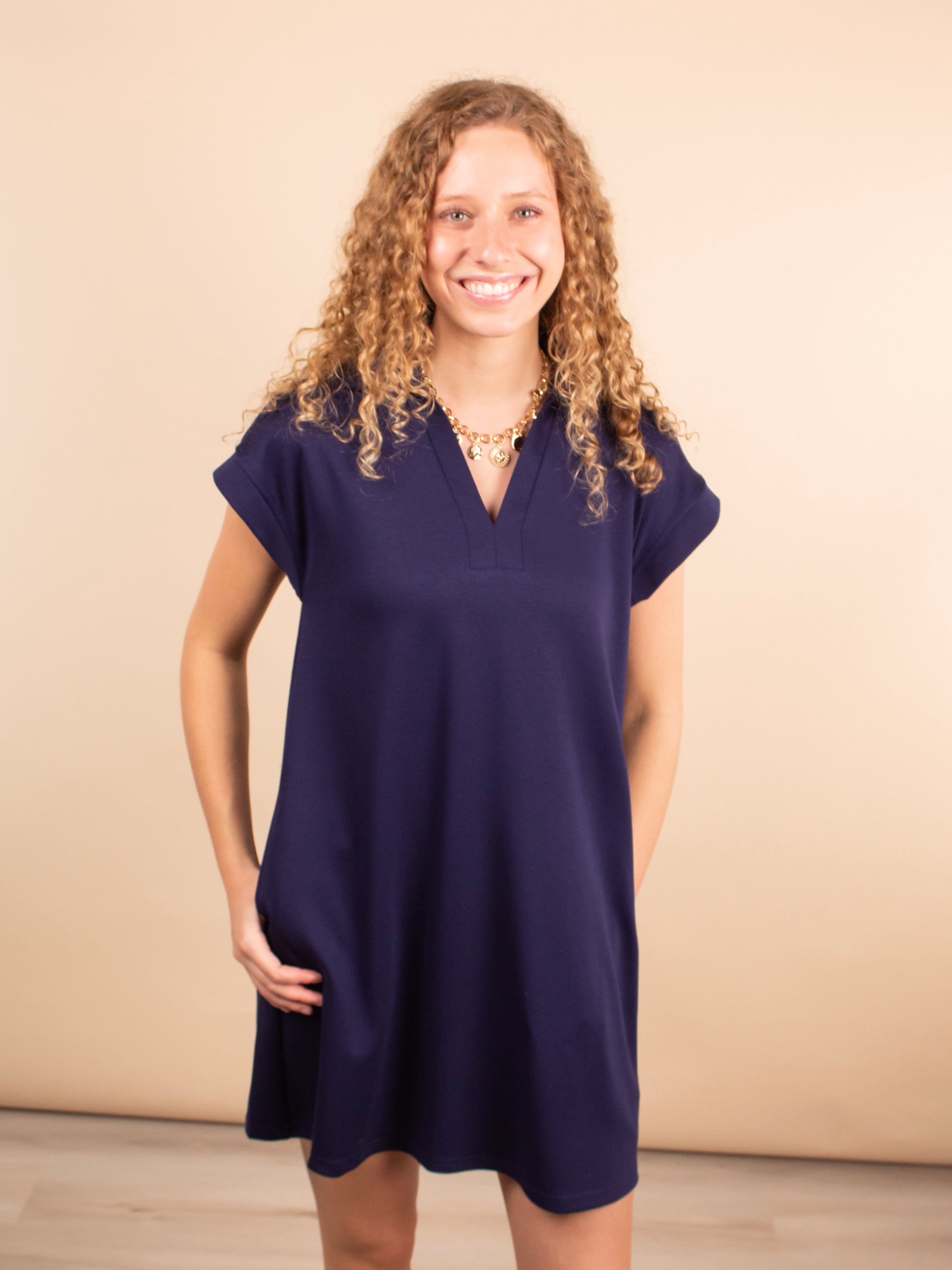 The Power Play Navy Collared Dress is the ultimate blend of sporty, chic, and versatile. Crafted from a thick yet breathable scuba-like material, this dress offers structure with just the right amount of stretch. The rich dark navy color keeps it timeless, while the collared neckline and above-the-knee length add a polished, put-together look. And yes—it has pockets! Whether you're heading to the lake, grabbing patio drinks, or dressing it up for a wedding or shower, this dress is ready for it all.