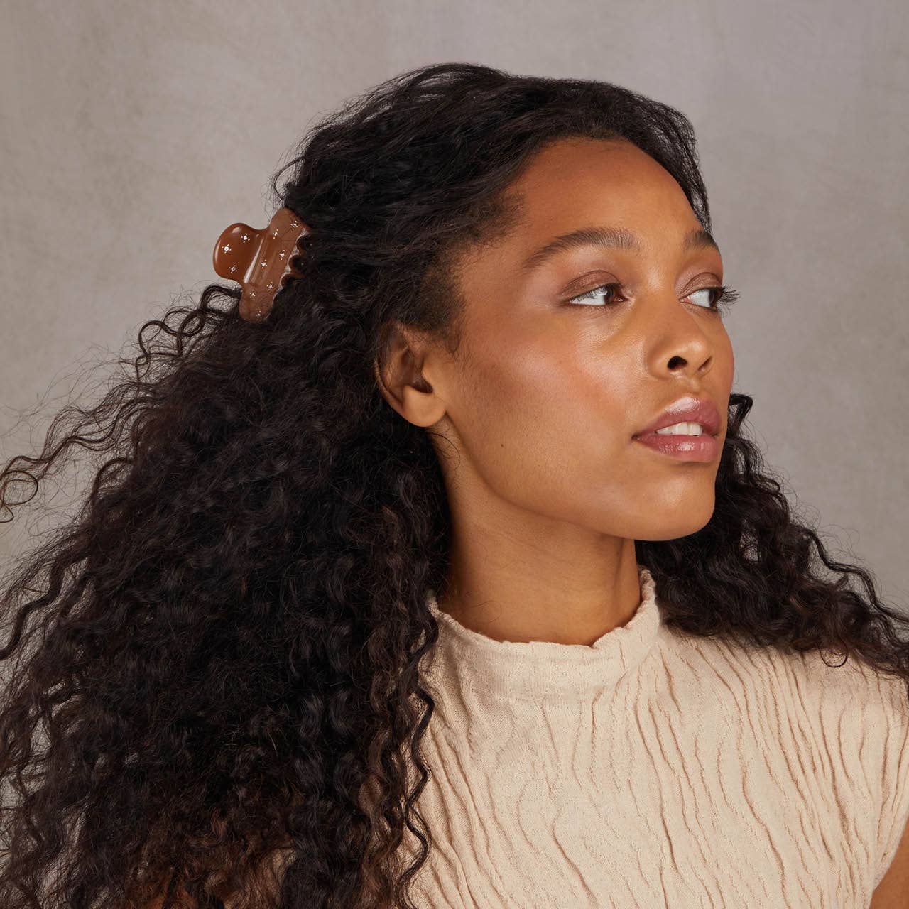 Recycled Plastic Rhinestone Medium Puffy Claw Clip 1pc-Camel