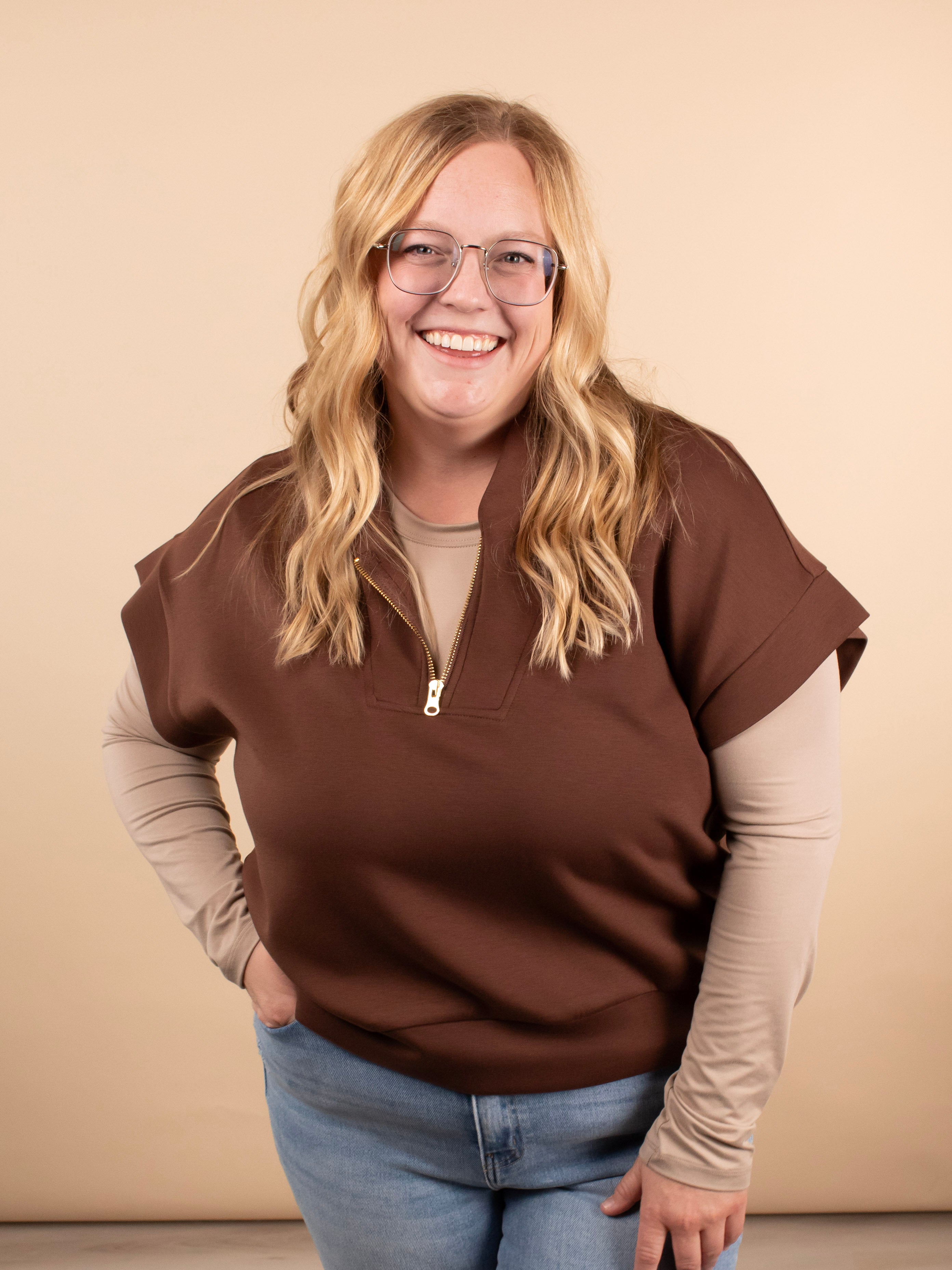 Ruthie Scuba Half Zip Vest in Cocoa