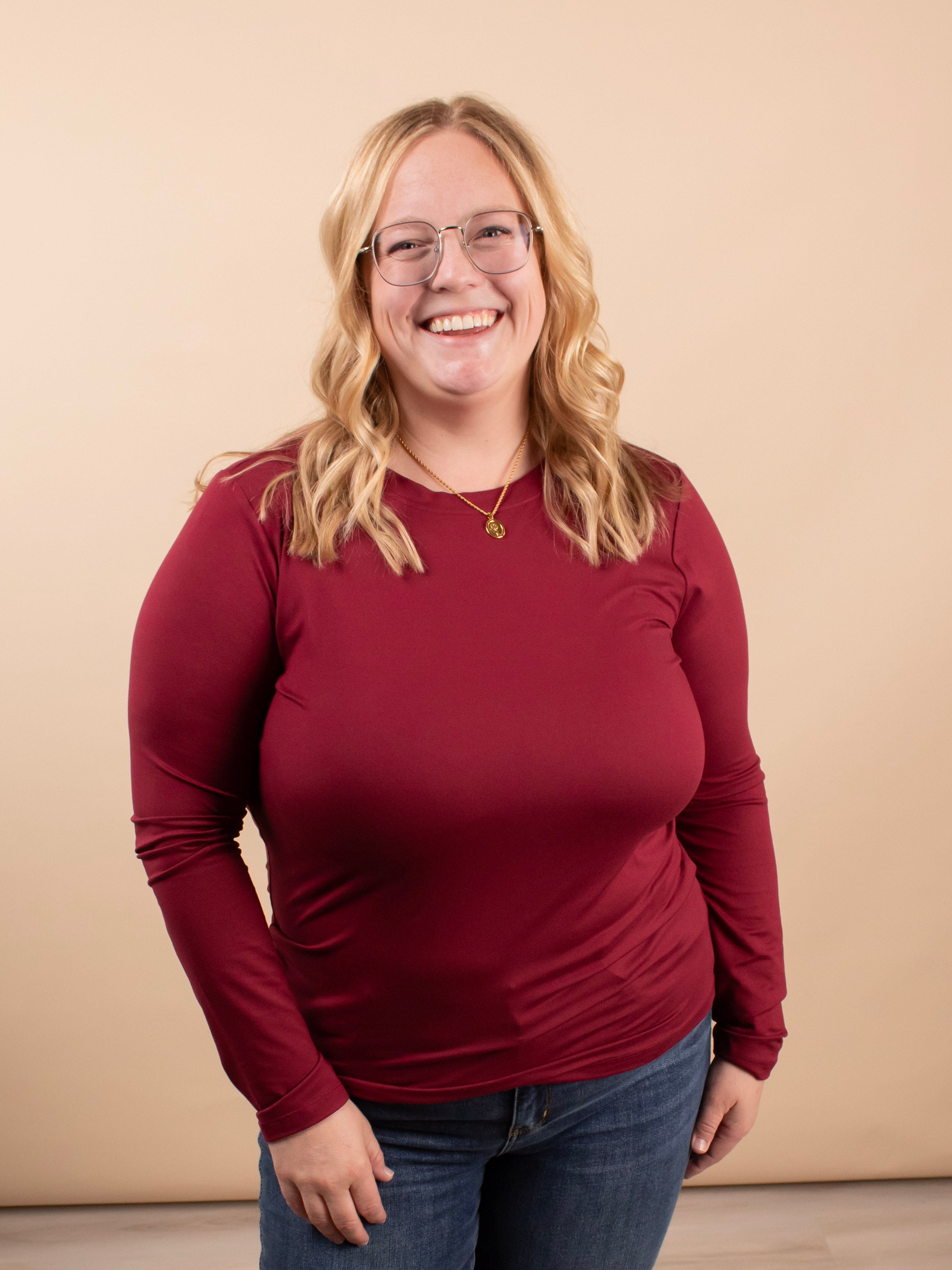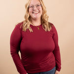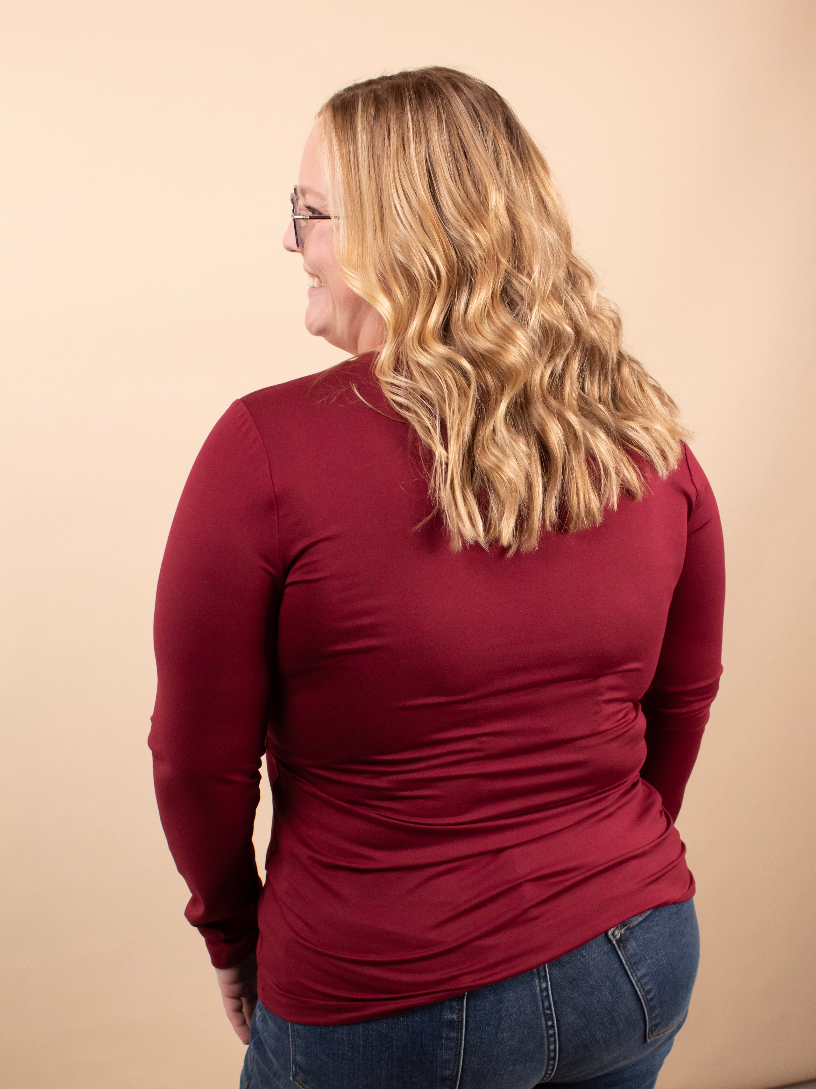 A true wardrobe essential — now in a gorgeous cranberry red. The Second Skin Soft Long Sleeve Top is buttery soft, ultra-stretchy, and designed to hug your shape without feeling restrictive. Wear it on its own for a sleek, fitted look or layer it under shackets, vests, and cardigans all season long. This is one of those pieces you’ll want in every color.