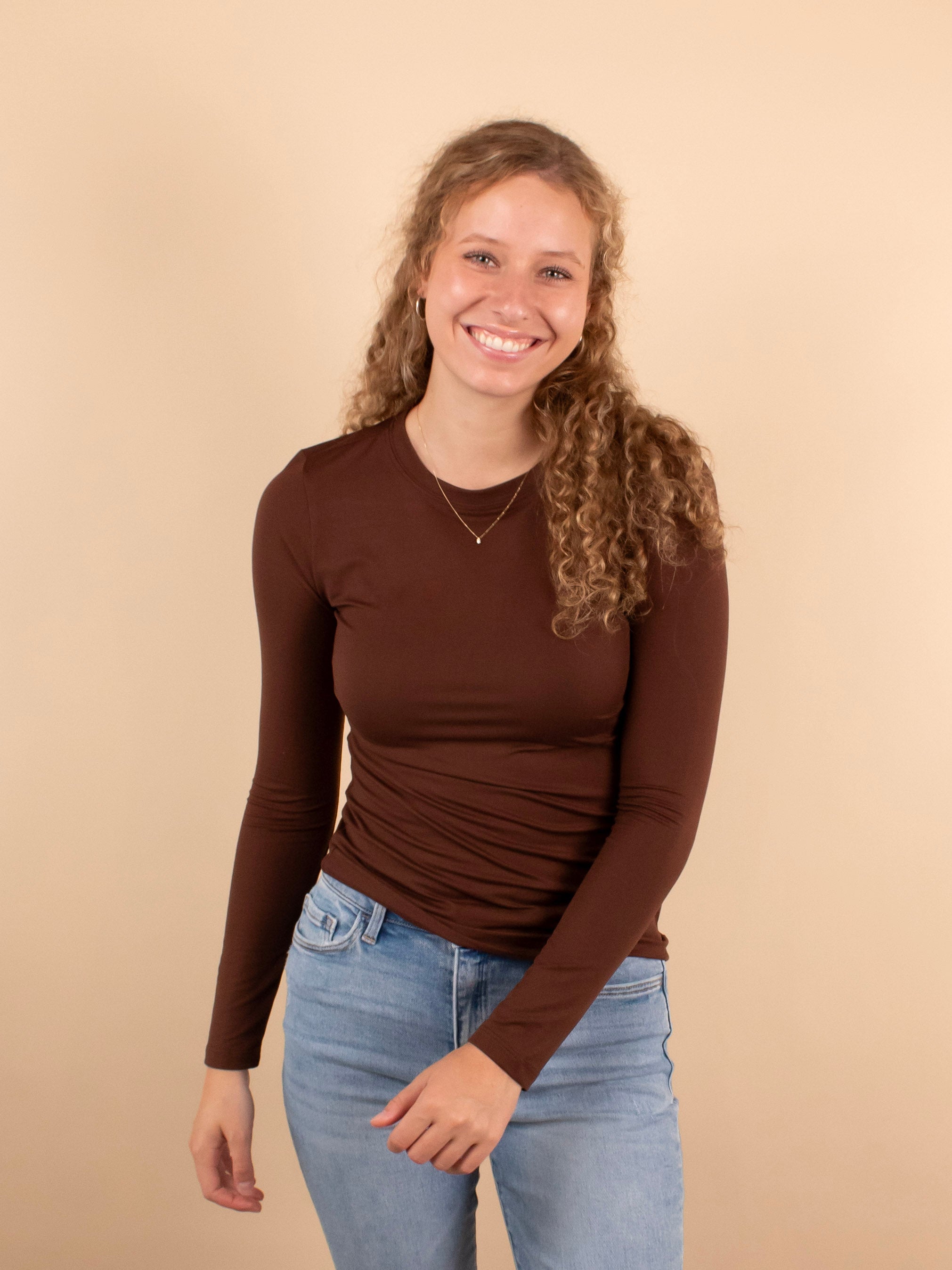 Second Skin Soft Long Sleeve Top in Mahogany