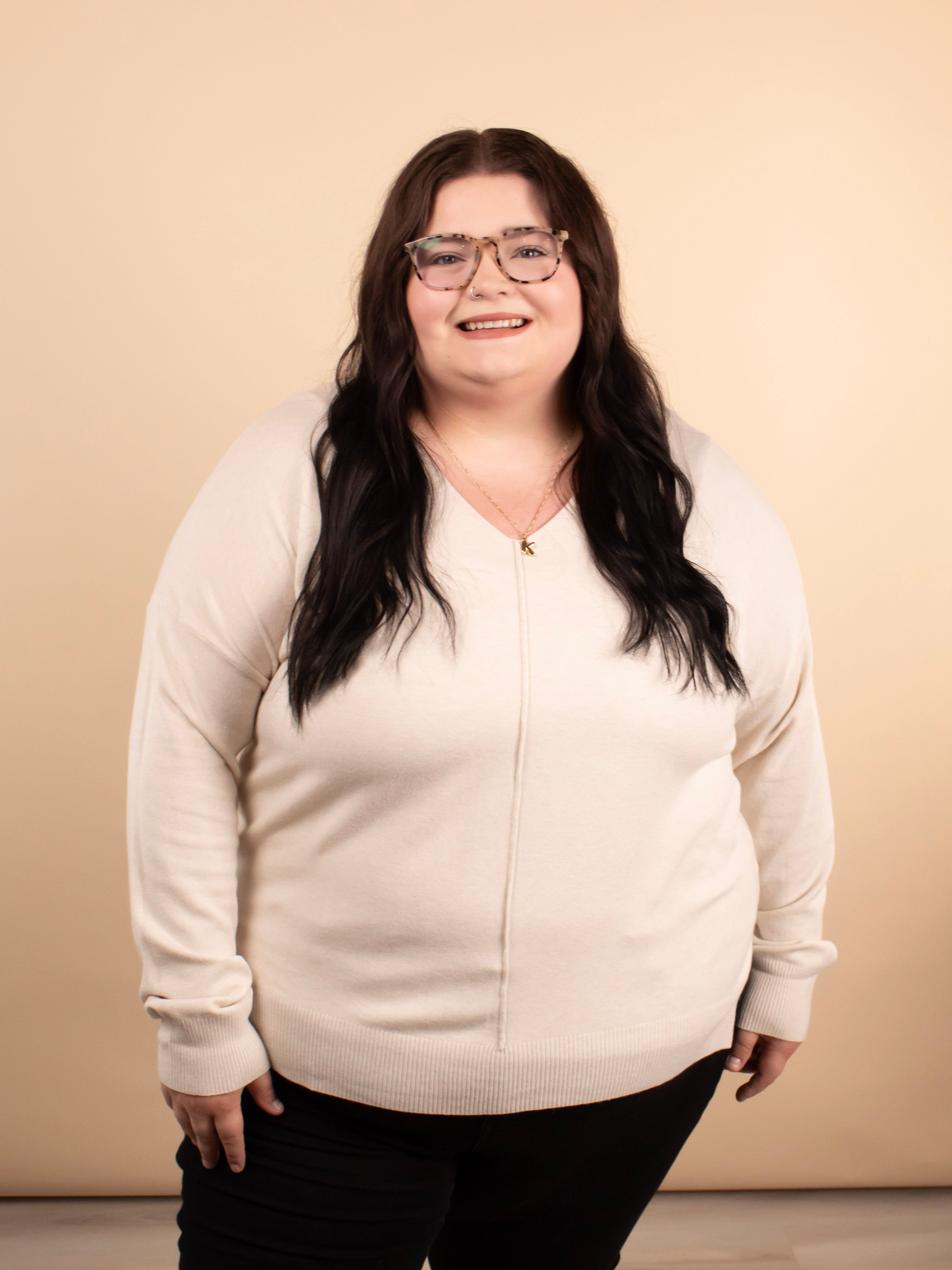 The Silky Soft Front Seam Sweater in Beige is the definition of elevated ease. With its luxuriously soft fabric, timeless v-neckline, and subtle front seam detail, this sweater is polished enough for the office yet cozy enough for lounging at home. The neutral beige tone makes it an endlessly versatile piece — easy to style with denim, trousers, or skirts for effortless outfits all season long. A timeless wardrobe staple you’ll be reaching for again and again.