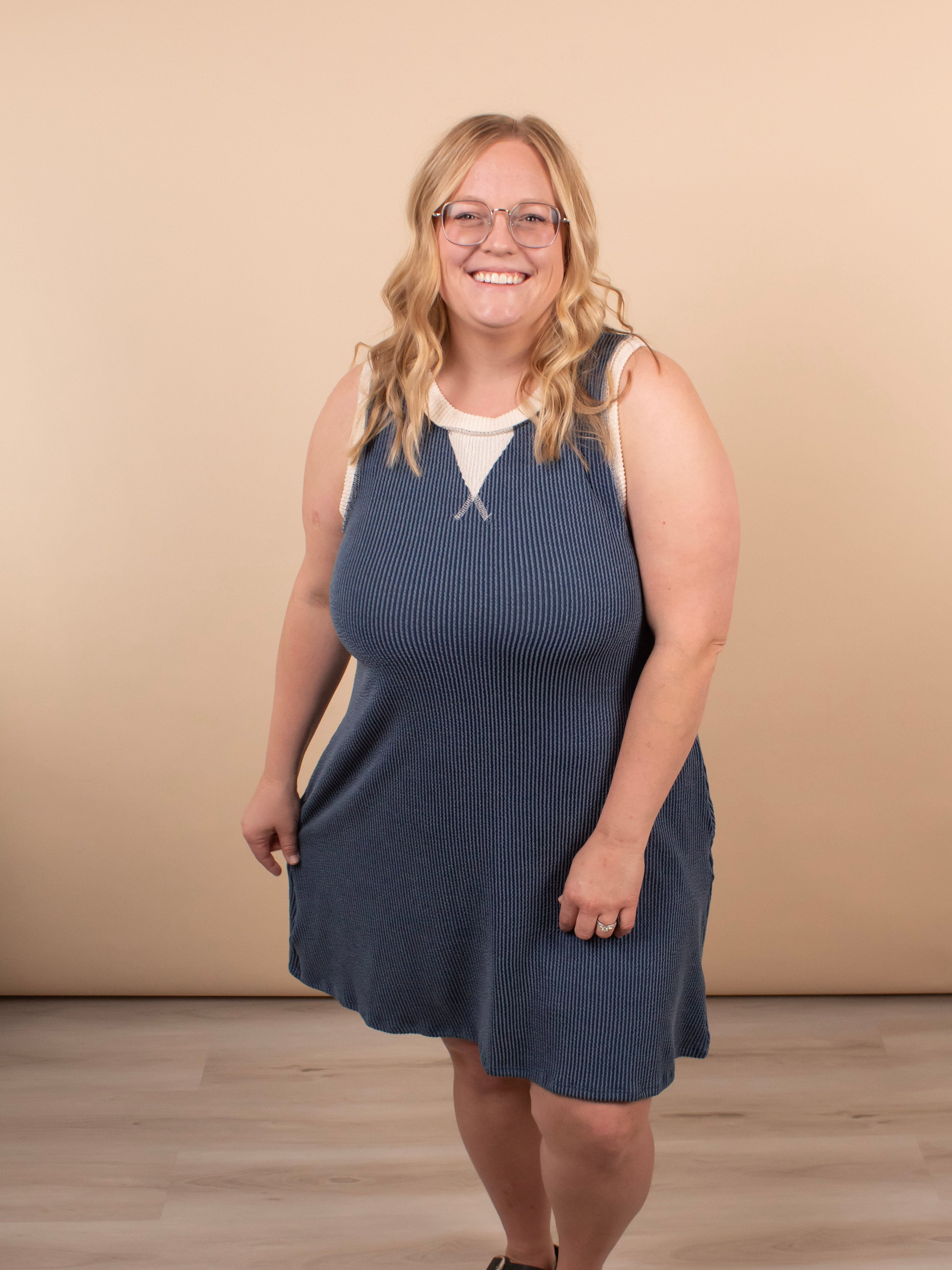 This is the kind of dress you’ll reach for on repeat all summer long. The ribbed texture gives it a flattering, easy shape, while the contrast trim adds just enough detail to make it feel special without trying too hard.