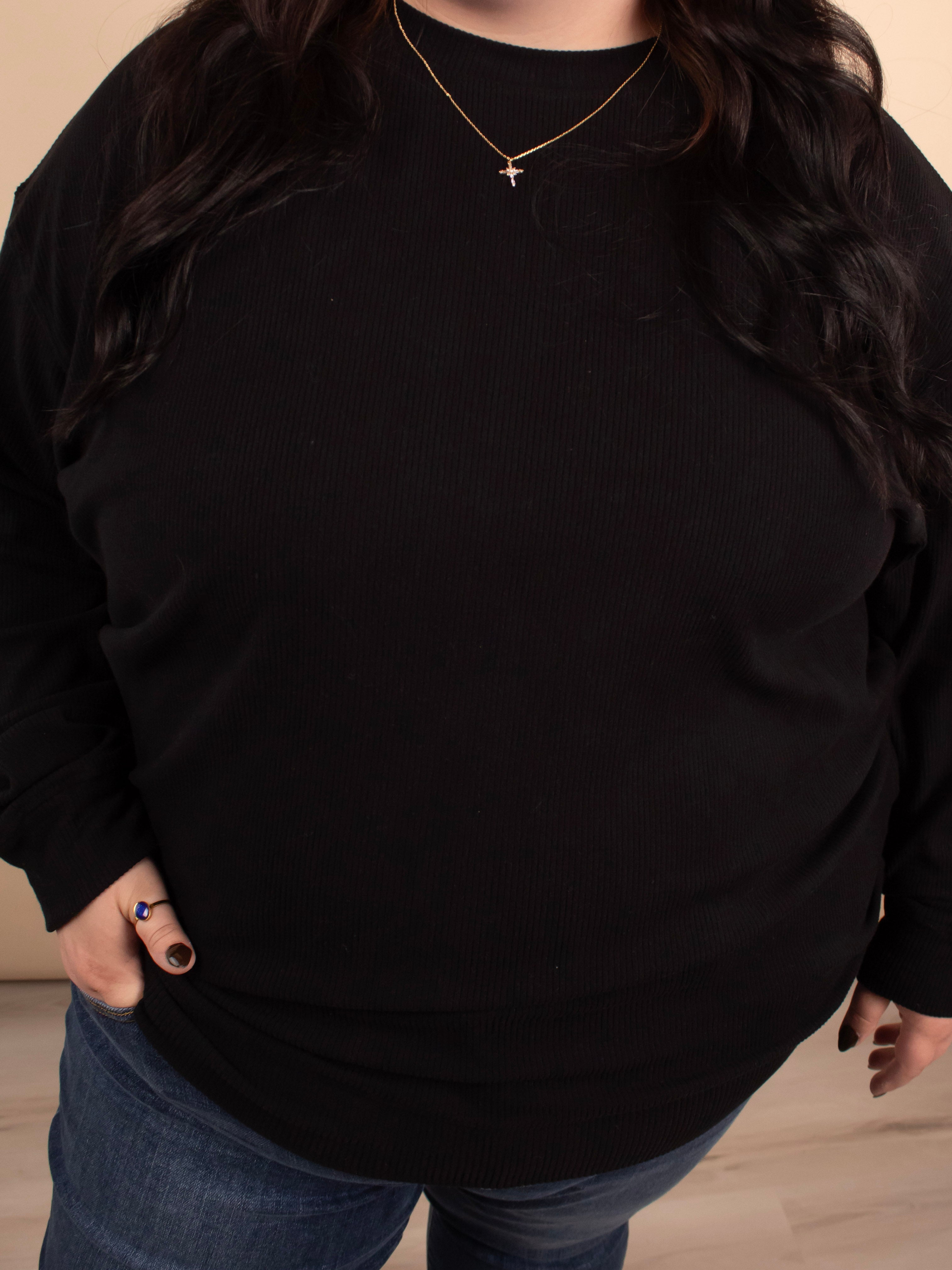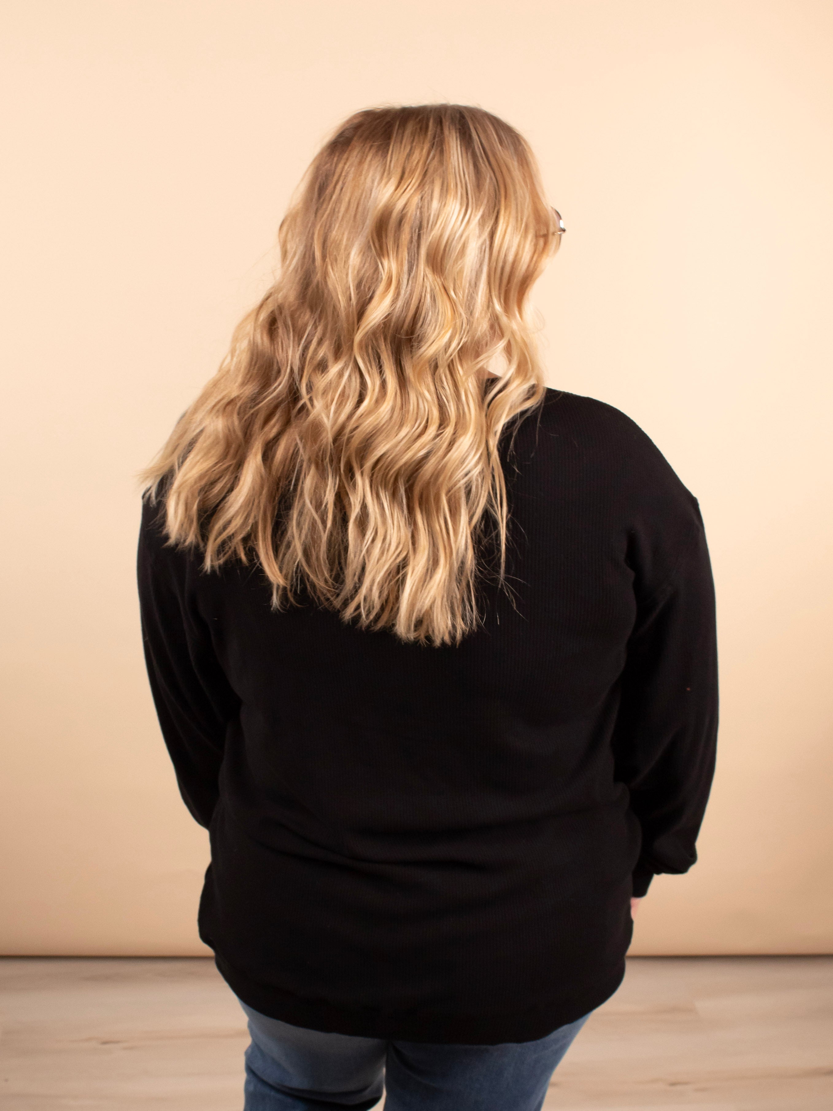 The Tatum Ribbed Pullover in Black is the perfect blend of comfort and versatility. Made from super soft, ultra-stretchy ribbed fabric, this lightweight crewneck offers that cozy, lived-in feel without being too heavy. Perfect for layering with your favorite vest or shacket, it’s an effortless staple you’ll reach for again and again.