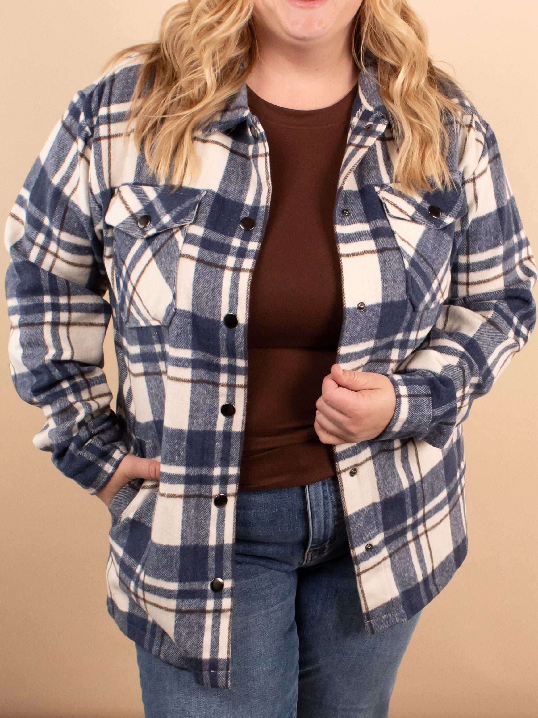 The classic shacket you know and love—back and better than ever! The Element Plaid Shacket in Blue Hues features the most adorable color combo, soft yet sturdy fabric, and a relaxed fit that layers effortlessly. With full torso and hip coverage, pockets, and timeless plaid, this piece is a true season staple.