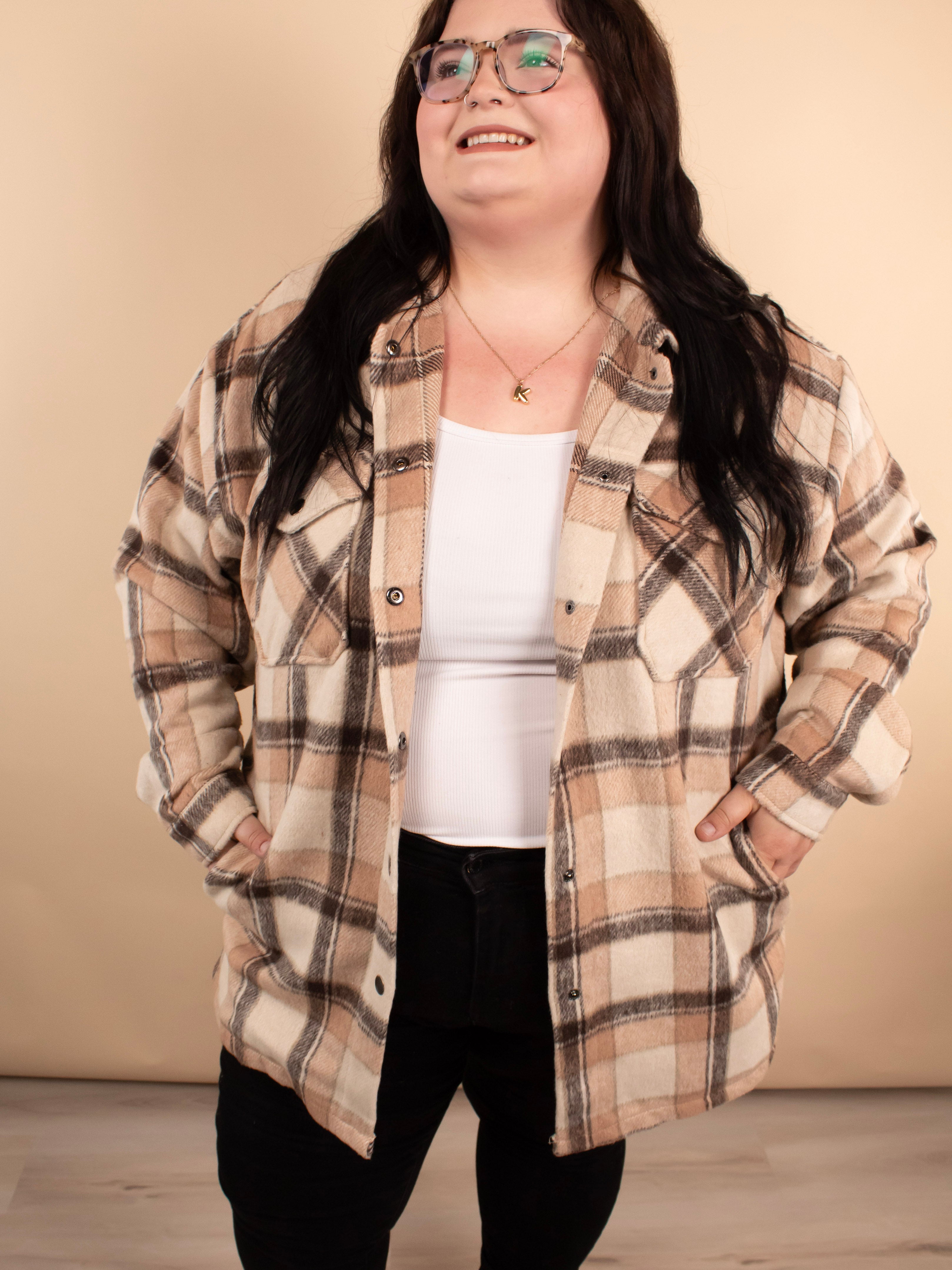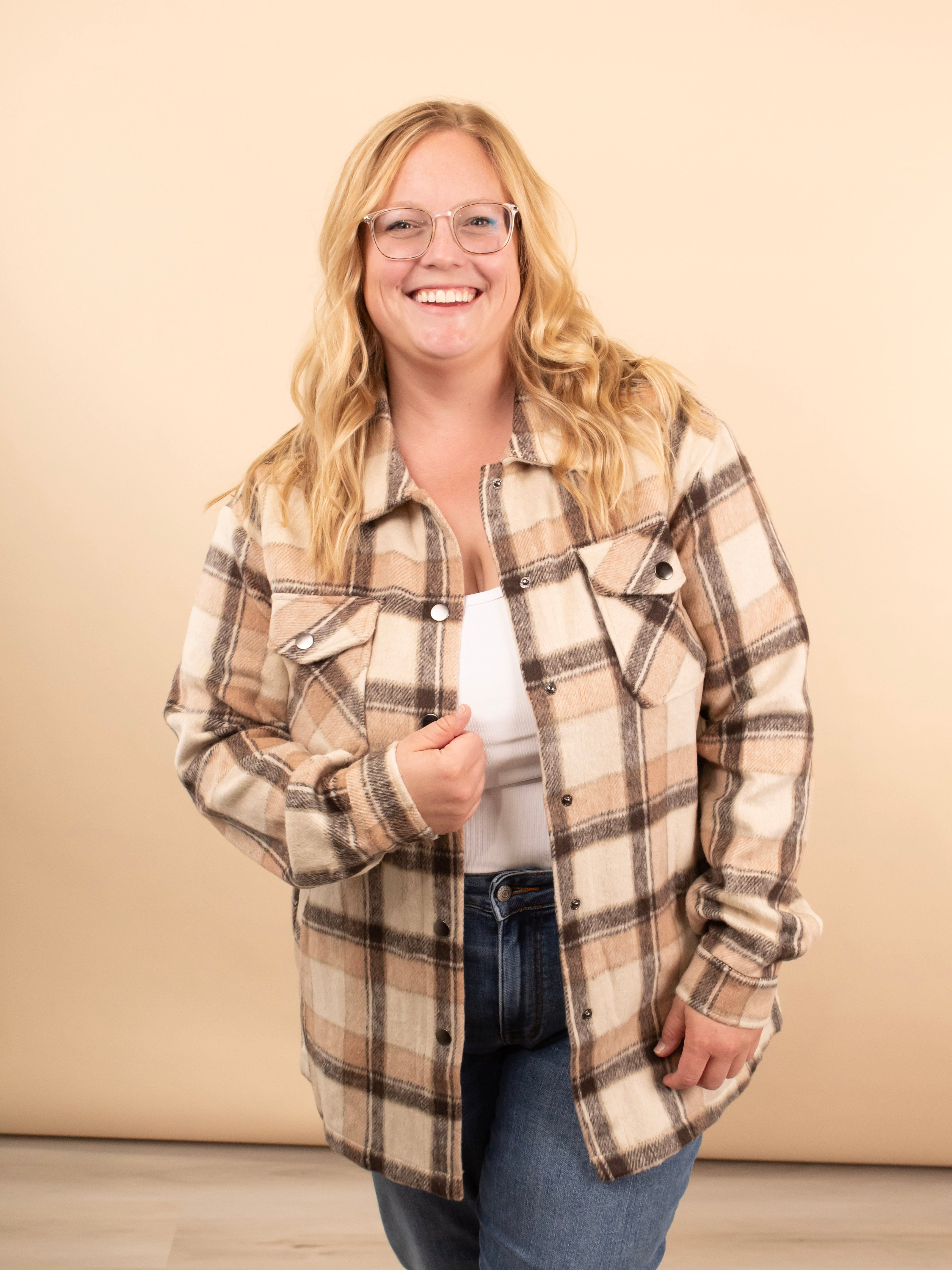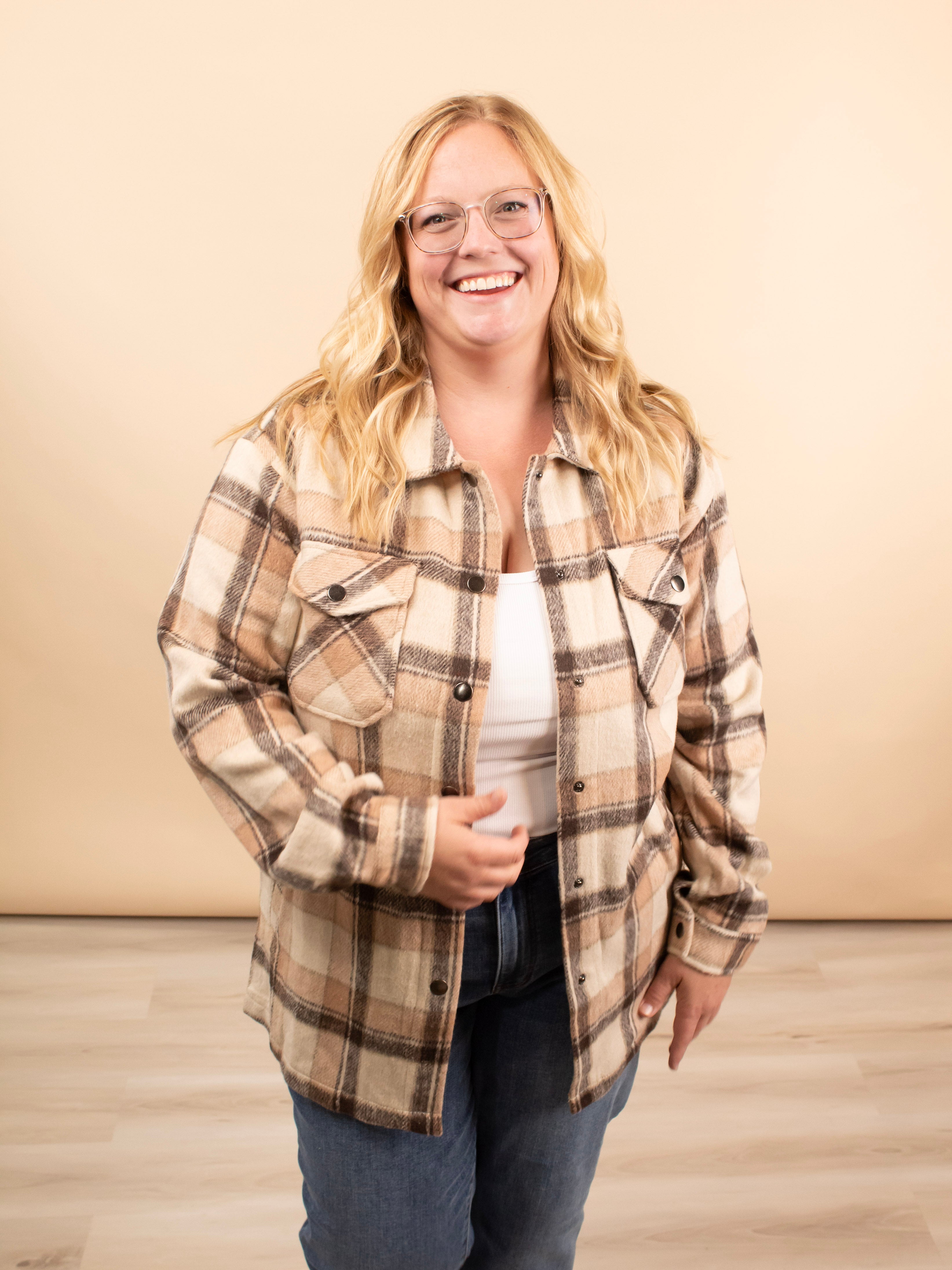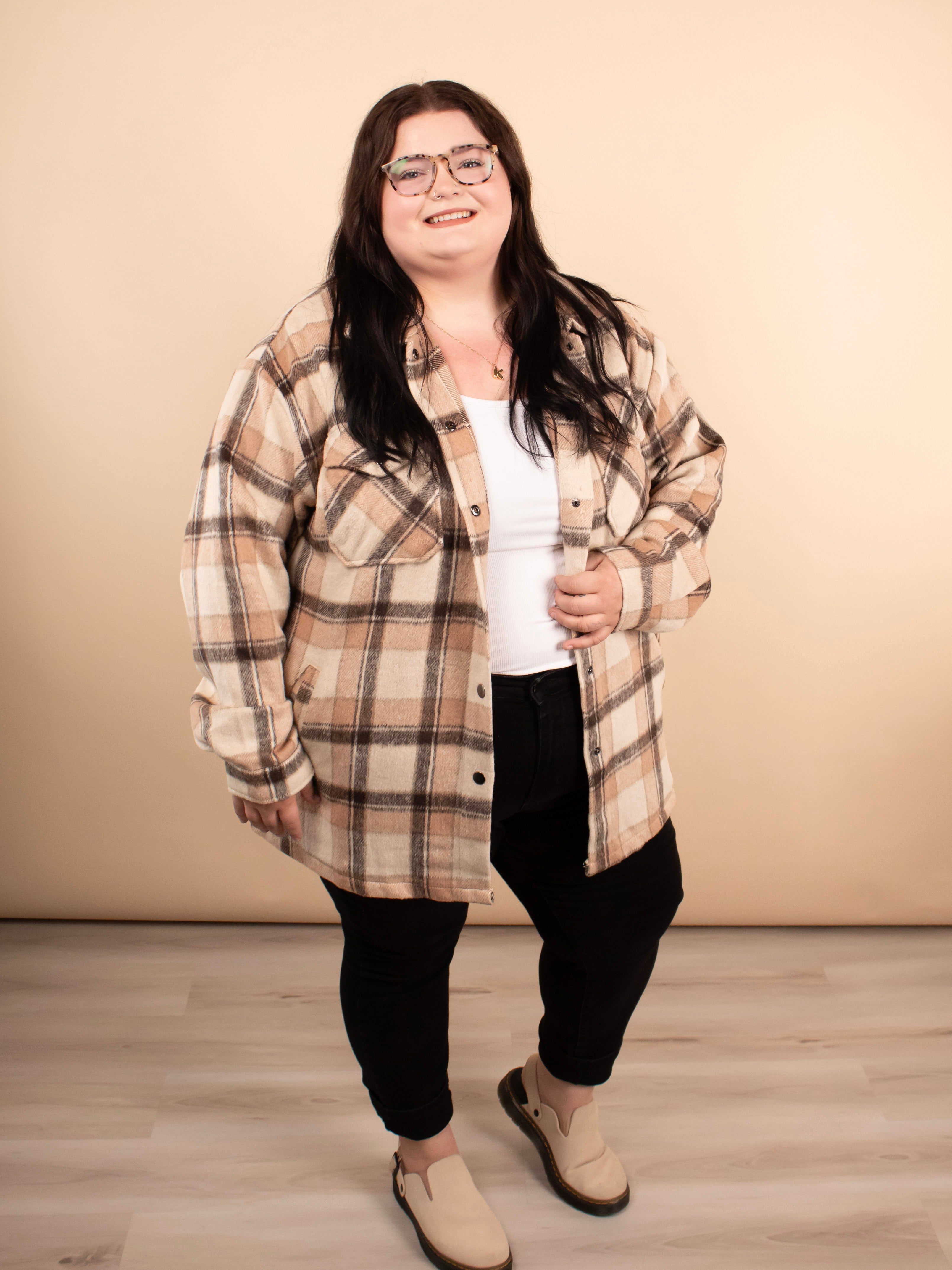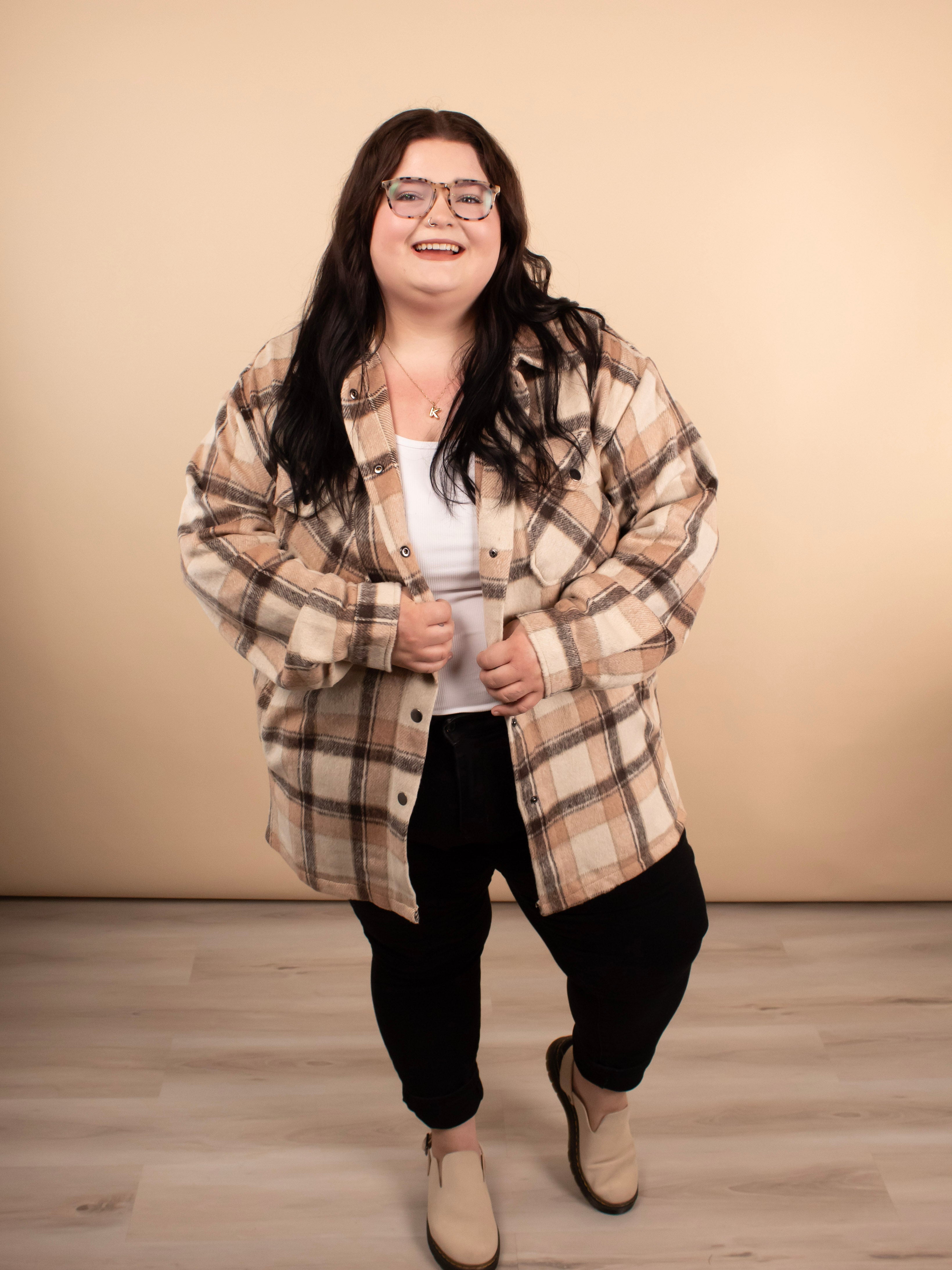 The classic shacket you know and love—back and better than ever! The Element Plaid Shacket in Neutrals features the most adorable color combo, soft yet sturdy fabric, and a relaxed fit that layers effortlessly. With full torso and hip coverage, pockets, and timeless plaid, this piece is a true season staple.