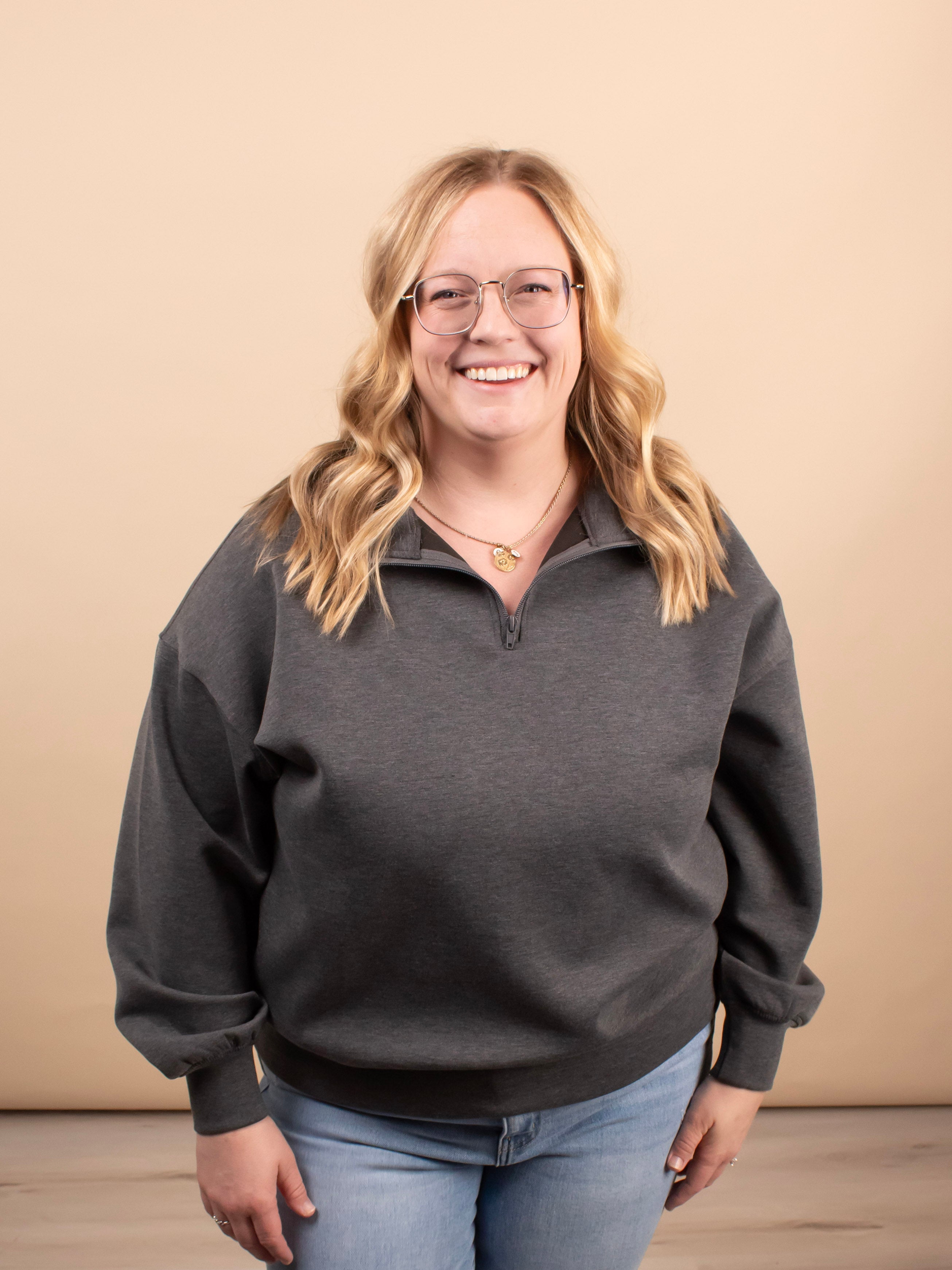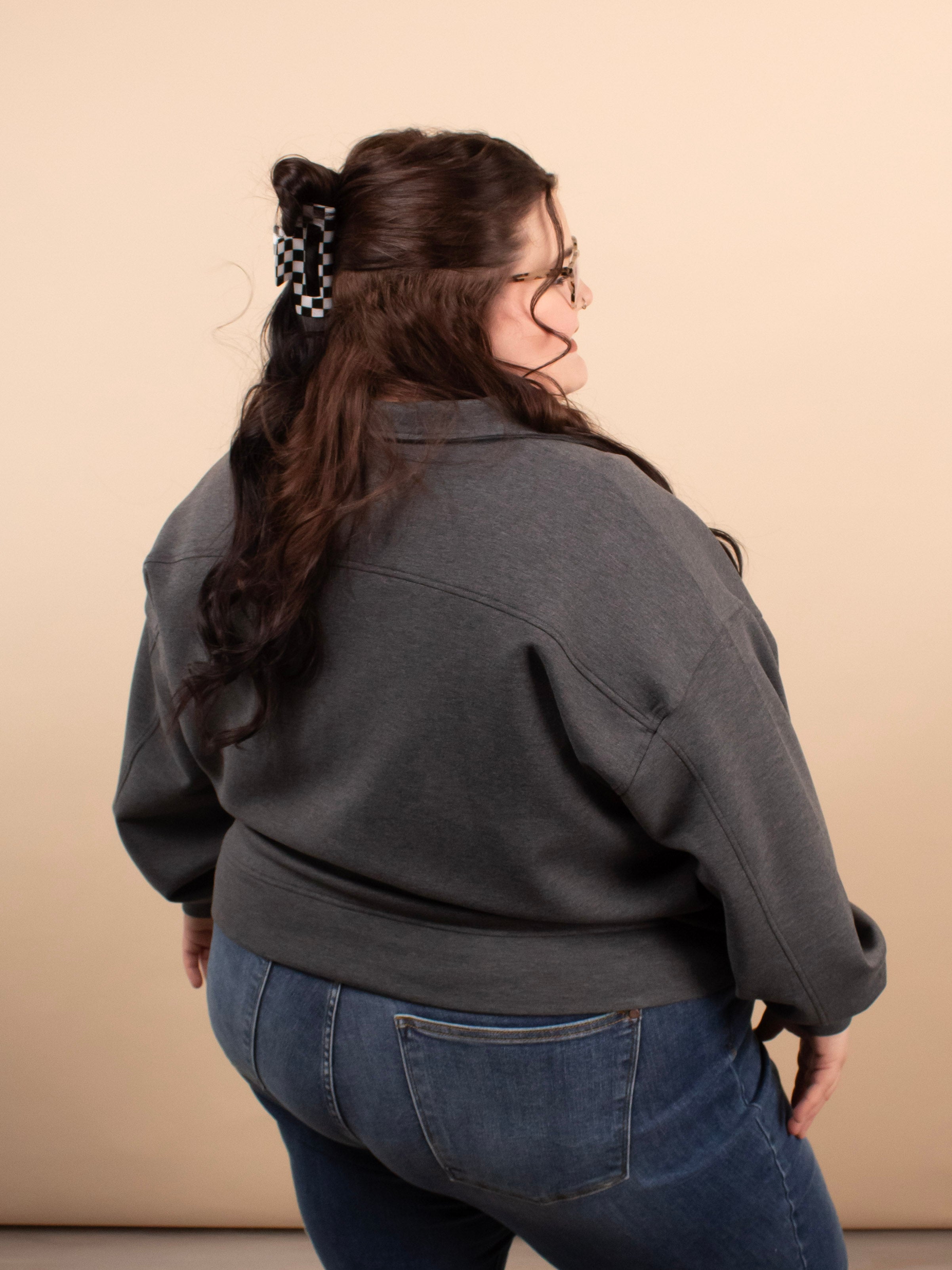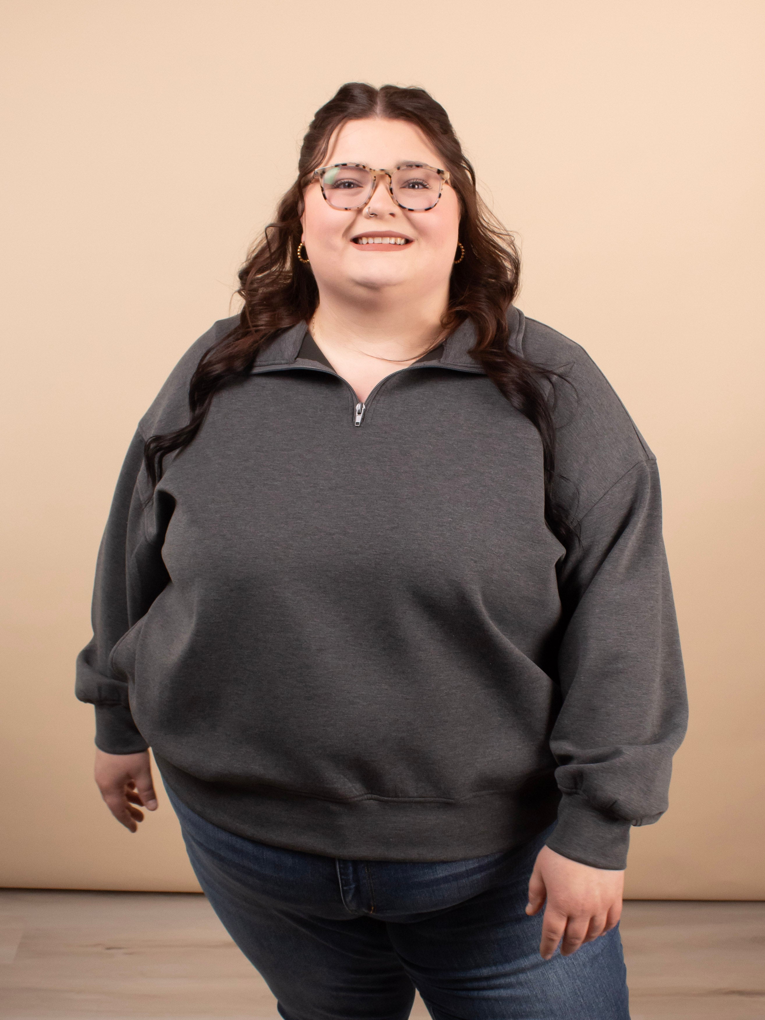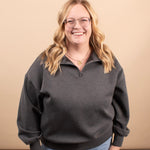 The Everyday Scuba Half Zip in Charcoal blends comfort and versatility in one easy layer. Crafted from a soft, lightweight scuba fabric, this pullover features a relaxed, oversized fit that’s perfect for transitional weather and beyond. The charcoal gray color keeps it neutral and easy to style, making it a grab-and-go favorite for busy days.