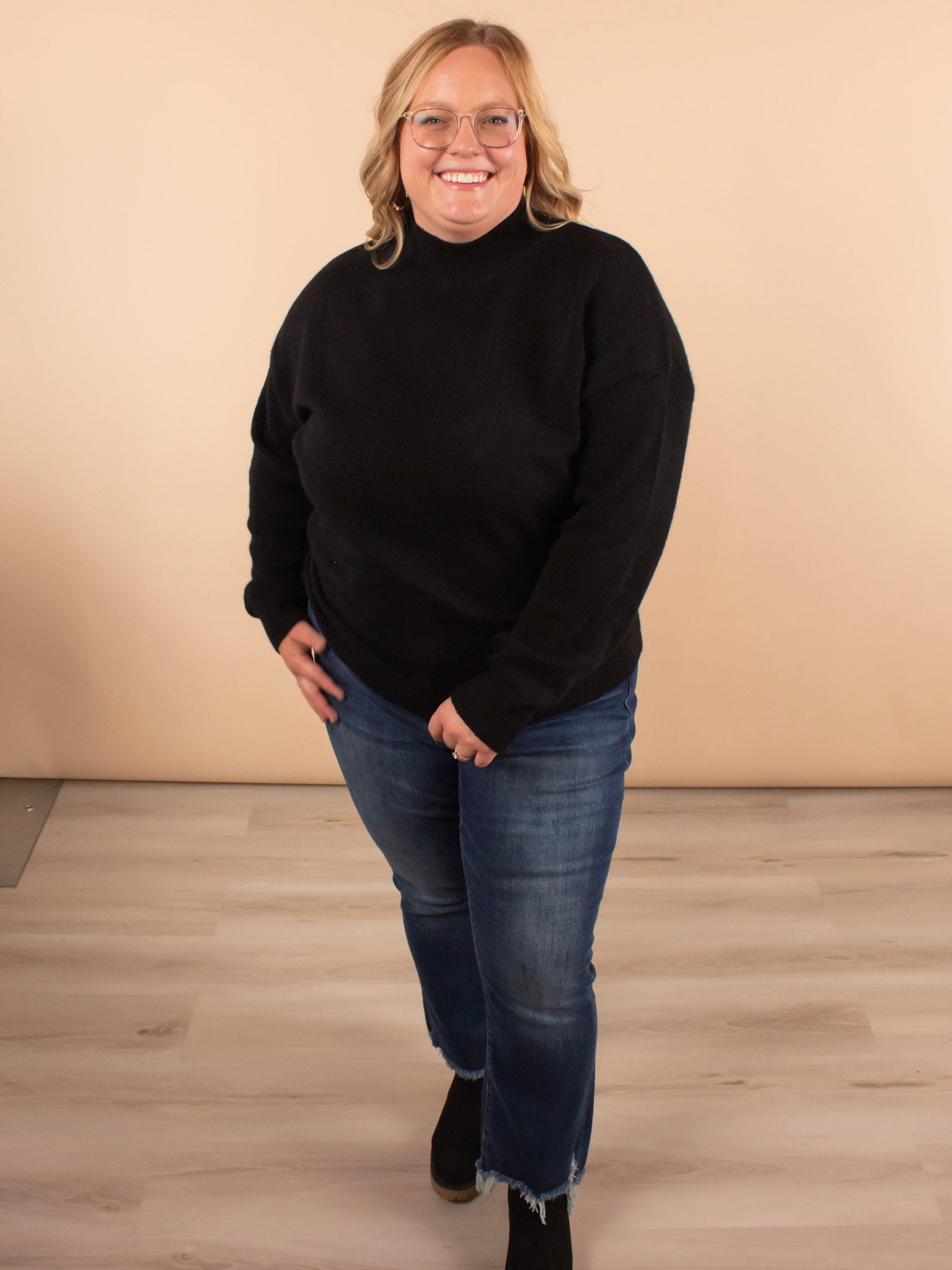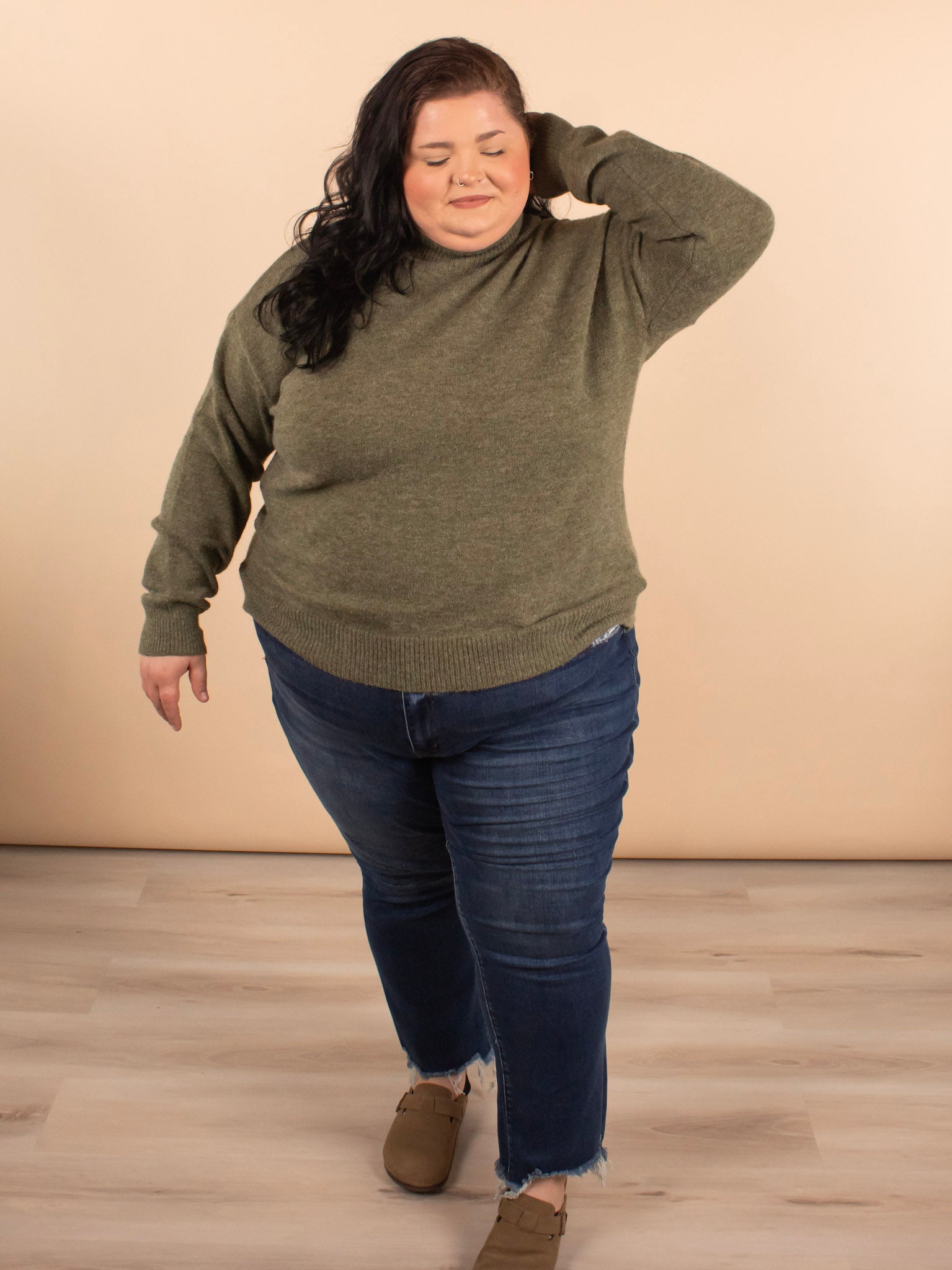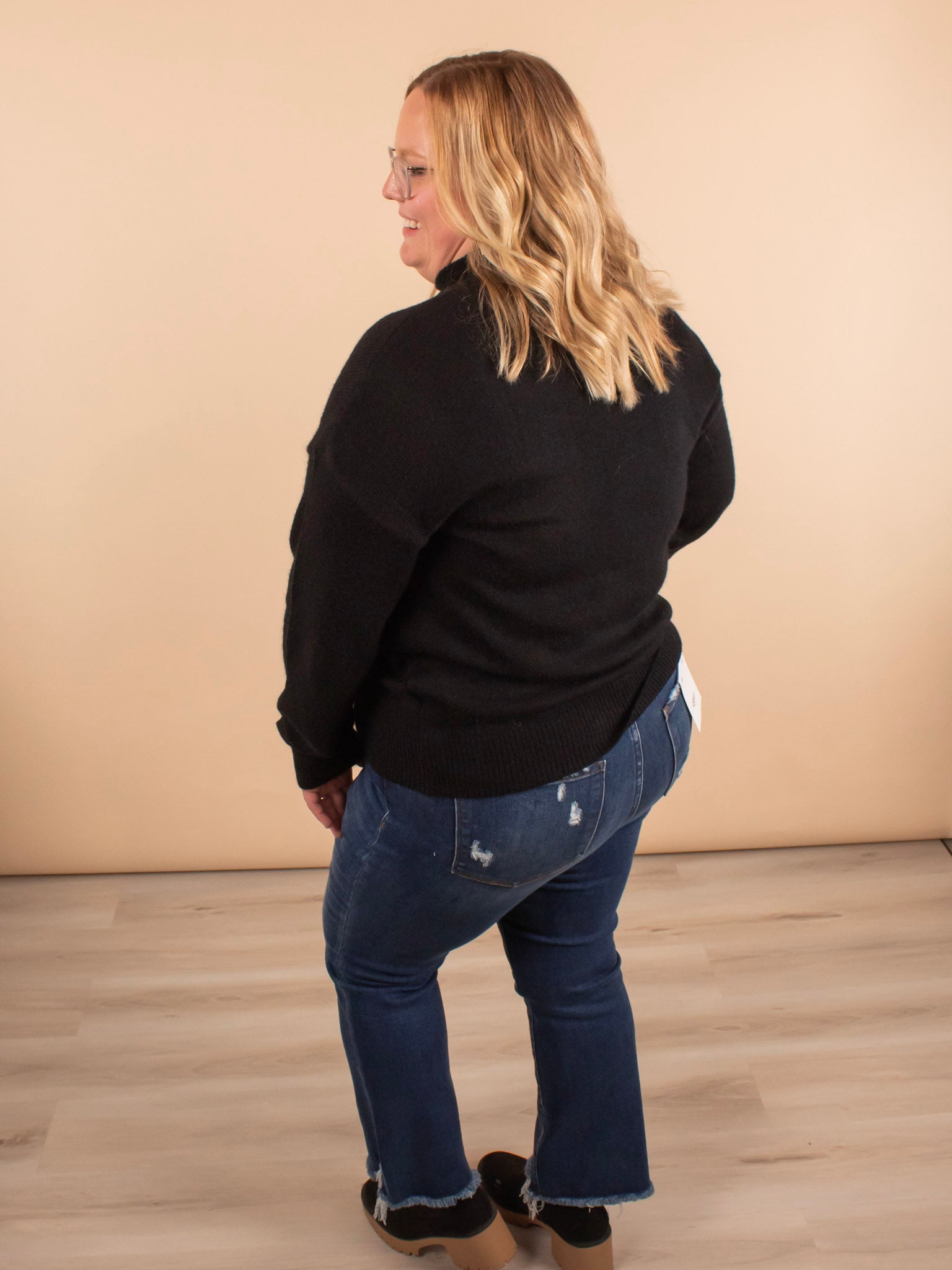 These jeans take the cake! The frayed hem detail adds texture to the classic jean. The flare is the perfect size and is effortlessly flattering. Complete with the prettiest classic dark wash. Pair these with countless looks ranging from sneakers and a shacket to a cute top, cardigan, and booties. Plus, you have to feel how soft these are!