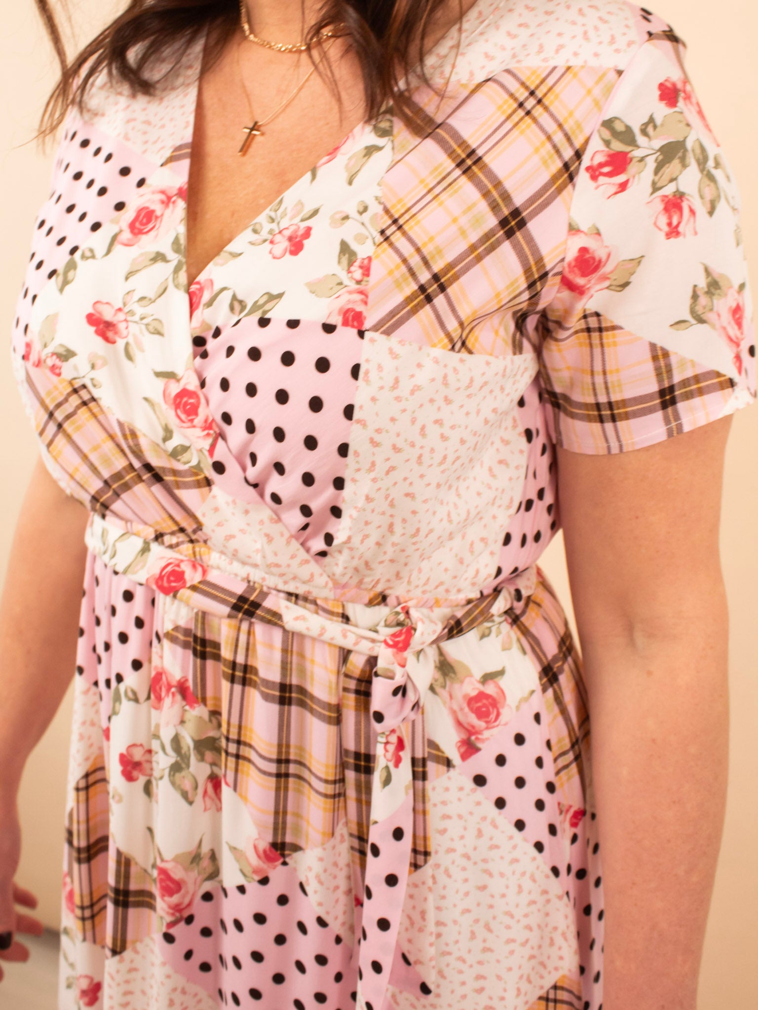 Step into style with the Vivian Patterned Dress. This adorable, feminine dress features a multi-pattern design that is perfect for weddings, showers, and other events. The double lined non-sheer fabric offers comfortable coverage, while the elastic stretchy waistband and tie belt detail ensure a flattering fit. Layer with a tank or top for even more versatility.