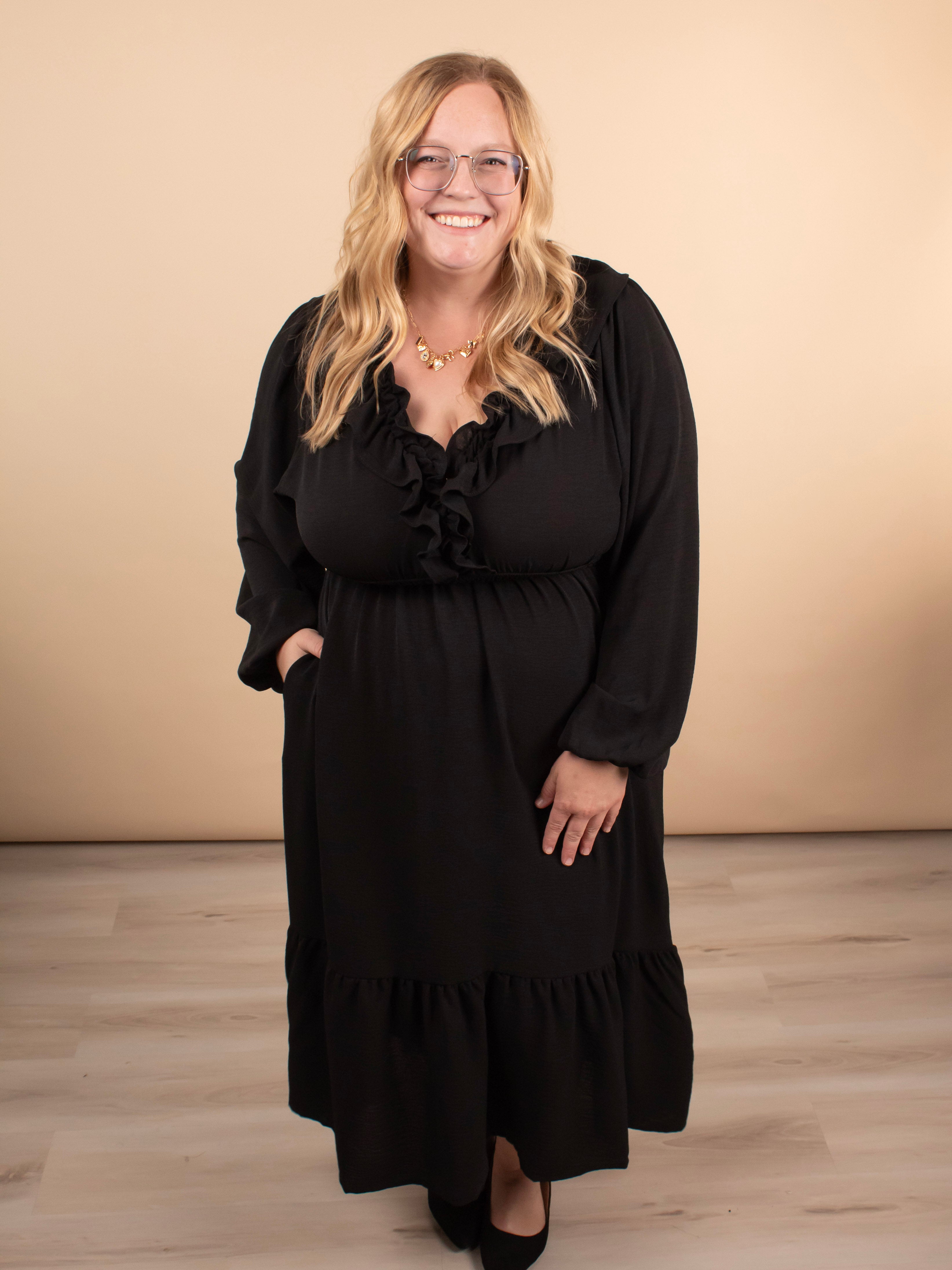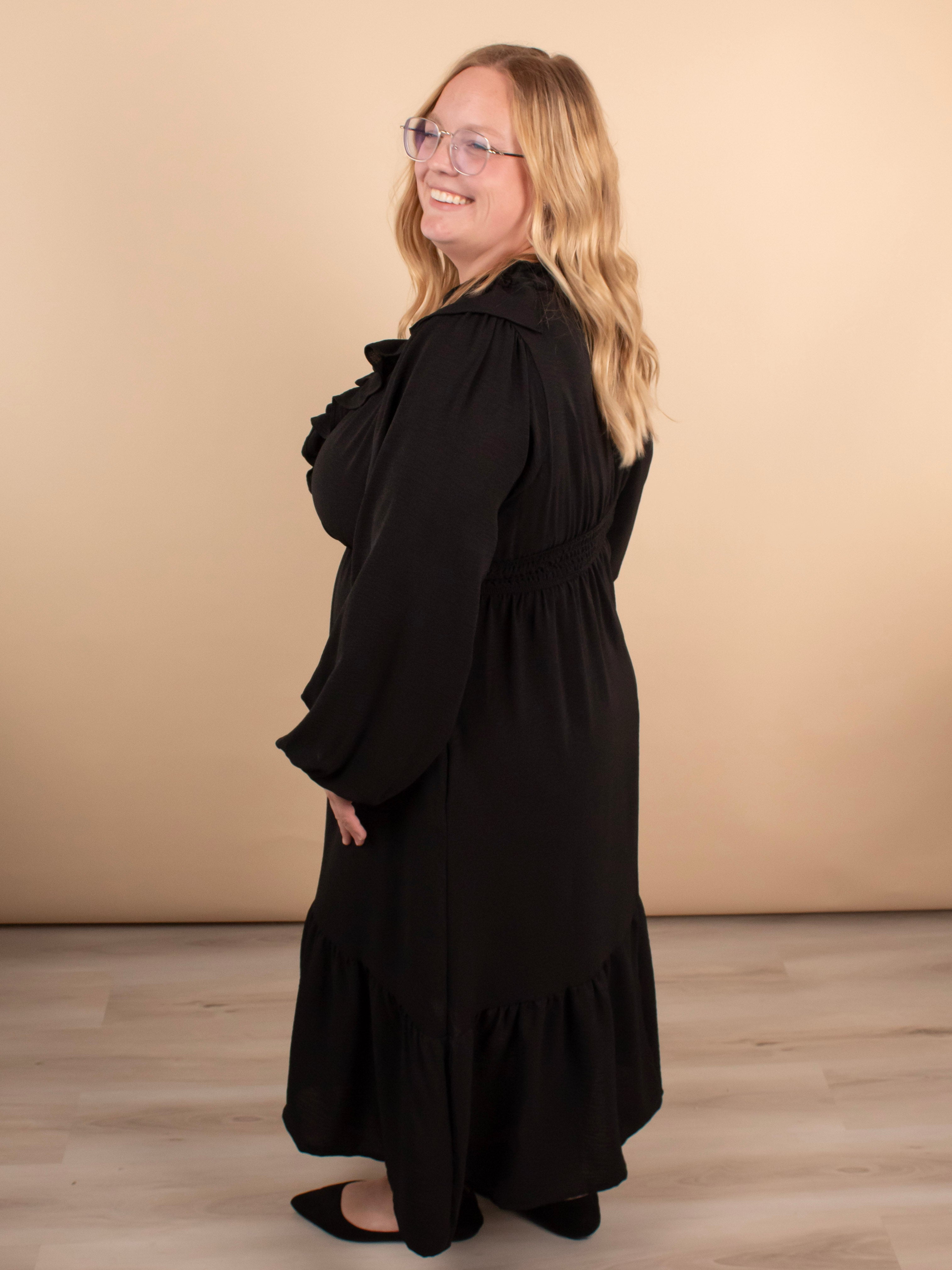 Warm Welcome V-Neck Dress in Black