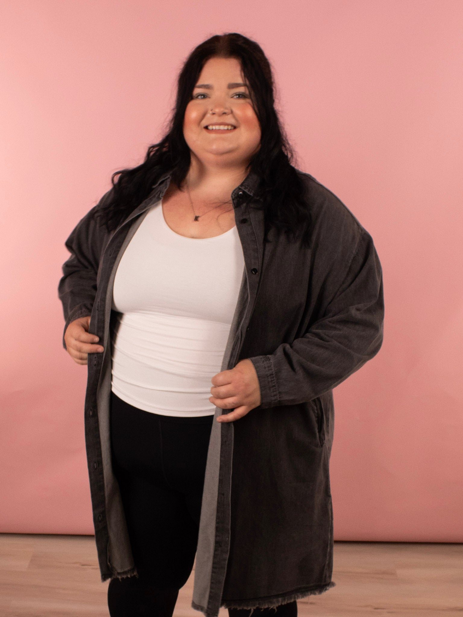 The Basic High Neck Tank is made with double-lined, soft, and stretchy fabric, this tank features a scoop neckline. Perfect for layering with a cardigan or flannel, and shorter waist length ensures a flattering fit. Elevate your style with this premium piece.